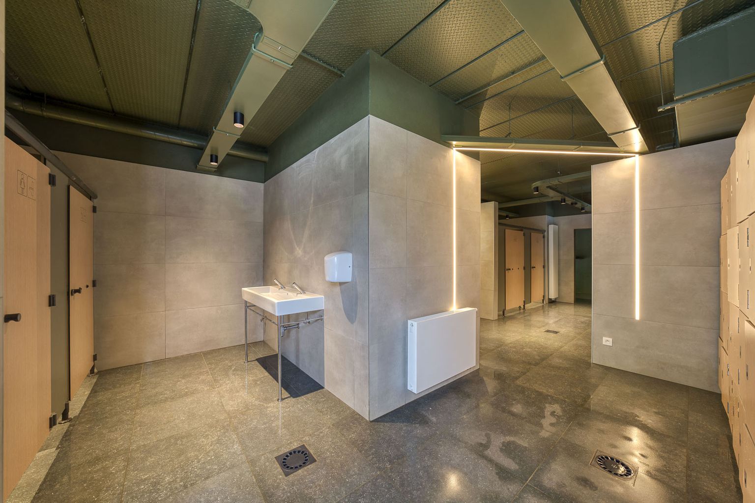 Woonruimte met bank, tafel en stoelen, televisie en verwarming