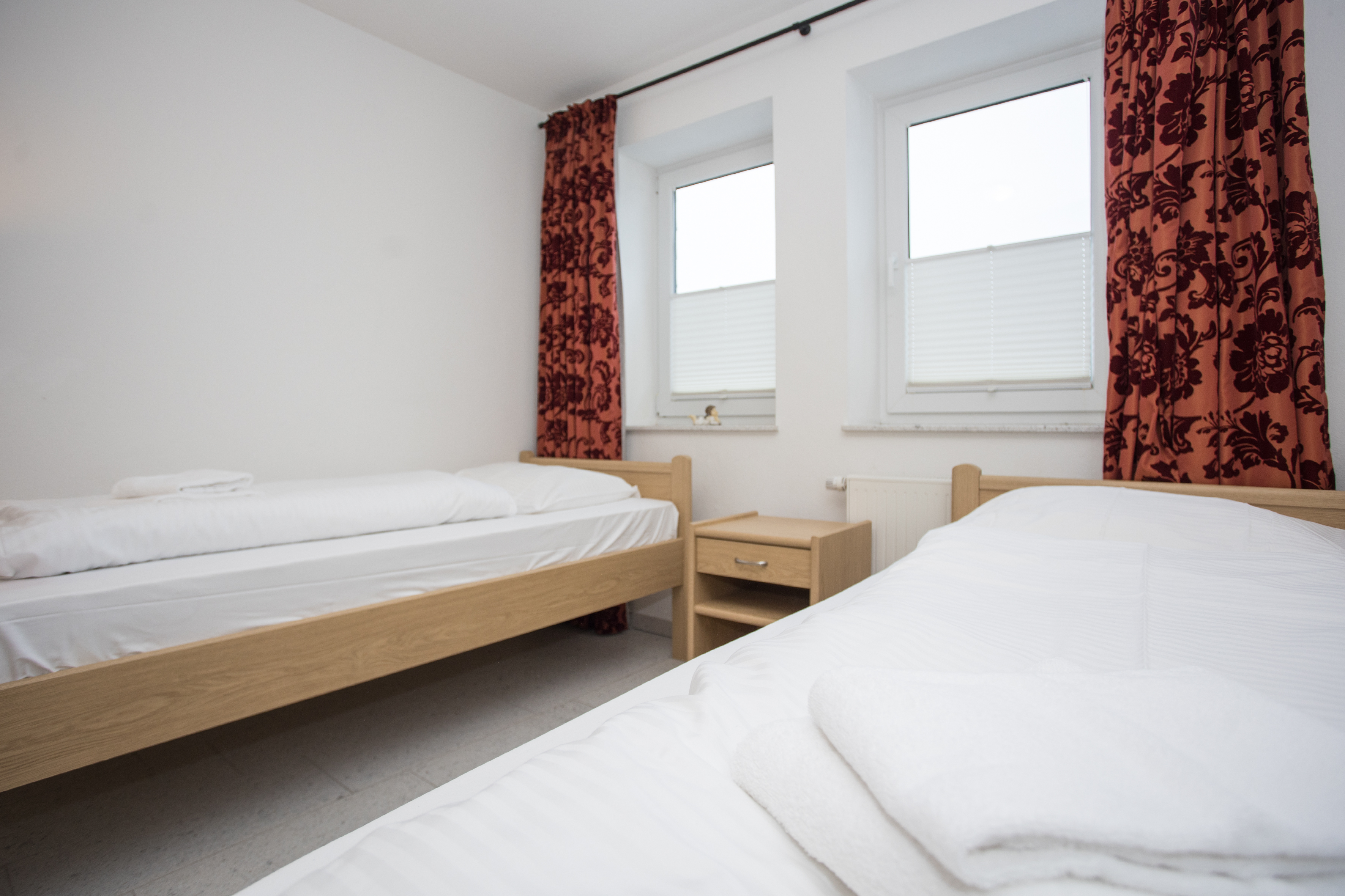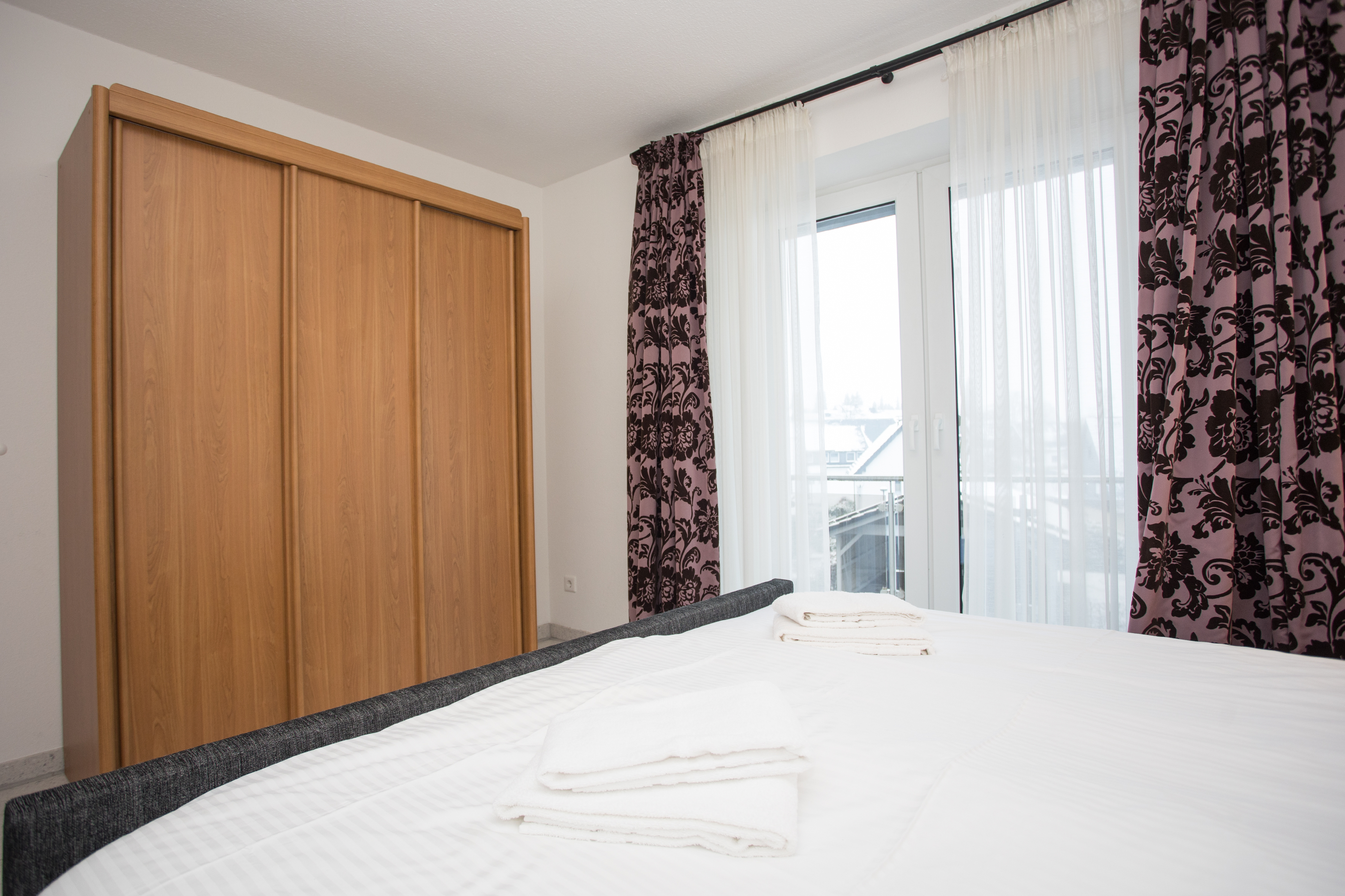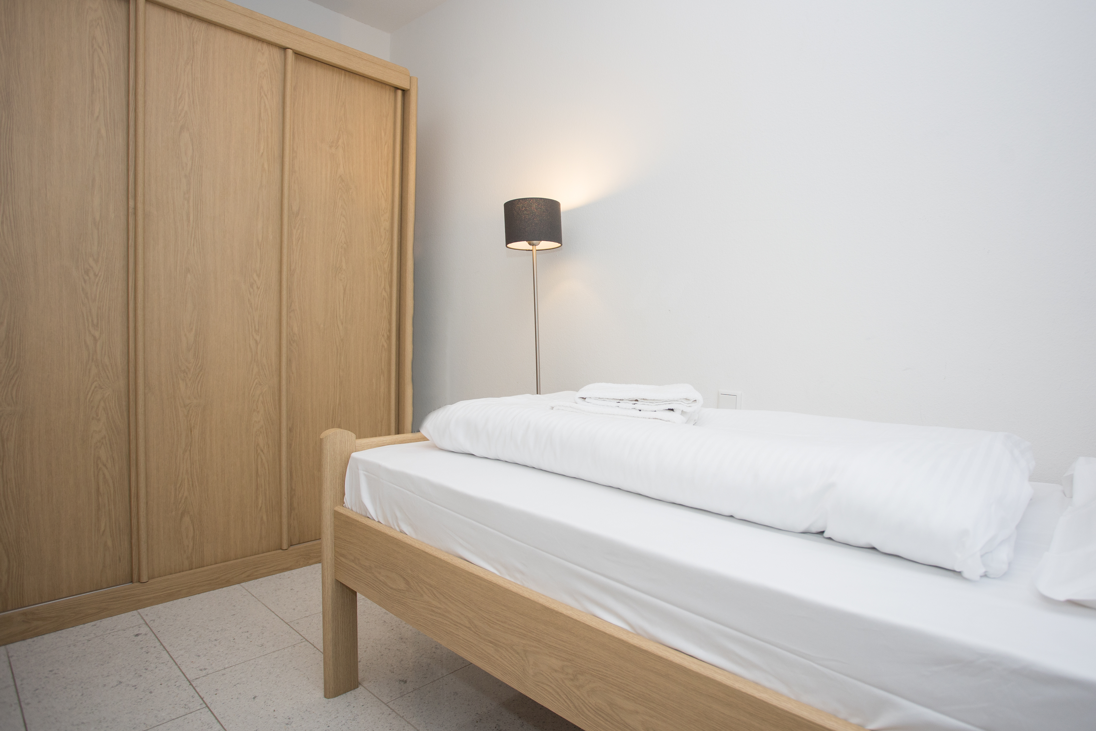 Het appartement beschikt over twee goed ingerichte slaapkamers: één met een comfortabel tweepersoonsbed en één met twee eenpersoonsbedden. Voor gezinnen zijn er ook twee kinderbedjes en een kinderstoel beschikbaar, zodat gasten met kleine kinderen verzekerd zijn van een comfortabel verblijf.