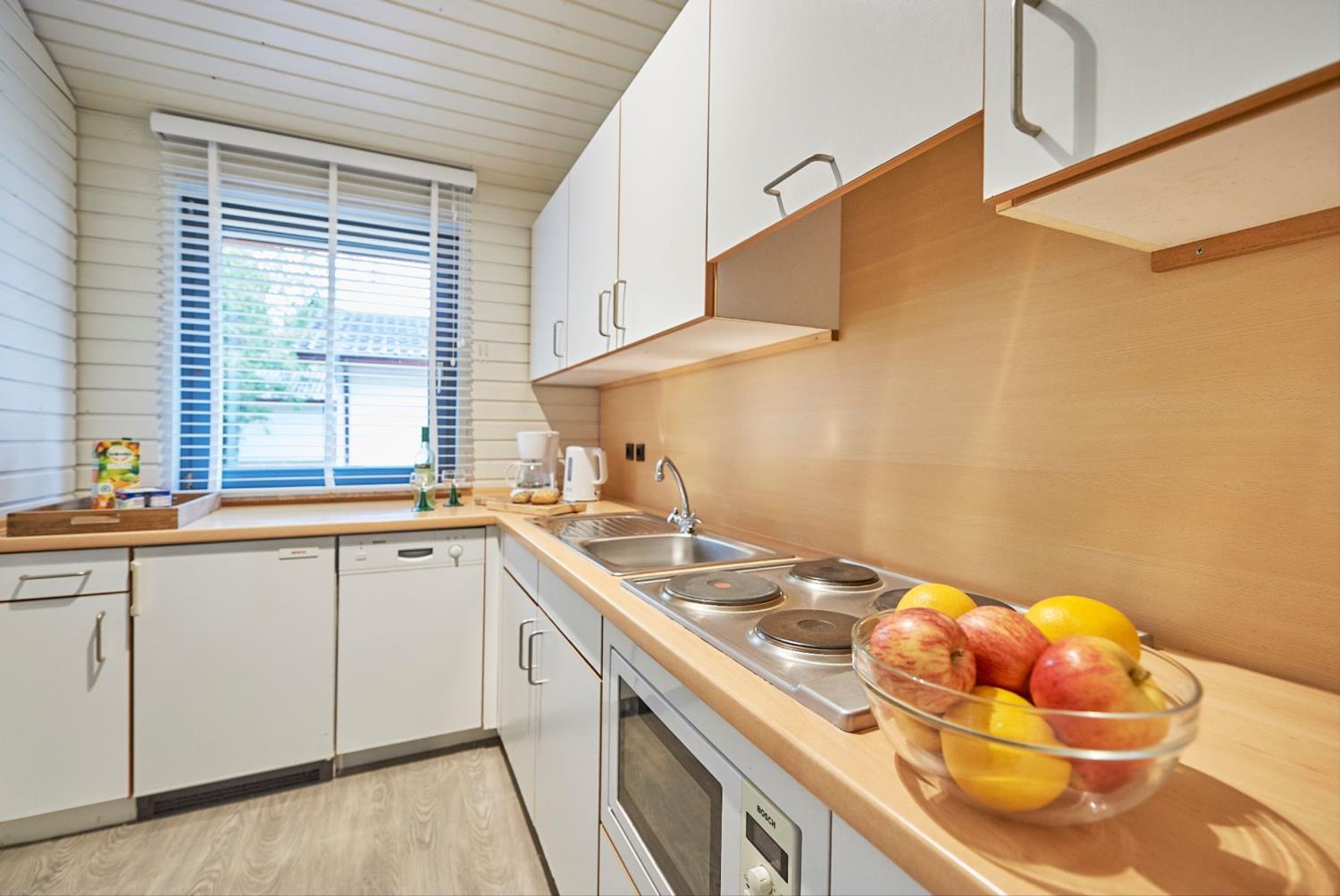 De 4plus vrijstaande bungalow is geschikt voor maximaal 4 volwassenen en 2 kinderen. Ze zijn vrijstaand, hebben een eigen tuin en parkeerplaats. De woonkamer is ingericht met een zit- en eethoek. De open keuken is compleet ingericht met combimagnetron, koelkast met vriesvak, waterkoker, koffiezetapparaat, 4-pits elektrisch fornuis en een vaatwasmachine.