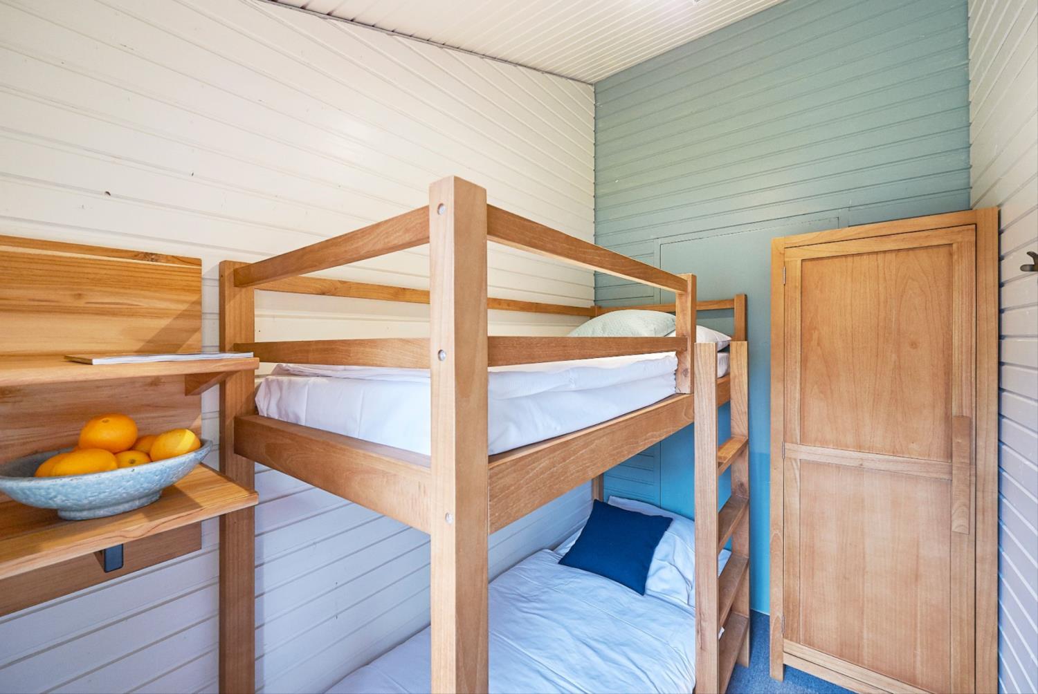 Er zijn 3 slaapkamers, twee met een tweepersoonsbed van 1,40m breed en één slaapkamer met een stapelbed. De bedden zijn voorzien van eenpersoons dekbedden en kussens.