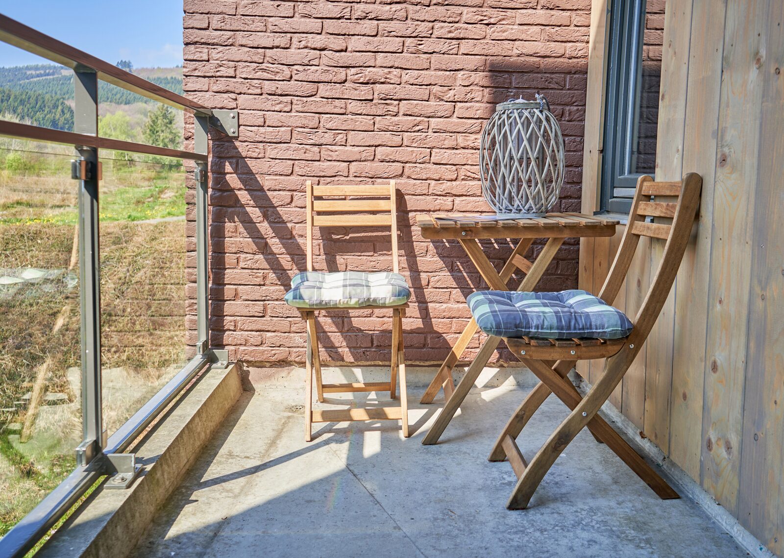 Elke studio beschikt over een gemeubileerd balkon of gelijkvloers terras.