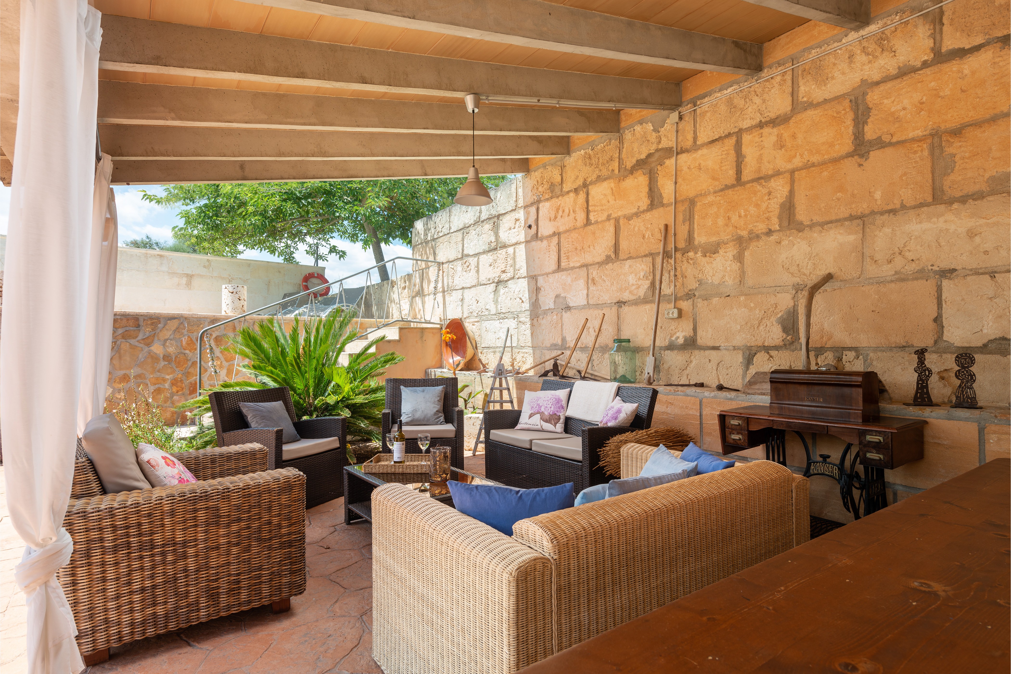 De buitenkant is prachtig dankzij de aangelegde ruimtes die kleur geven aan het huis. Het gechloreerde zwembad van 4 x 6 m (met een uniforme diepte van 1,6 m) is privé. Het terras van 25 m2 is ingericht met een houten tafel en stoelen voor 8 personen en heeft een ontspanningsruimte met rotanmeubels. Onder de veranda, die van alle gemakken is voorzien, kunt u heerlijke avonden doorbrengen met koken op de barbecue.