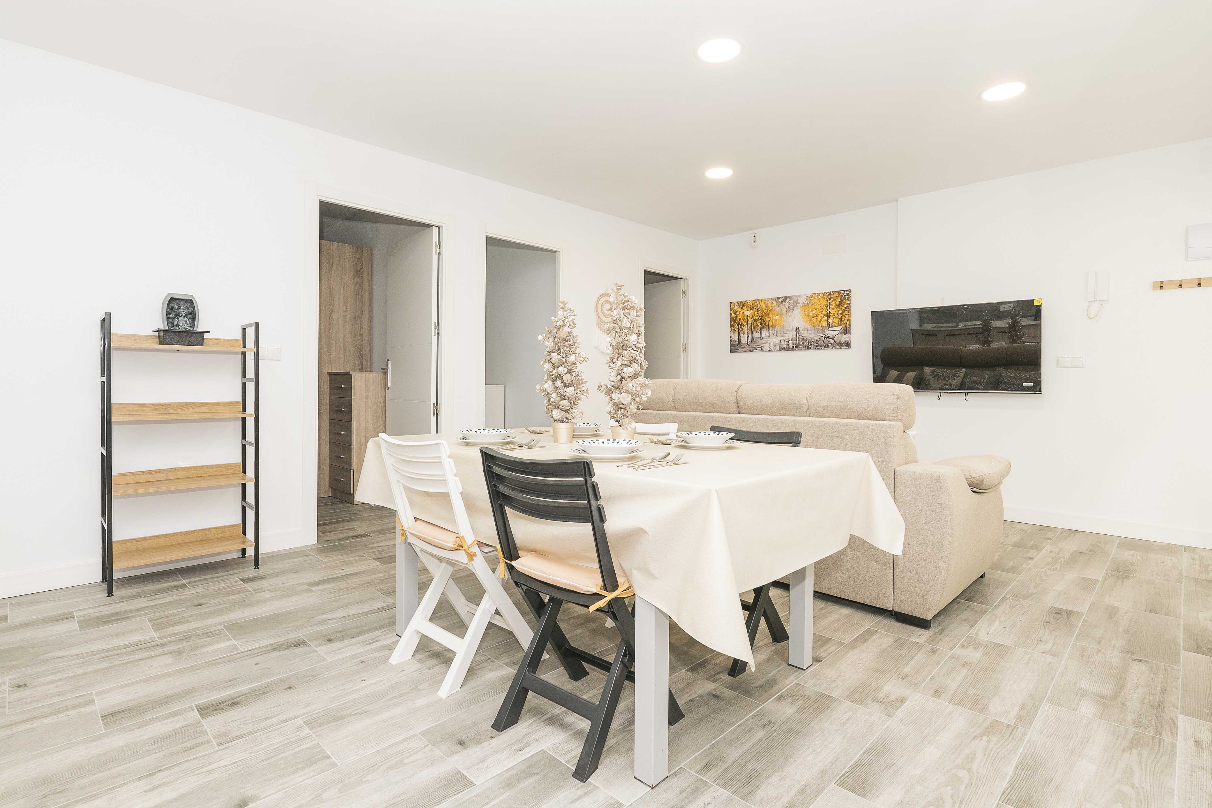 Het appartement beschikt over een doordacht open ontwerp waarin de keuken, woonkamer en eetruimte worden gecombineerd voor een comfortabel en functioneel verblijf.