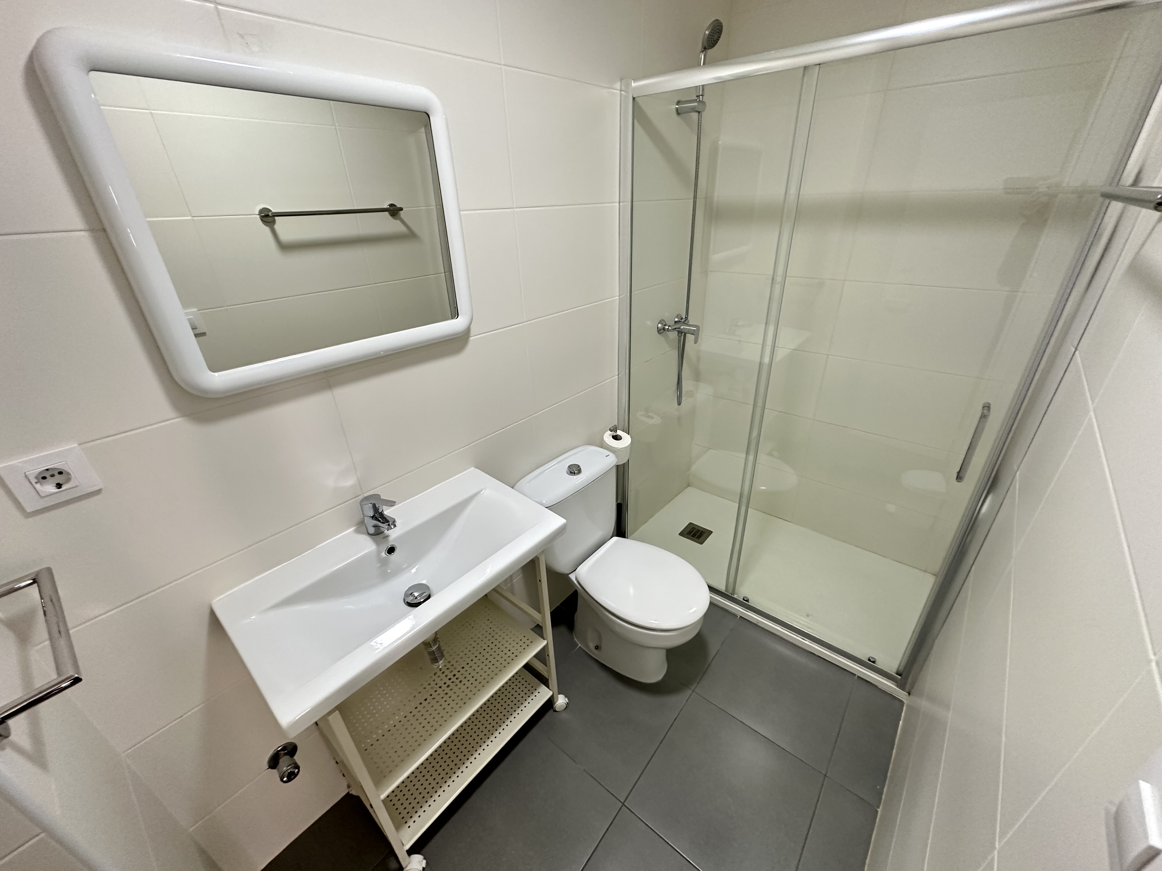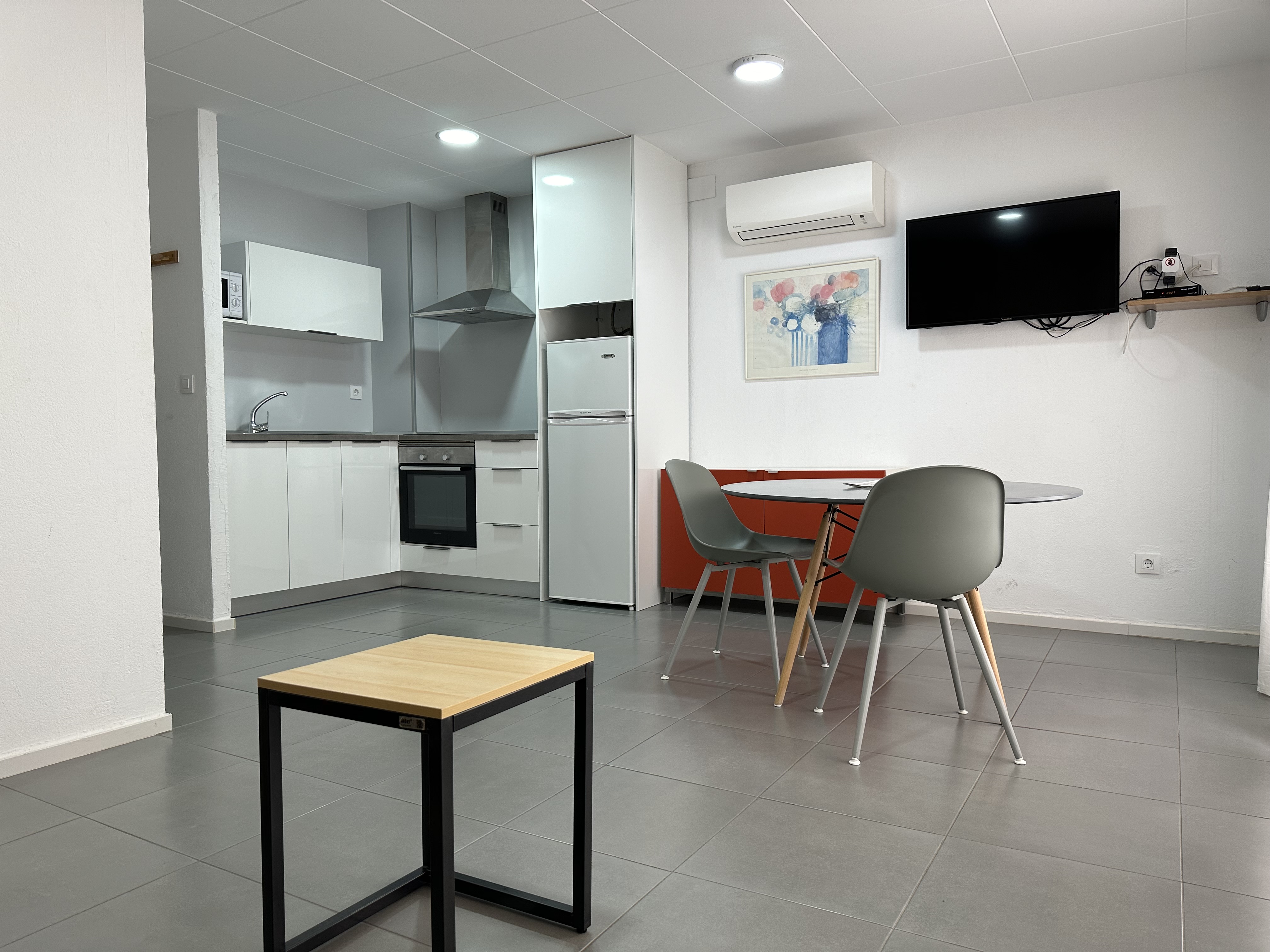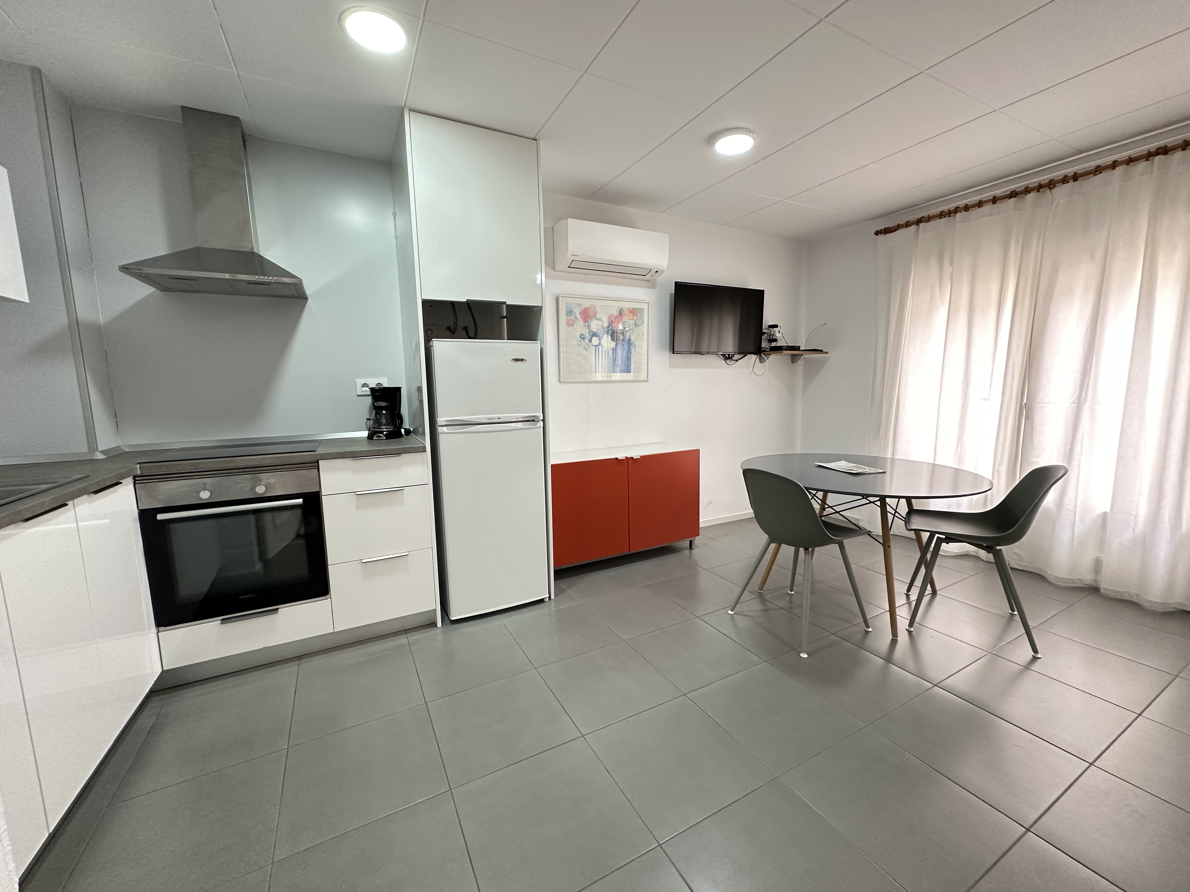 De open keuken is voorzien van een vitrokeramische kookplaat, koelkast, vriezer, koffiezetapparaat, magnetron, broodrooster, evenals servies, bestek en de benodigde keukengerei. Het appartement heeft ook een badkamer met een douche.