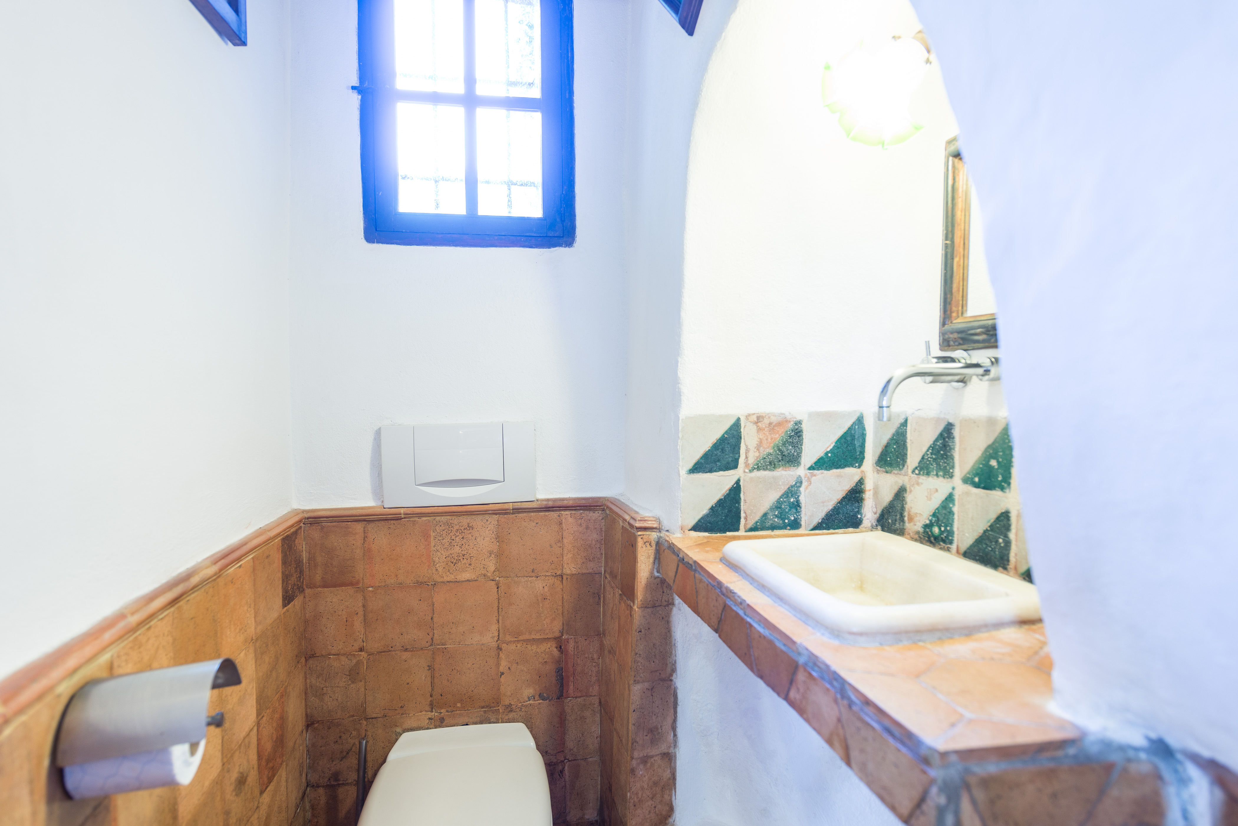 Dit huis met drie verdiepingen is gerenoveerd in een rustieke Mallorcaanse stijl. Op de begane grond vind je een fantastische woonkamer met open haard, perfect om satelliet-tv te kijken. De aparte eetkamer biedt plaats aan 12 dinergasten en de unieke keuken met een keramische kookplaat is van alle gemakken voorzien. Daarnaast is er een toilet en een aparte wasruimte met een wasmachine, strijkijzer en strijkplank.
