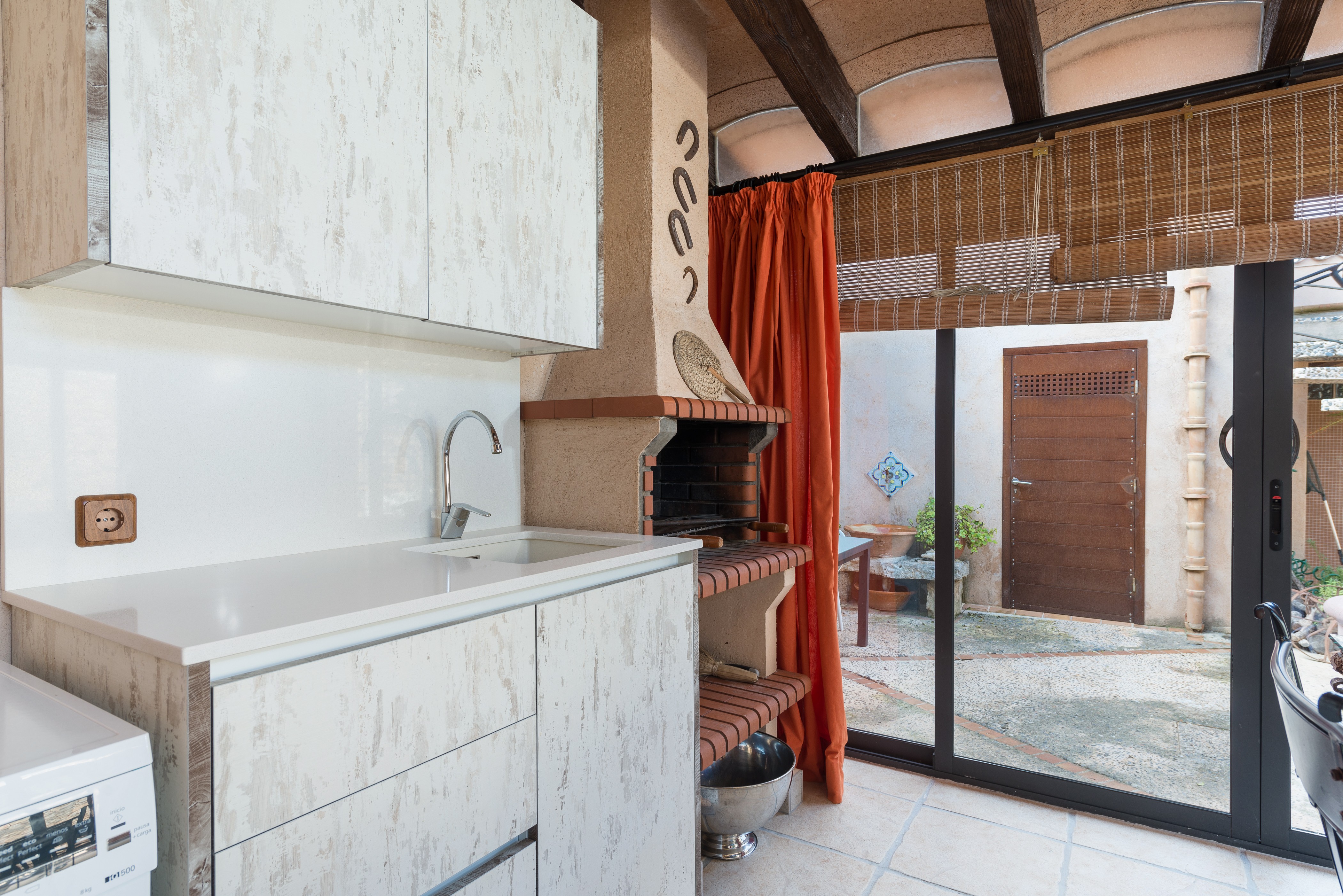 De echte ster van dit prachtige herenhuis is het privé-chloorzwembad van 7 x 3 meter en een waterdiepte van 1,2 tot 2 meter. Het nodigt uit om af te koelen na het zonnebaden of op het bovenste terras. Er is een ontspanningsruimte en in totaal 6 ligstoelen. Dit terras is perfect om buiten heerlijke barbecues te bereiden. Als u wilt, kunt u deze ook in de buitenkeuken bereiden en daar of in de gemeubileerde achtertuin van genieten. Er is ook een buitenbadkamer met een douche bij het zwembad.