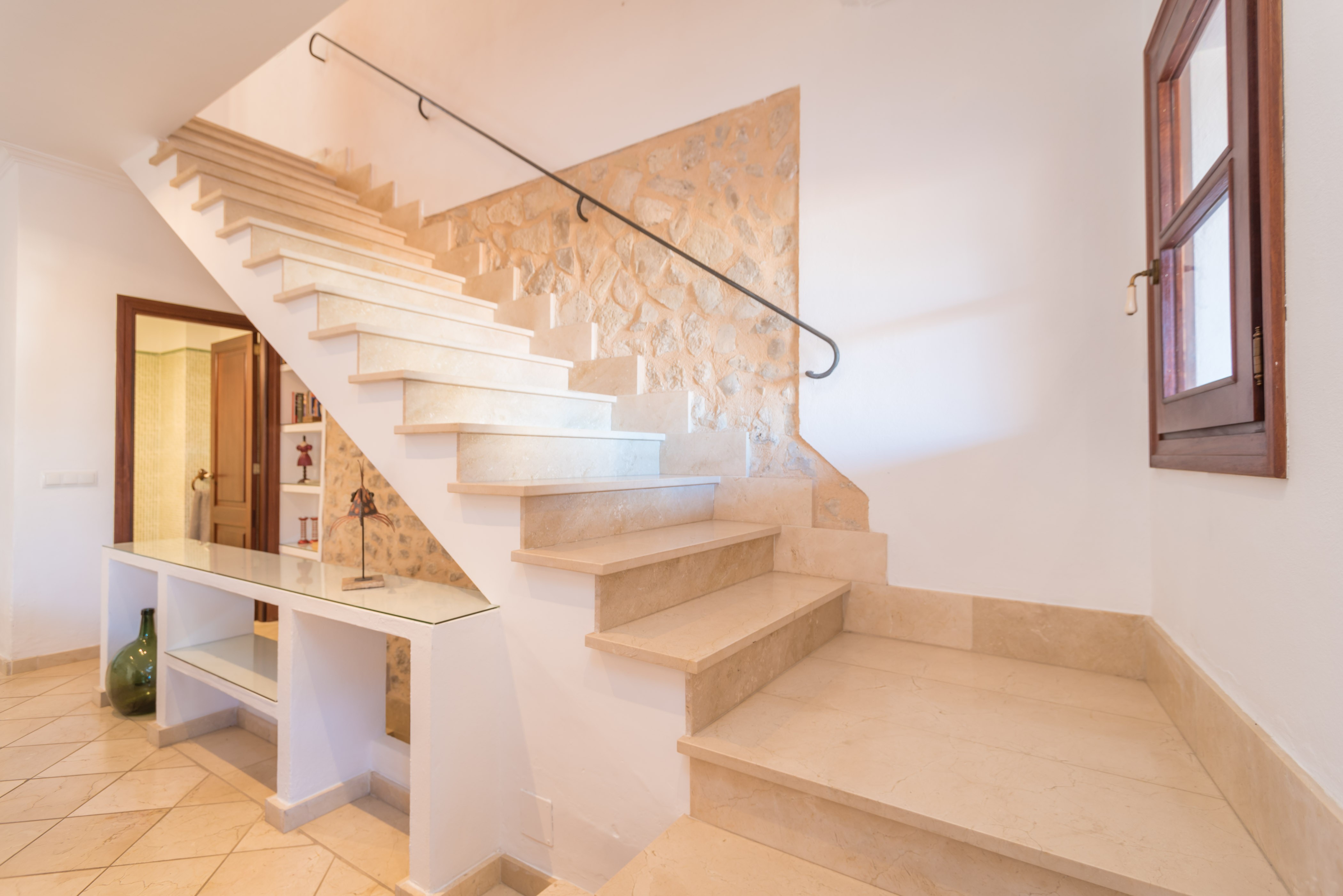 Dit charmante huis combineert de traditionele Mallorcaanse uitstraling van het gebouw met alle moderne gemakken, wat zorgt voor een warm en gastvrij verblijf. Vanaf het terras komt u in de ruime woon-eetkamer, uitgerust met een grote, comfortabele bank, satelliet-tv en airconditioning voor de warmste dagen. De aparte keuken is volledig uitgerust met een keramische kookplaat, oven, magnetron en een kleine tafel met vier stoelen, ideaal om te koken of gezellig samen te eten. De keuken bevat ook een oude waterput, een traditioneel architectonisch element dat nu als decoratie dient.