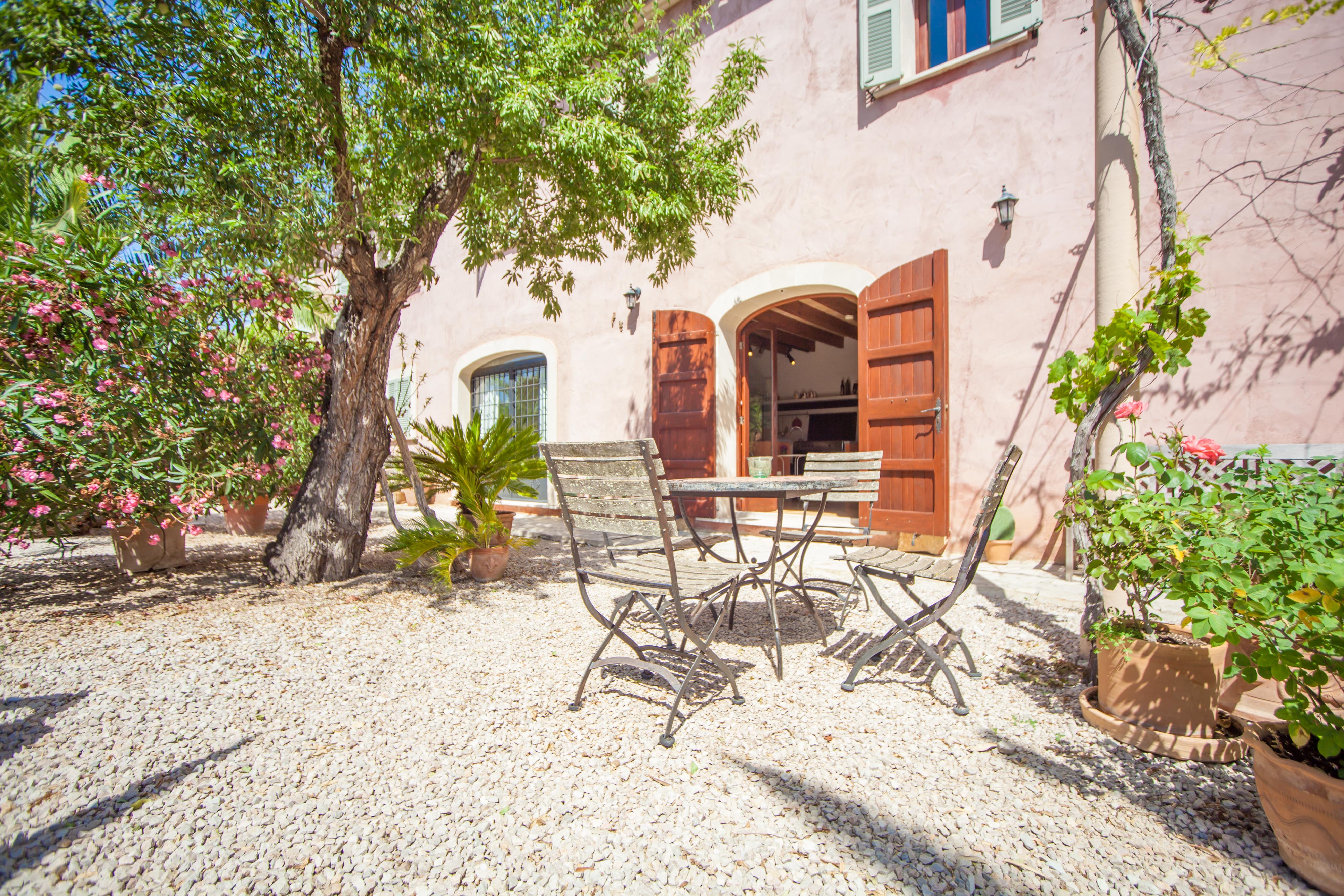 Het gedeelde chloorzwembad ligt op slechts 20 meter van het huis en meet 12 x 4 meter met een diepte van 1,6 meter. Rondom het zwembad kun je genieten van de zomerzon op een van de ligbedden of ontspannen onder een parasol met een goed boek. De goed onderhouden tuinen leiden naar het terras van het huis, waar een eettafel voor 4 personen onder een prieel staat, perfect om buiten te genieten van een maaltijd of een heerlijke barbecue terwijl je geniet van het prachtige uitzicht op de tuin. Aan de andere kant van het huis vind je nog een tuin die ideaal is voor het ontbijt of een drankje bij zonsondergang. De finca is omheind, met naburige huizen in de buurt, waardoor er gedeeltelijke privacy is.