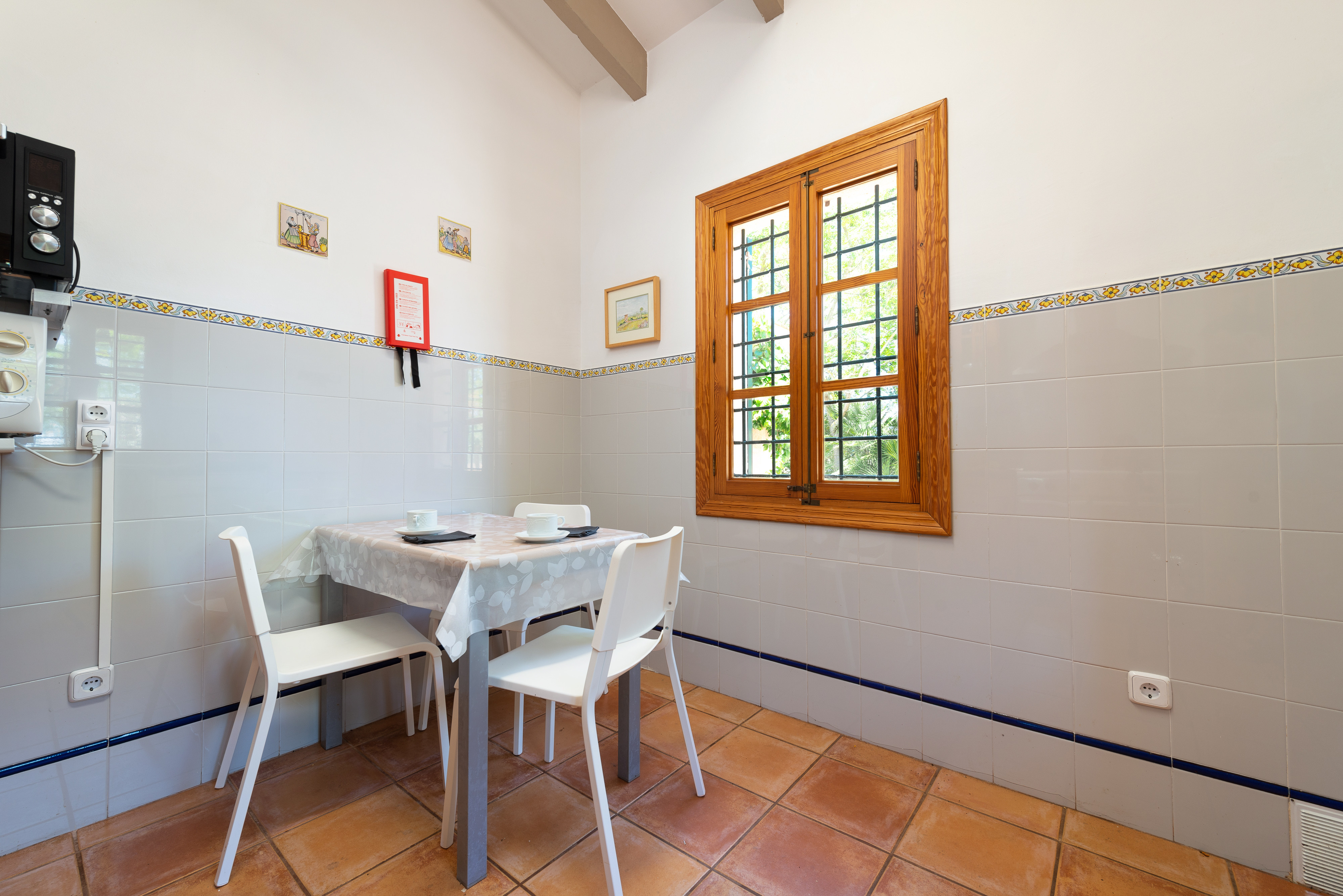 Binnen heeft het huis met 2 verdiepingen een traditionele en gezellige stijl. De grote eetkamer is uitgerust met een satelliet-tv, airconditioning met warmtepomp, comfortabele banken en fauteuils en een grote tafel voor 6 personen. De aparte keuken is voorzien van een gasfornuis en oven. De begane grond wordt gecompleteerd met een badkamer met ligbad en elektrische radiator waar zich ook de wasmachine bevindt. In een andere aparte ruimte vindt u het strijkijzer, de strijkplank en ruimte voor de koffers. De 3 slaapkamers met AC met warmtepomp bevinden zich op de bovenste verdieping. Eén heeft een tweepersoonsbed en een eigen badkamer met ligbad en elektrische radiator, en de andere twee hebben twee eenpersoonsbedden. We kunnen u ook voorzien van twee kinderbedjes en twee kinderstoelen als u met uw baby's reist. Ten slotte vindt u bij de accommodatie een babycommode, een bedrail voor kinderen, 2 draagbare ventilatoren, 3 elektrische kachels, parasols, een omheind speelgedeelte en opblaasboten voor het zwembad.