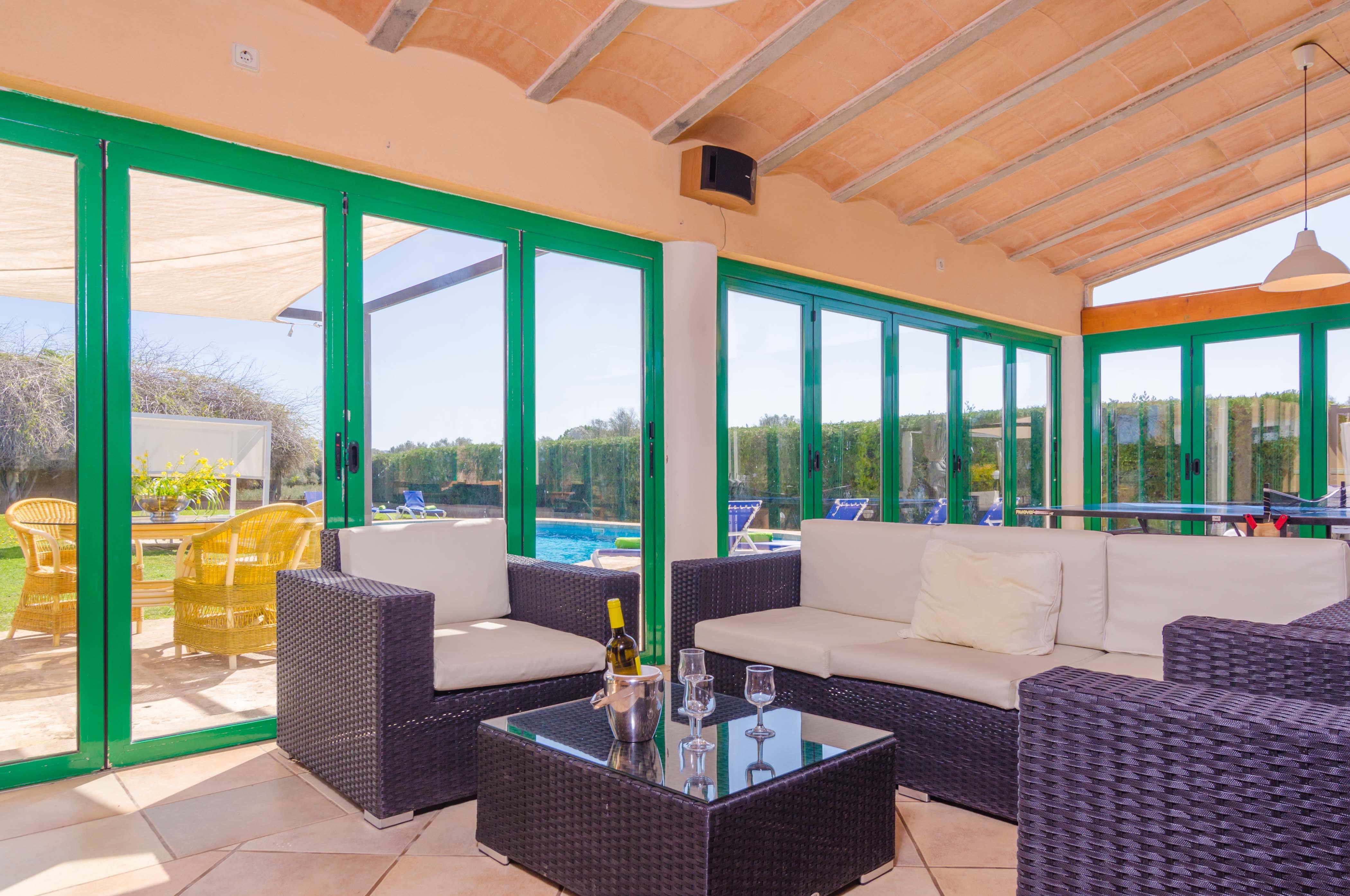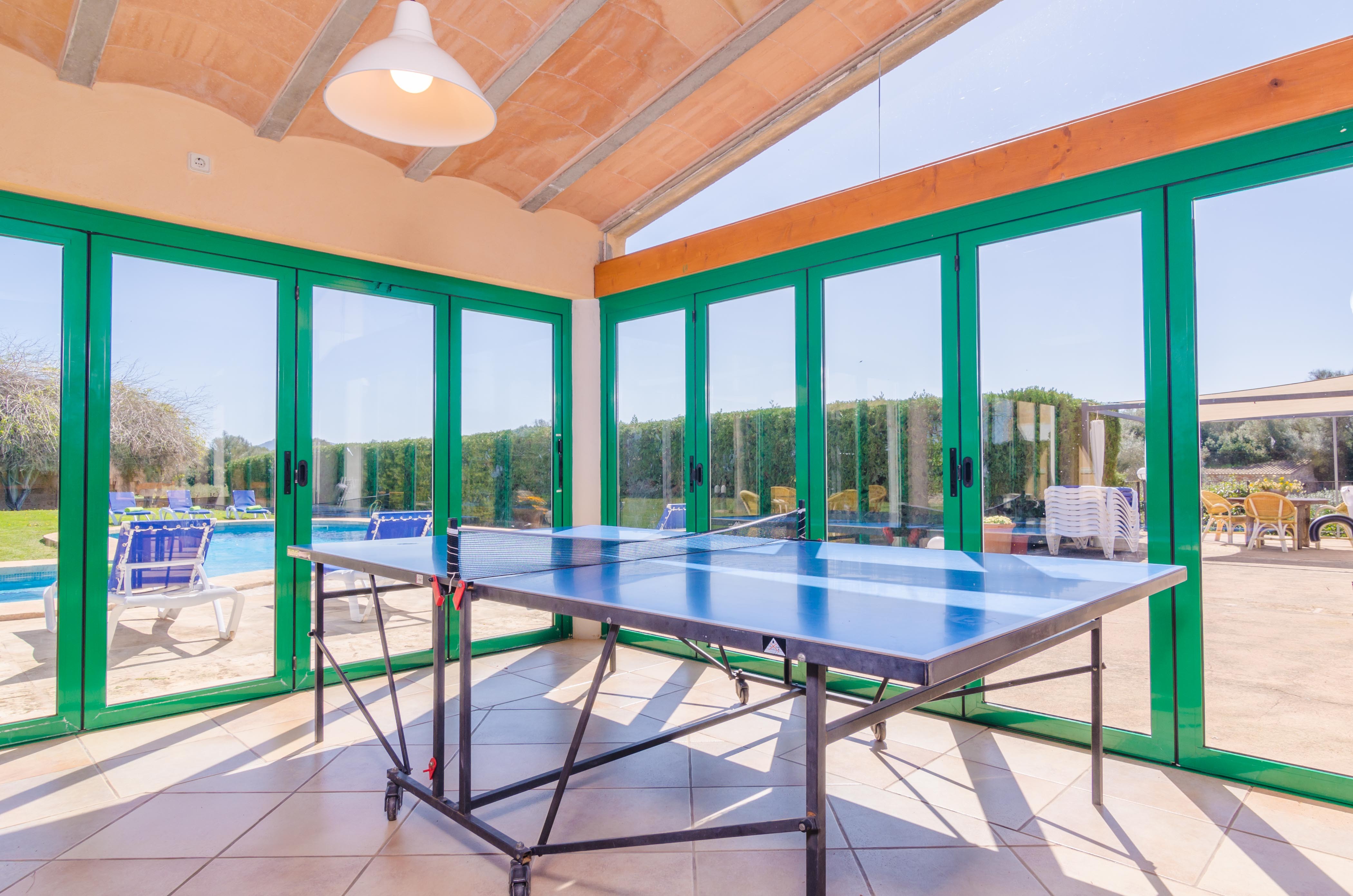 Deze villa biedt volledige privacy, waardoor het een ideaal toevluchtsoord is. Stel je voor dat je omringd bent door rust, afgesloten van de wereld en geniet van de uitzonderlijke voorzieningen van deze finca. Het prachtige zwembad, van 12 x 6 meter met een diepte van 1,10 tot 1,80 meter, ligt te midden van een zorgvuldig onderhouden groen gazon en tuin. Rondom het pand ontdek je elegante buitenruimtes die perfect zijn om te genieten van de mediterrane zon. Een hoogtepunt is de glazen barbecueplek, uitgerust met een houtoven om pizza’s of gegrilde groenten te koken, waardoor het de ideale plek is voor onvergetelijke maaltijden. De ruimte beschikt ook over een gezellige bank, satelliet-tv, een gasfornuis en een badkamer met douche, wat bijdraagt aan je comfort. Voor een vriendelijke competitie is er ook een pingpongtafel beschikbaar.