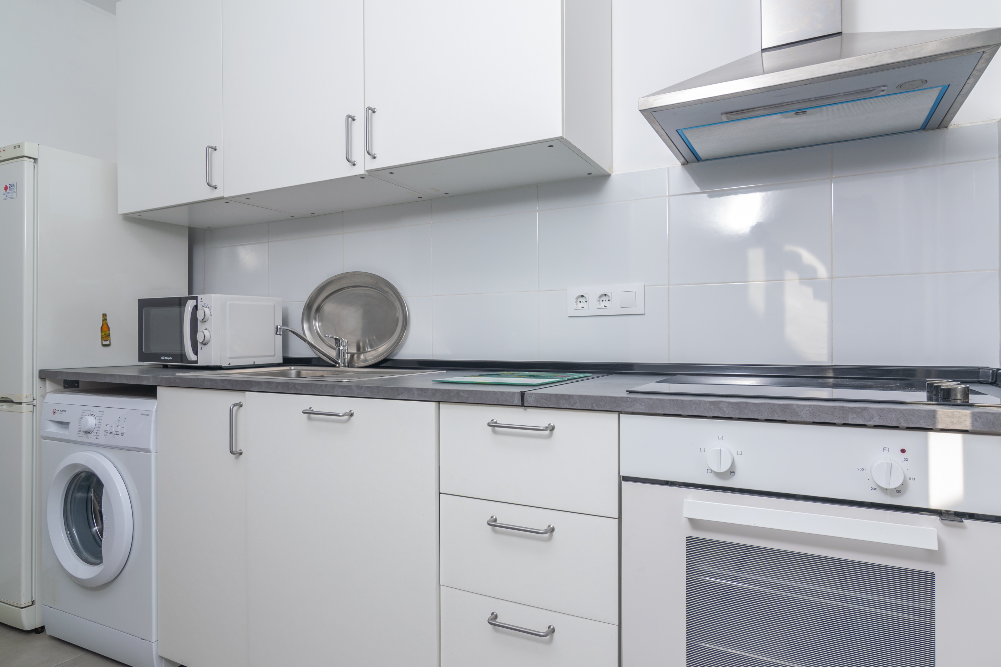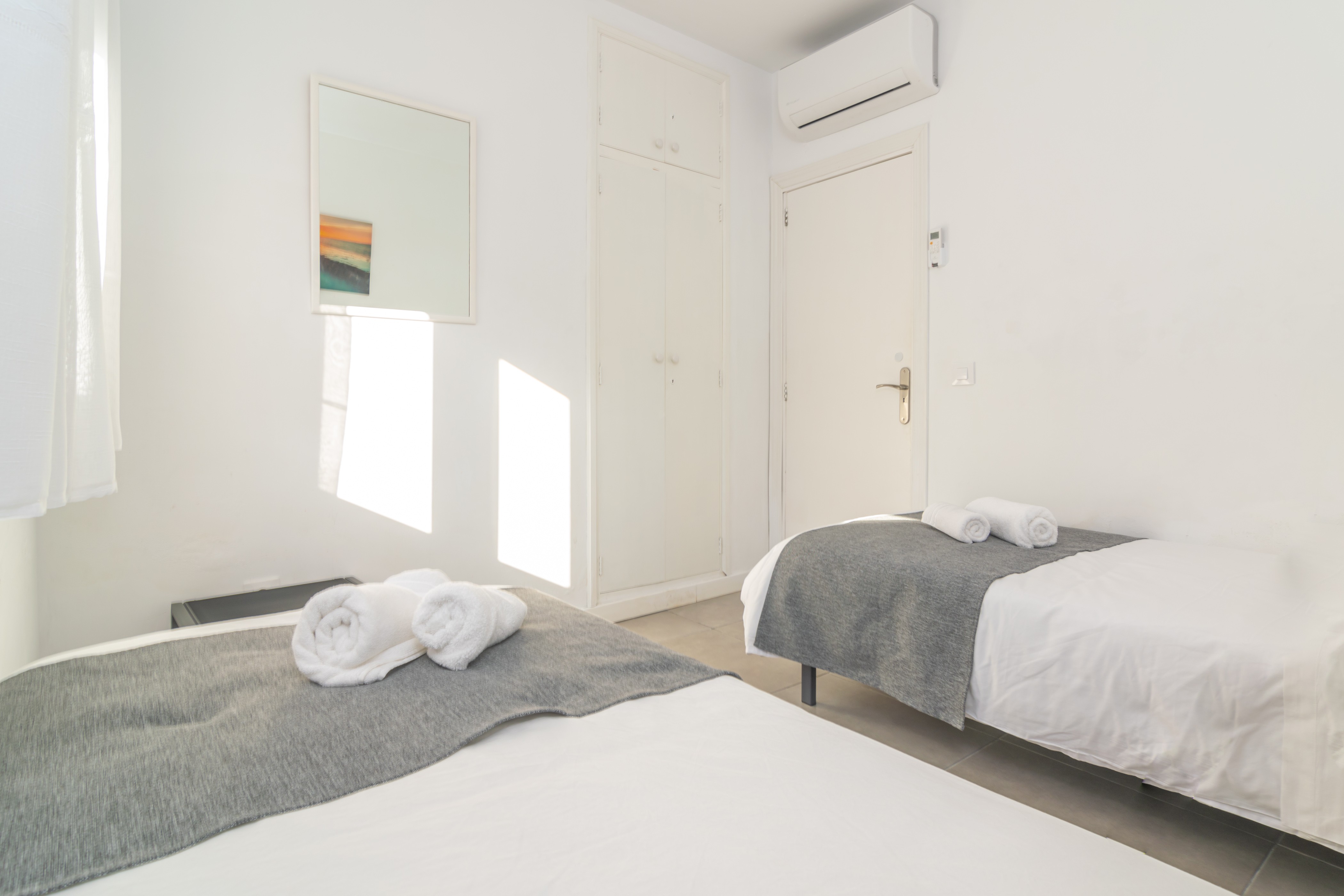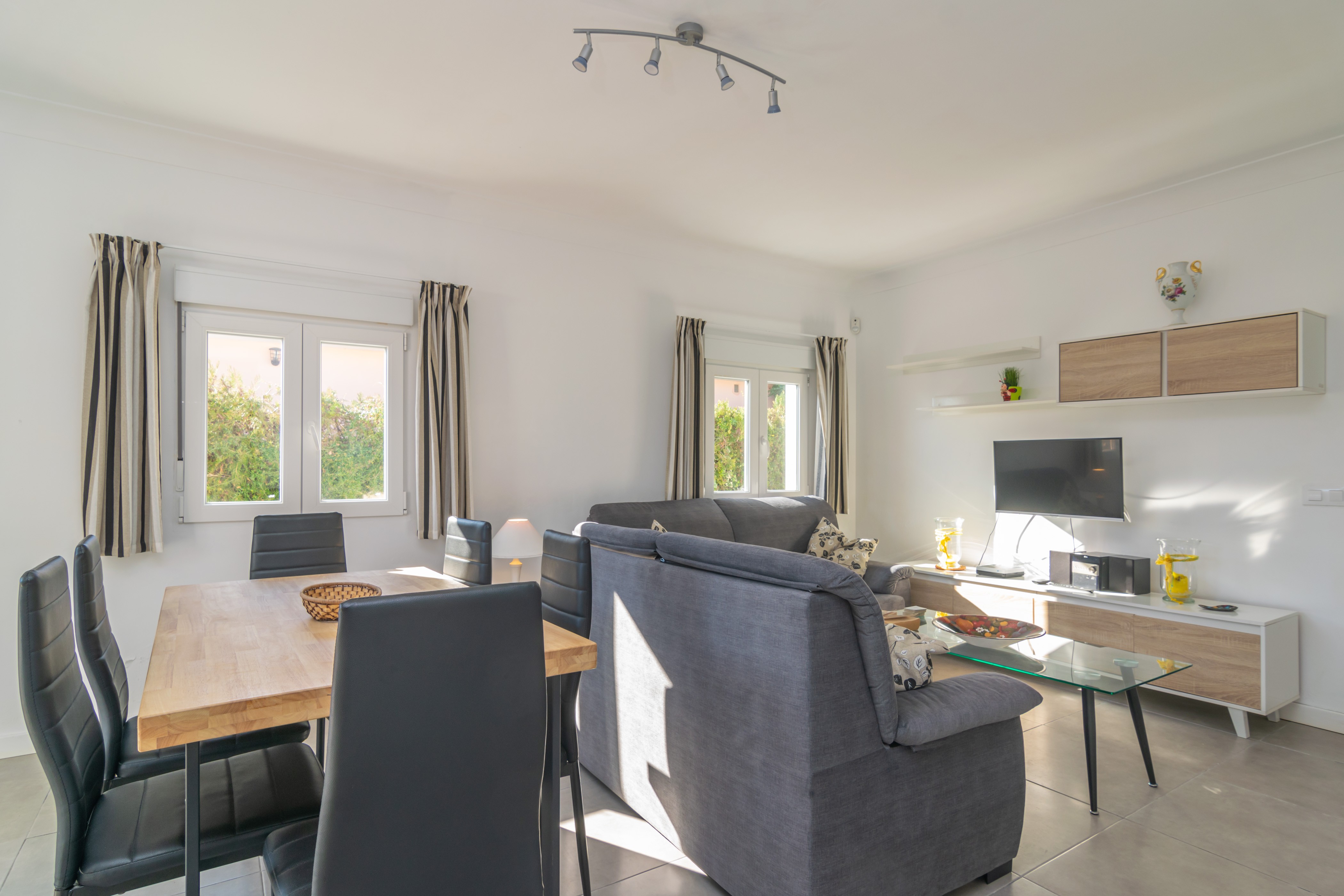 Het gelijkvloerse huis biedt een eenvoudige, moderne en gezellige stijl. Als we binnenkomen via de hoofdingang, vinden we de woon-eetkamer met AC en TV-sat die open staat naar de keuken, uitgerust met een keramische kookplaat en waar we ook de wasmachine vinden. Het huis heeft 4 slaapkamers, allemaal met AC. Twee van hen hebben een eenpersoonsbed, een andere heeft 2 aparte bedden en de laatste heeft een tweepersoonsbed. Er zijn ook 2 badkamers met een douche. En we kunnen ook zorgen voor een kinderbedje en kinderstoel als u met uw baby reist.