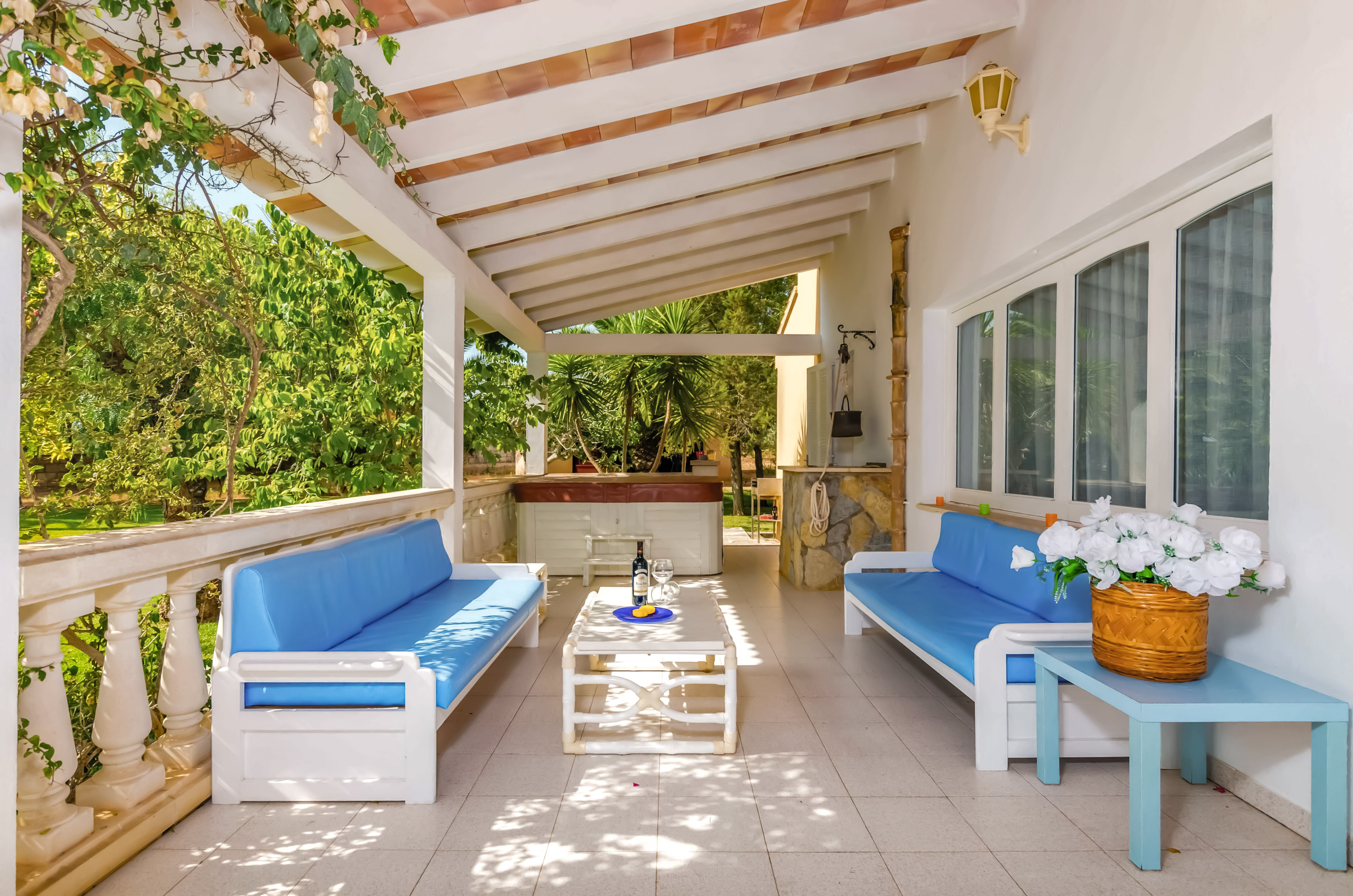 Het huis beschikt over in totaal vijf slaapkamers. Op de begane grond vindt u er een met een tweepersoonsbed, airconditioning, een kledingkast en een eigen badkamer met een hydromassagebad en een aparte douchecabine. Daarnaast beschikt deze verdieping over een gastentoilet met een wastafel.