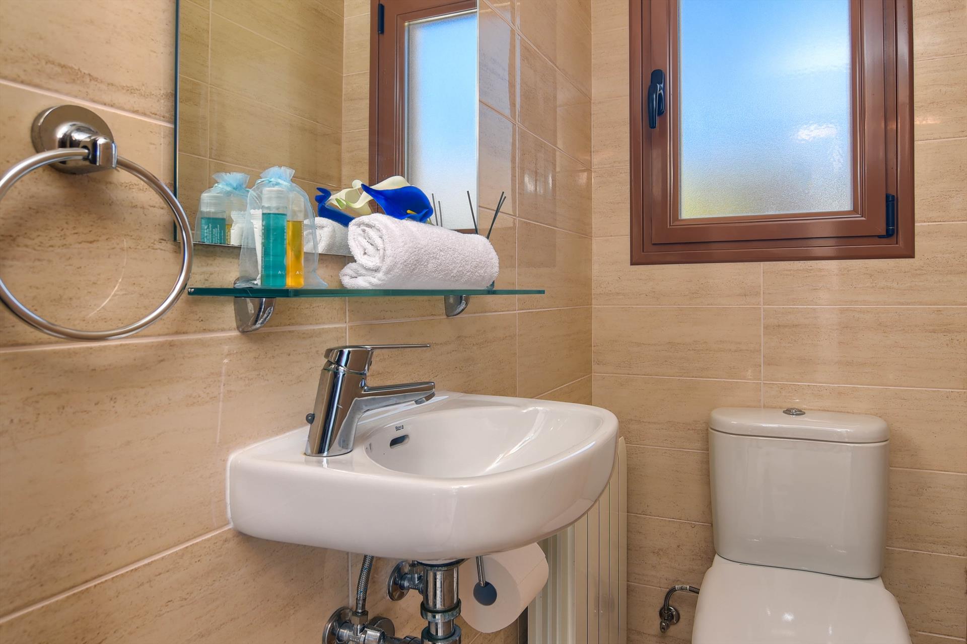 - 3 en-suite badkamers, elk met enkele wastafel, douche, toilet en haardroger
