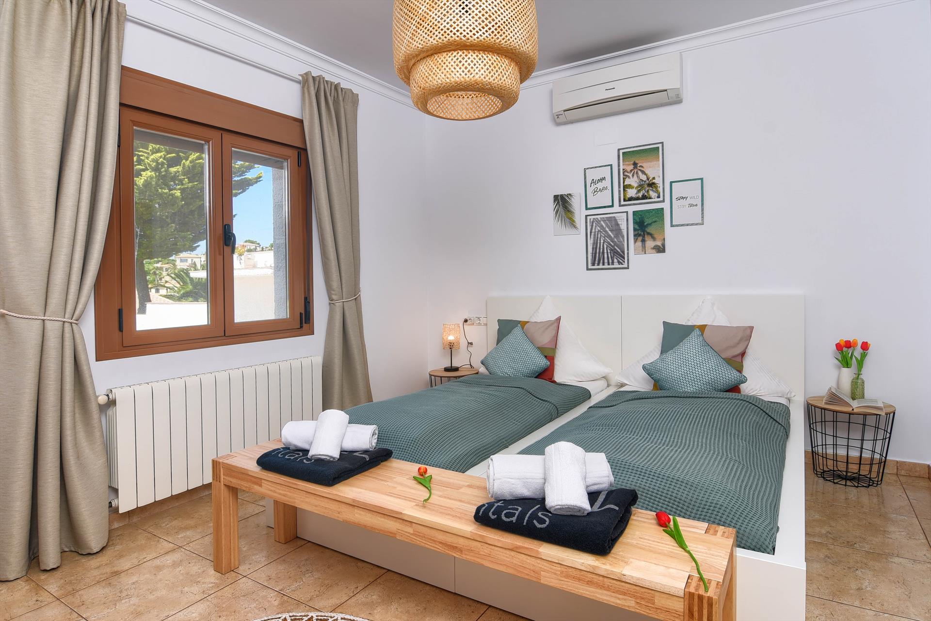 - 4 slaapkamers met airconditioning, elk met 2 eenpersoonsbedden (van 200 bij 90 cm) en badkamer en-suite