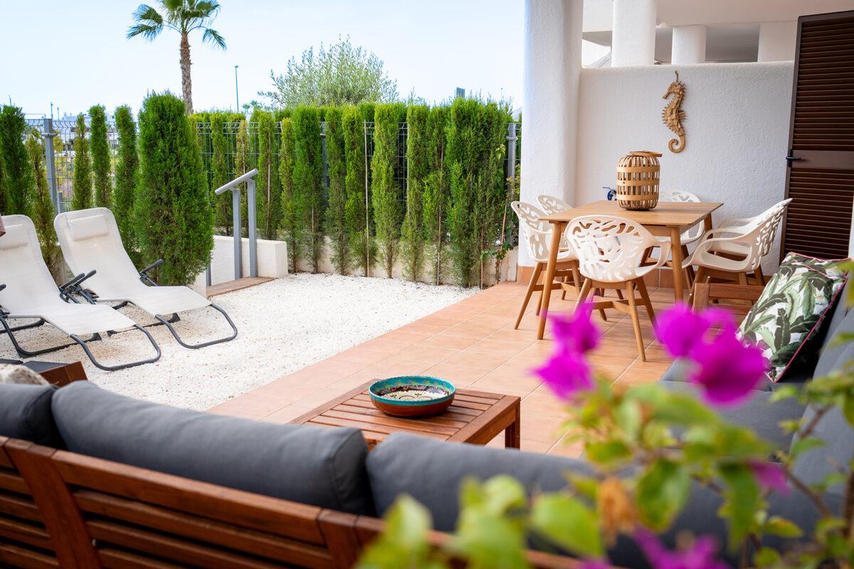 In het hart van het complex vinden bewoners uitstekende gemeenschappelijke voorzieningen, zoals zwembaden, kinderbaden, jacuzzi’s, ontmoetingsruimtes en speeltuinen. In de gemeenschappelijke zones zijn gratis ligstoelen en parasols beschikbaar – ideaal om te ontspannen in de Spaanse zon.