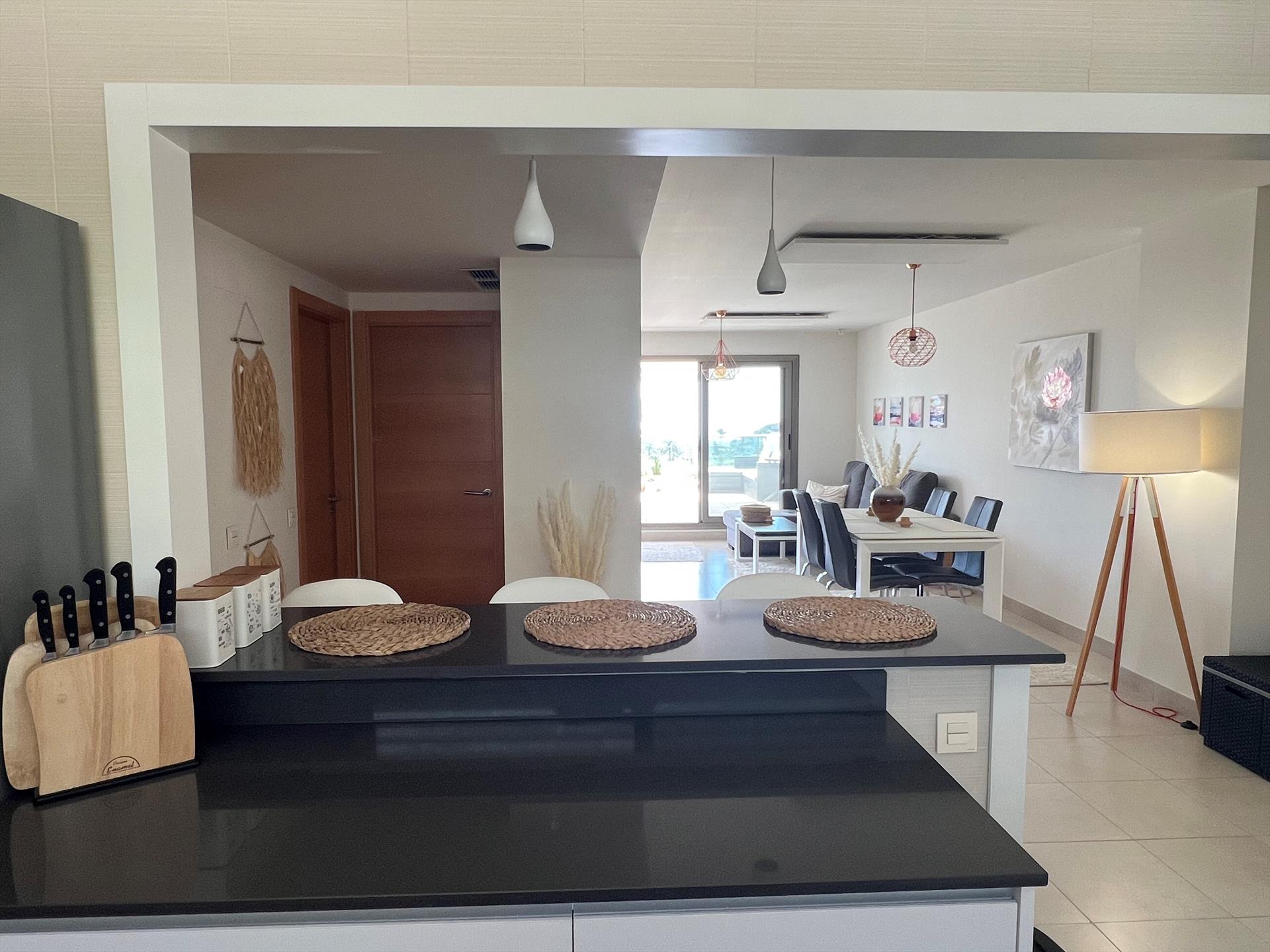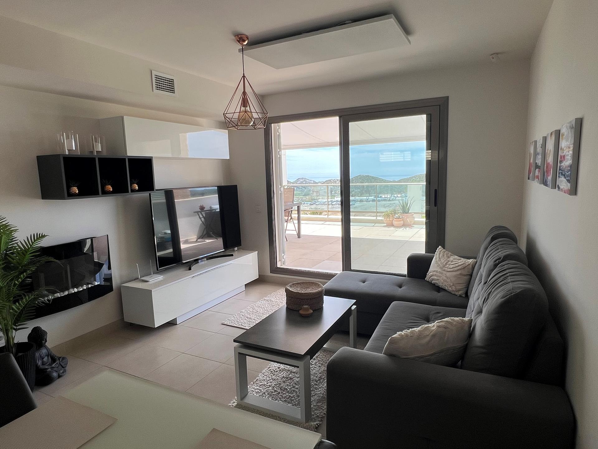 Het appartement heeft 2 slaapkamers en 2 badkamers. De accommodatie biedt een gemeenschappelijke tuin met gazon, een prachtig uitzicht op de golfbaan, en mooie uitzichten over de baai, de zee, de vallei, de bergen en de tuin. De nabijheid van het strand, sportactiviteiten, bezienswaardigheden en cultuur maakt dit een fijne plek om je vakantie in Spanje door te brengen met familie of vrienden.