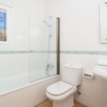 • Badkamer met enkele wastafel, douchebad en toilet