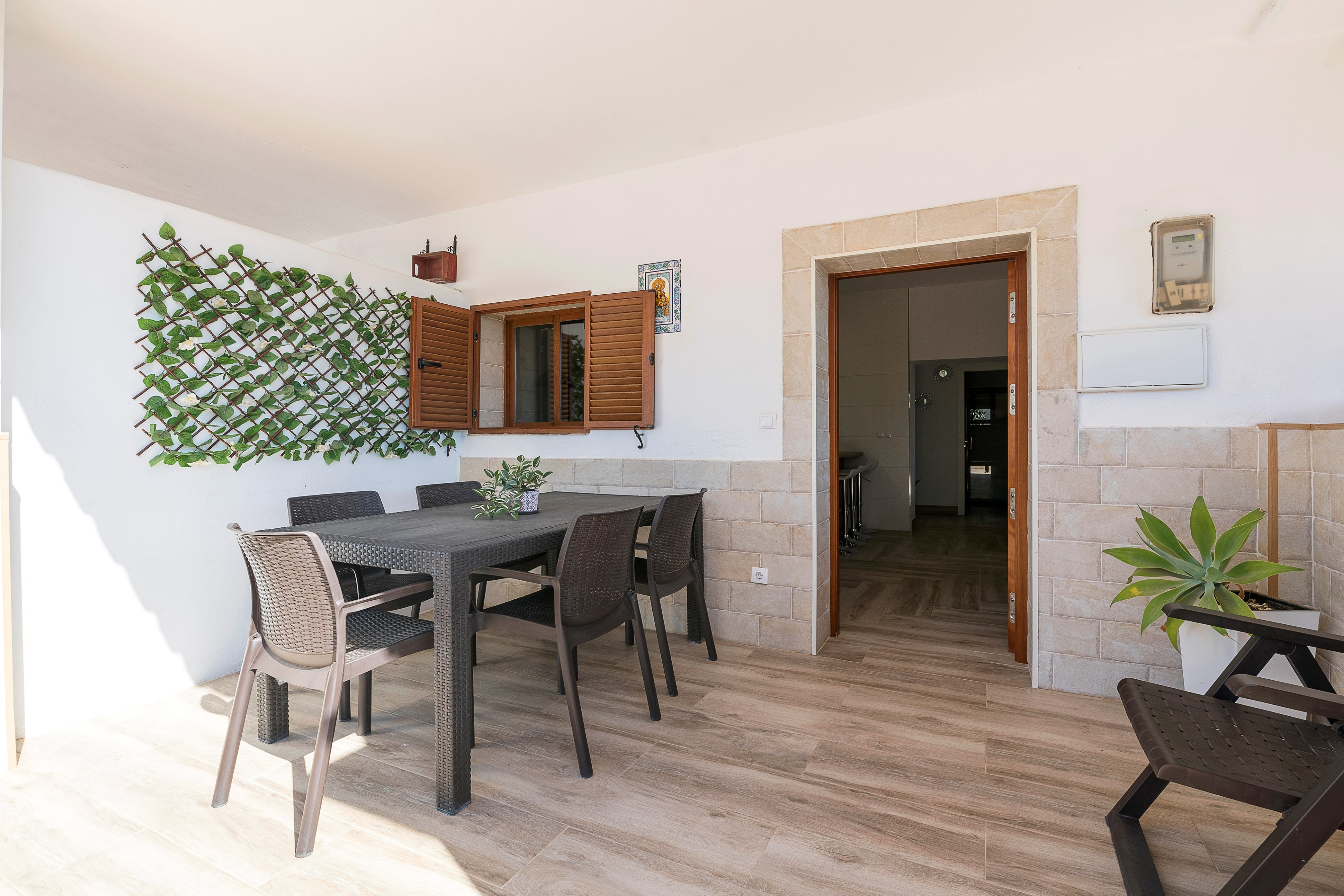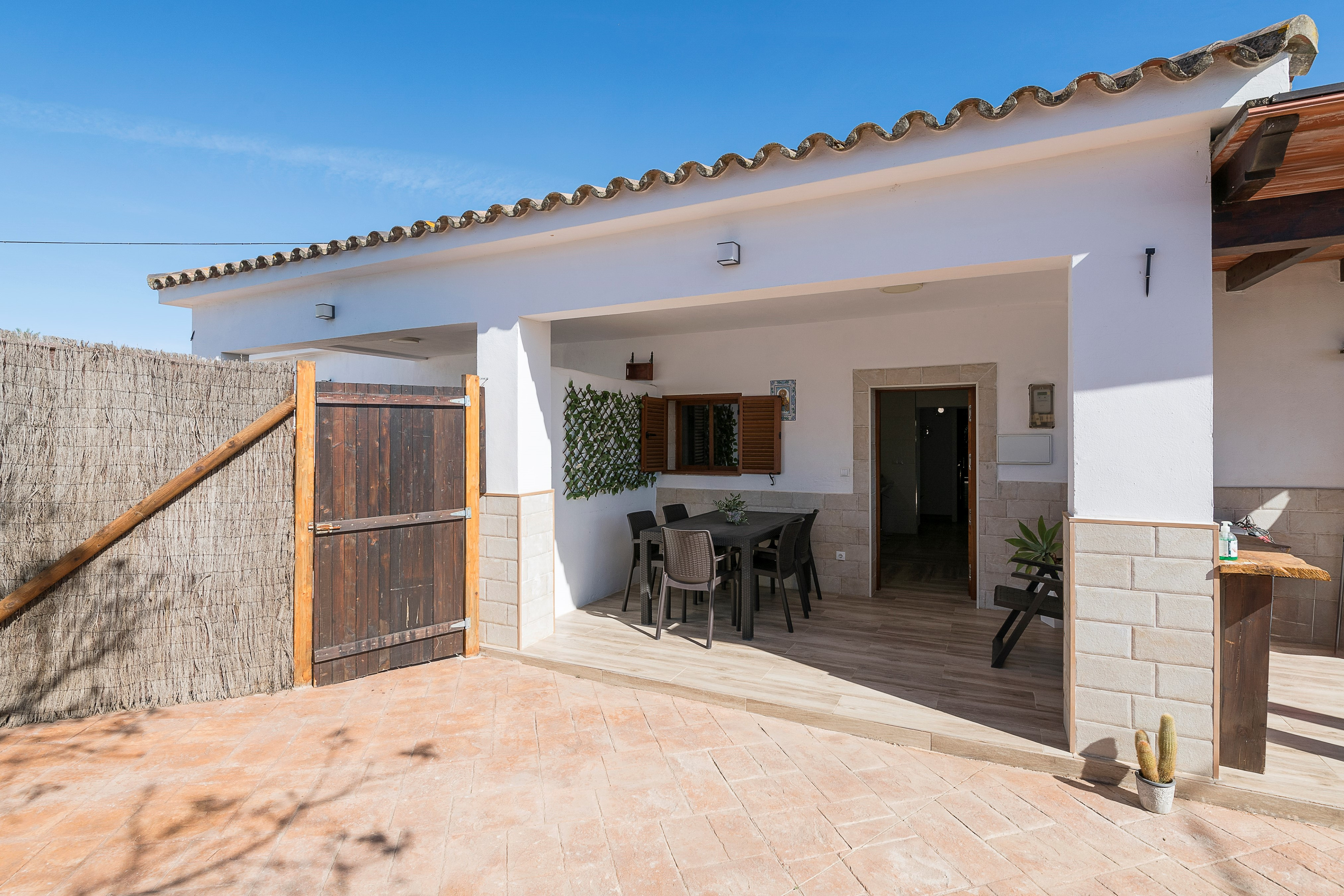 De buitenkant van de villa is ideaal om met vrienden of familie te genieten van het zuidelijke klimaat. Daar vindt u een privé chloorzwembad van 6 x 3 meter en een diepte tussen de 1,20m en 1,70m. U kunt ontspannen zonnebaden op de ligstoelen, een heerlijke barbecue bereiden en samen met uw gezelschap rustig eten op de veranda.