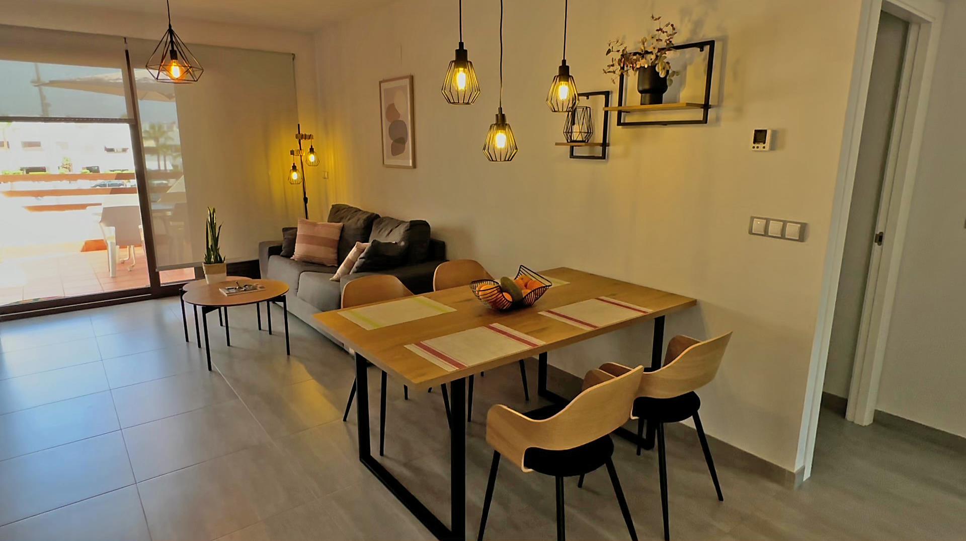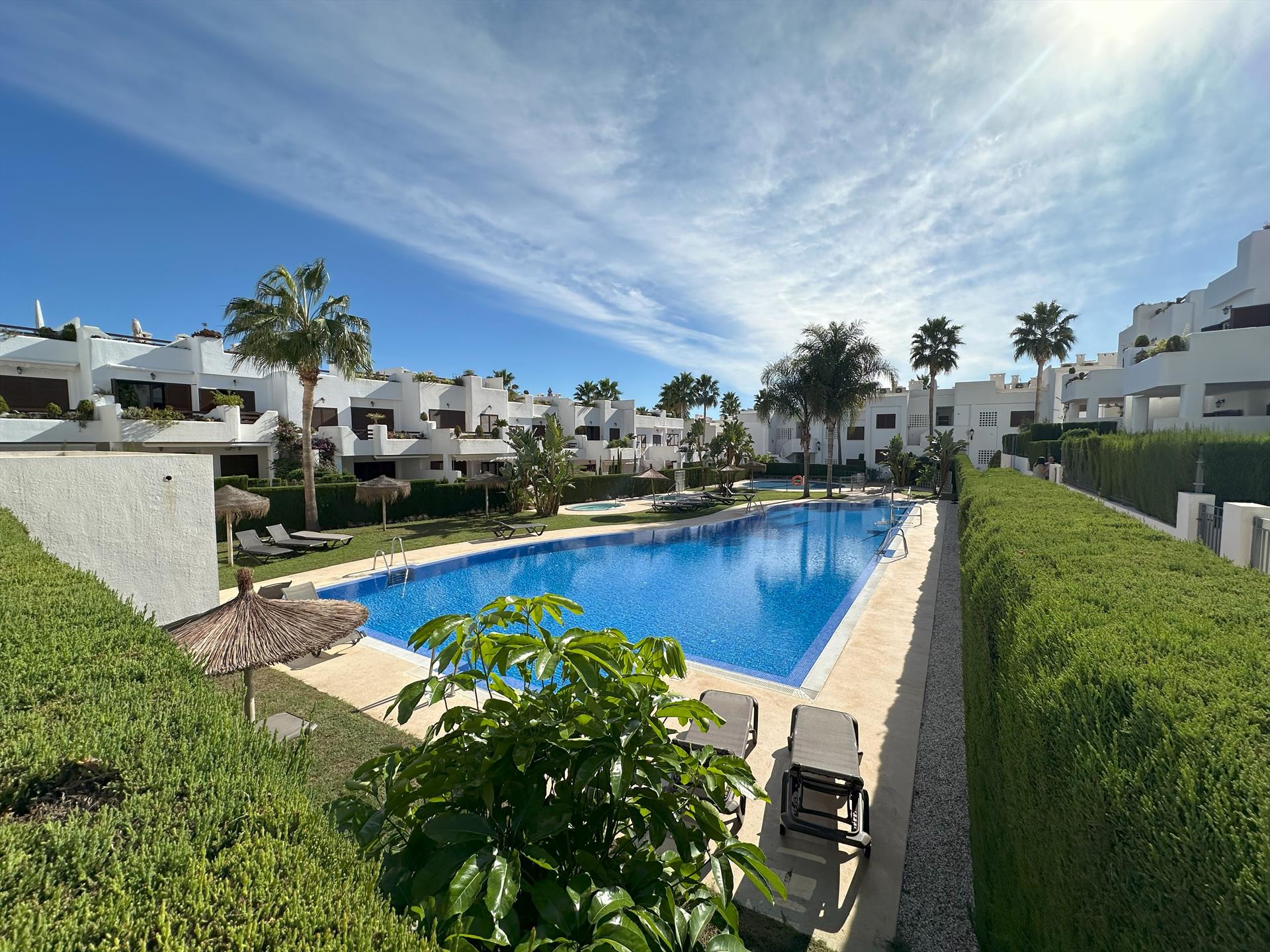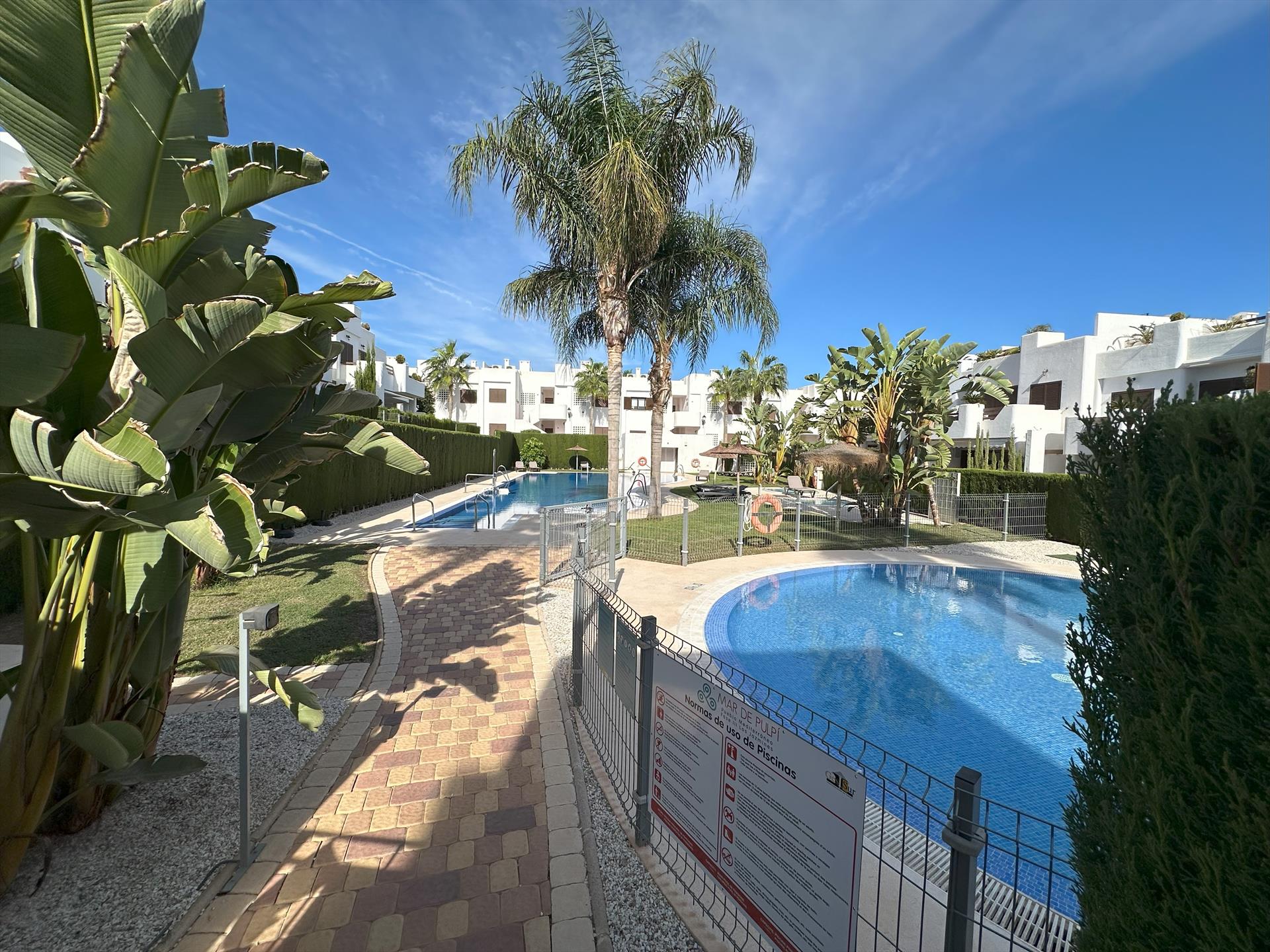 Mooie en comfortabele woning in San Juan de los Terreros, Andalusië, Spanje met gemeenschappelijk zwembad voor 4 personen. De woning ligt in een strandresort, in een residentieel en bergachtig kustgebied, dicht bij supermarkten en 200 m van het strand.