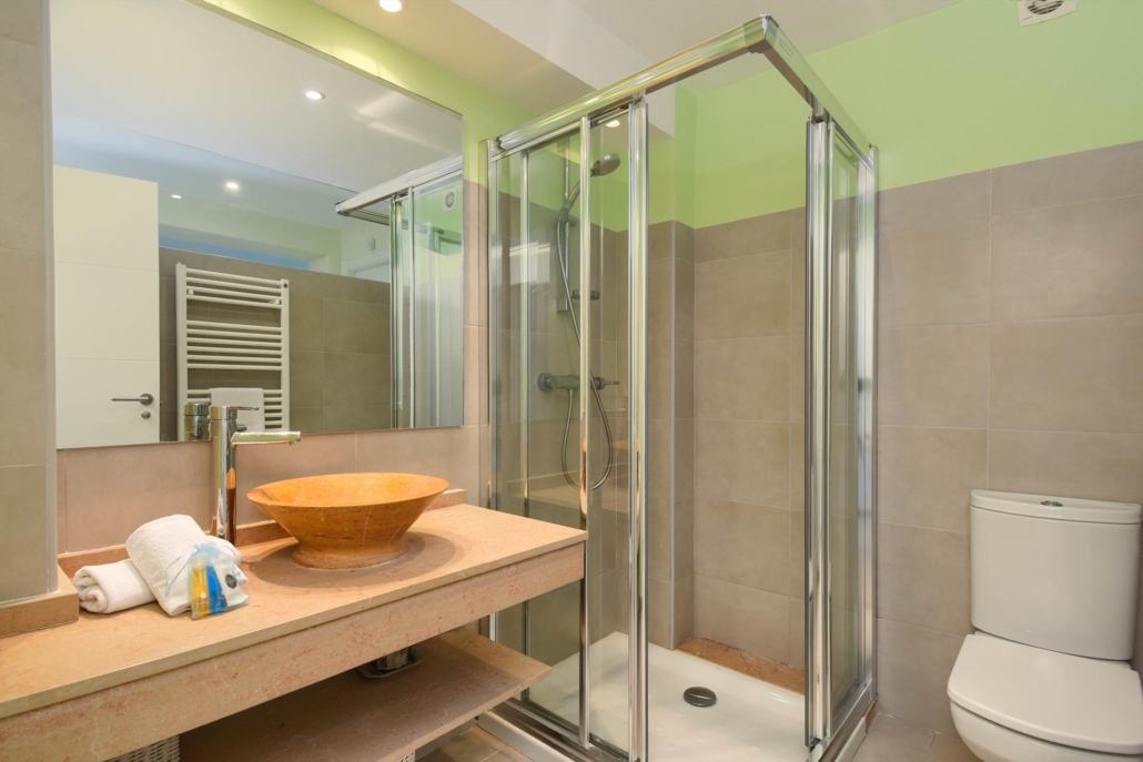 • 2 badkamers met elk een enkele wastafel, douche en toilet