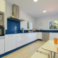 • Keuken met elektrisch fornuis, elektrische oven, magnetron, vaatwasser, koel-vriescombinatie, koffiezetapparaat, waterkoker, mixer, broodrooster en citruspers