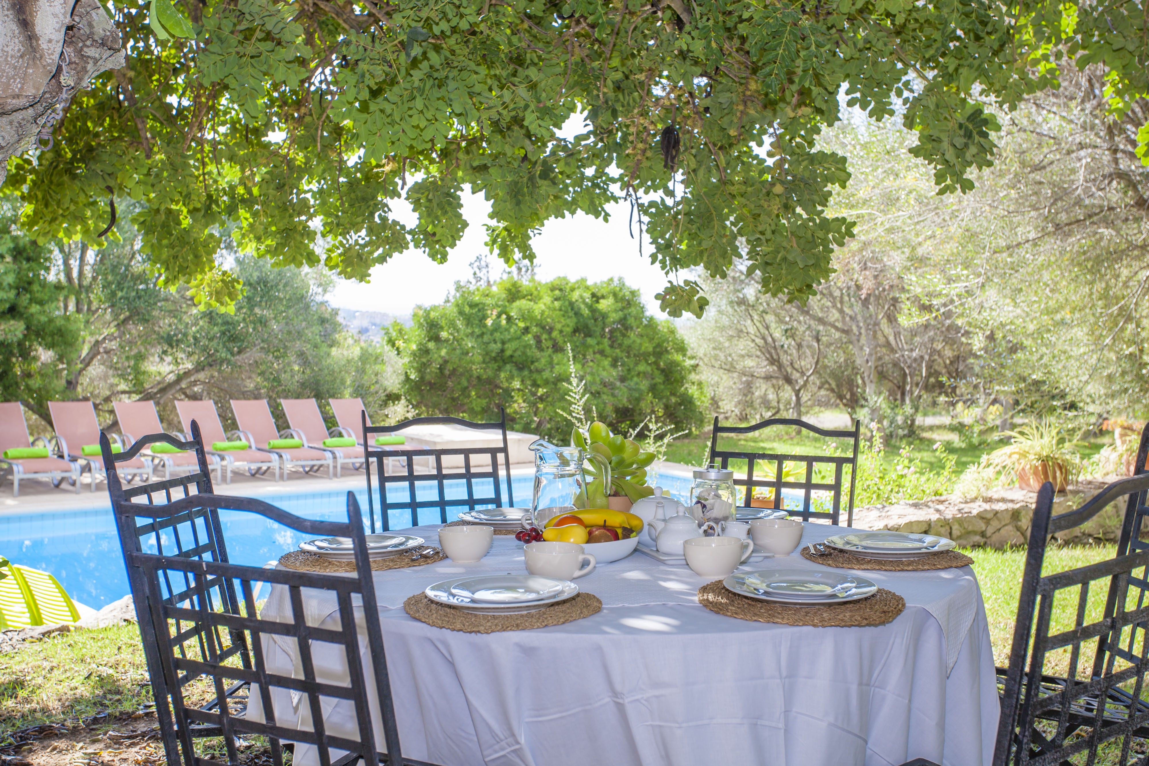 Het chloorzwembad van 11 x 5 meter is ingebed in een prachtig landschap met verschillende bomen. De diepte van het zwembad ligt tussen 0,8 m en 2,5 m. Na een ochtendzwemmen kunt u uw batterijen opladen met een uitgebreid ontbijt op het schaduwrijke terras of genieten van een luie ochtend terwijl u geniet van de zon. Het ruime perceel beschikt over vele leuke hoekjes om met uw dierbaren een glas wijn te drinken, met uw kinderen in de tuin te spelen of ’s avonds lekker te barbecueën. Het eerste perceel heeft een balkon met prachtig uitzicht op zee. Deze finca is omheind en er zijn een paar buren in de buurt.