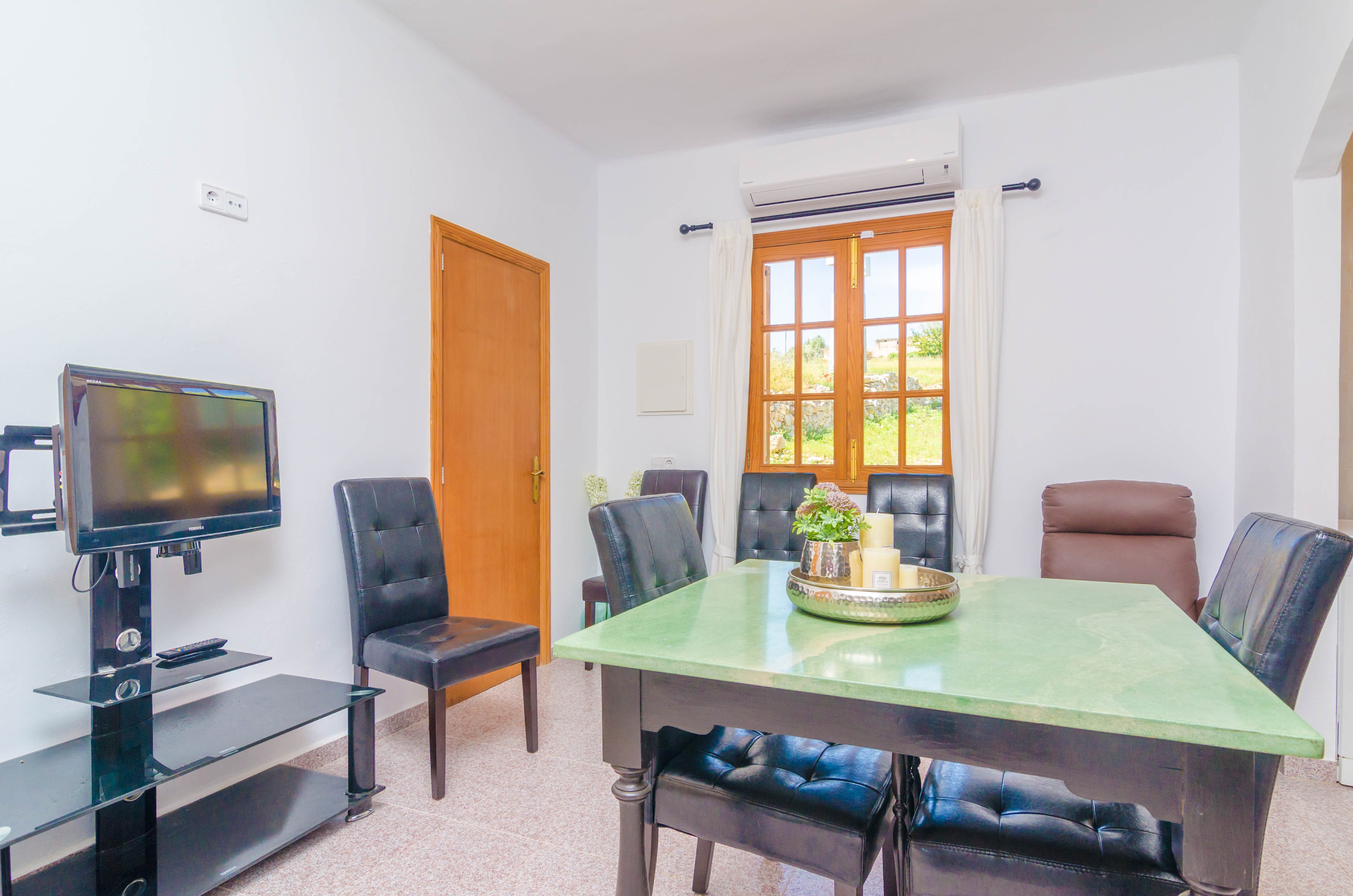 U kunt het huis betreden vanaf het terras en u vindt de zit-eetkamer, met een duidelijke Mallorcaanse stijl die u kunt zien in het speciale plafond, waar u kunt uitrusten op de bank en satelliet-tv kunt kijken, of hier kunt genieten van uw maaltijden die afkoelen met de airconditioning terwijl het buiten warm is. Vanaf hier heeft u toegang tot de keuken die is uitgerust met een keramische kookplaat, een tafel met stoelen, airconditioning en een kleine hal. De wasruimte is onafhankelijk en biedt een wasmachine, een strijkijzer en een strijkplank. Er is een badkamer met douche en bidet voor de hele accommodatie, evenals drie slaapkamers met elk een kast. Eén heeft een tweepersoonsbed en een eigen badkamer met douche. Een andere heeft twee eenpersoonsbedden en de laatste heeft een stapelbed. Als u met uw baby reist, zijn er ook een kinderbedje en een kinderstoel beschikbaar.