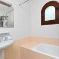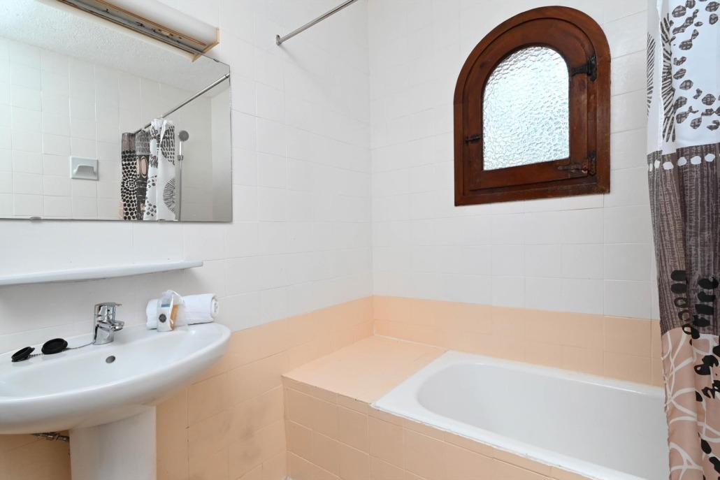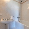 - badkamer met enkele wastafel, ligbad/douchecombinatie en toilet