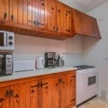 - keuken met gaskookplaat, gasoven, magnetron, vaatwasser, koel-vriescombinatie, koffiezetapparaat, waterkoker, mixer, broodrooster en citruspers
