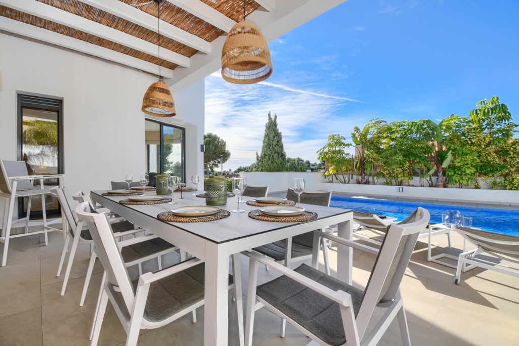 Moderne en mooie villa in Benissa, Costa Blanca, Spanje met privé zwembad voor 6 personen. Het huis ligt in een woonwijk, ongeveer 4 km van het strand van Cala Baladrar en ongeveer 4 km van Moraira.
