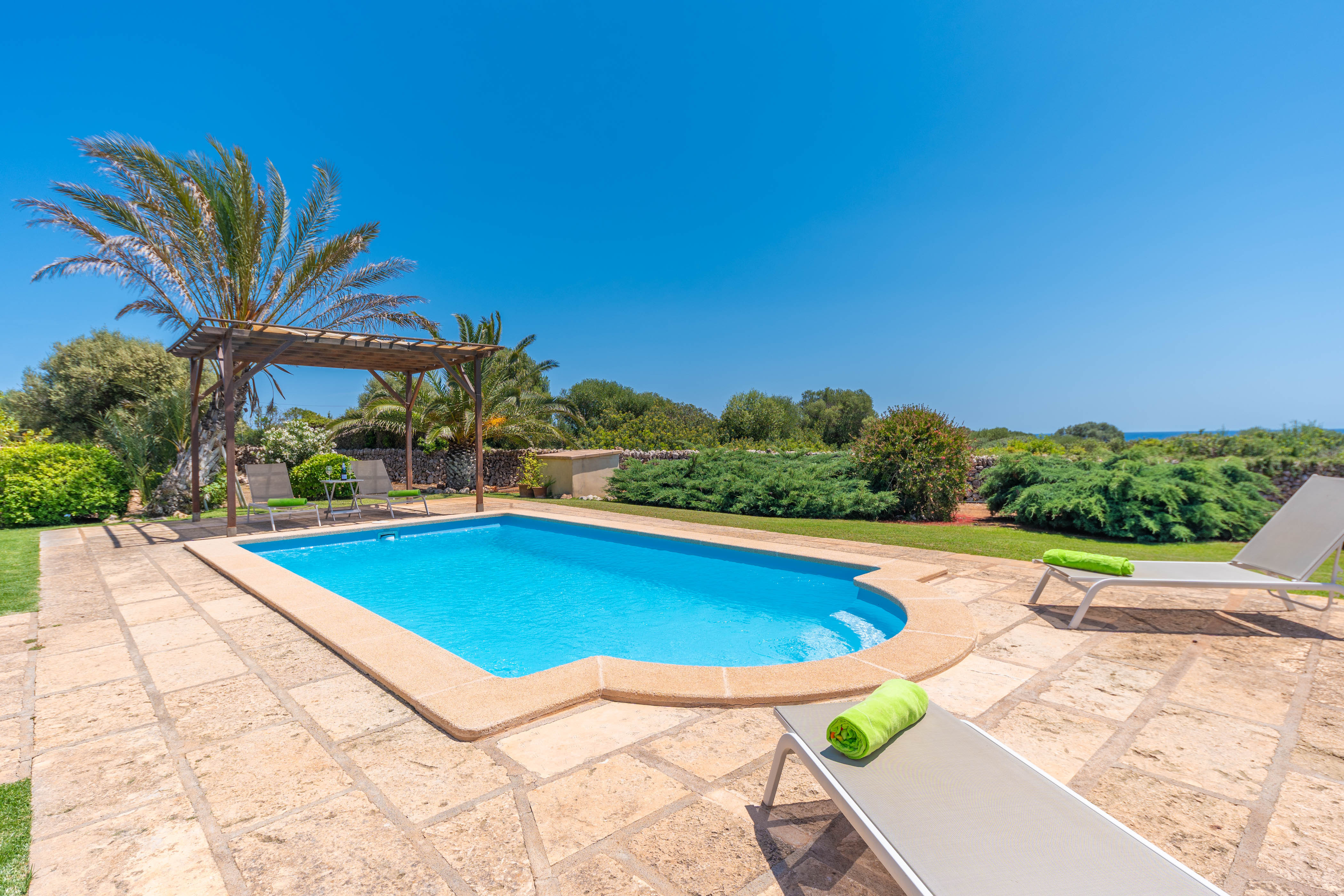 Omringd door een rustige natuurlijke omgeving en een zorgvuldig onderhouden tuin, heeft de buitenkant van dit huis een chloorzwembad van 7,80×3,80 meter met dieptes variërend van 1,20 tot 1,70 meter, perfect om af te koelen op warme dagen. Rondom het zwembad staan verschillende ligstoelen om te ontspannen en te genieten van de zonnestralen.