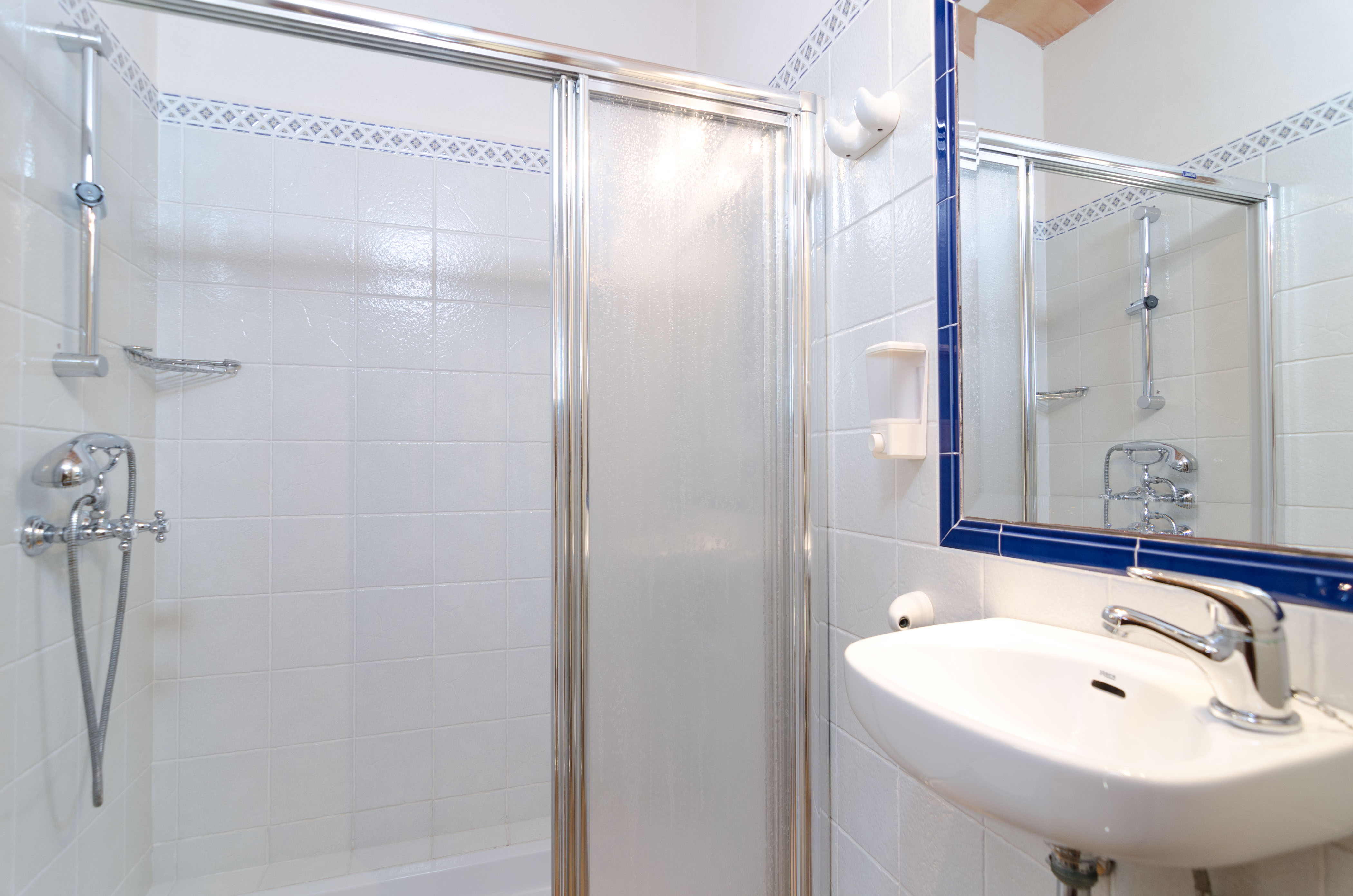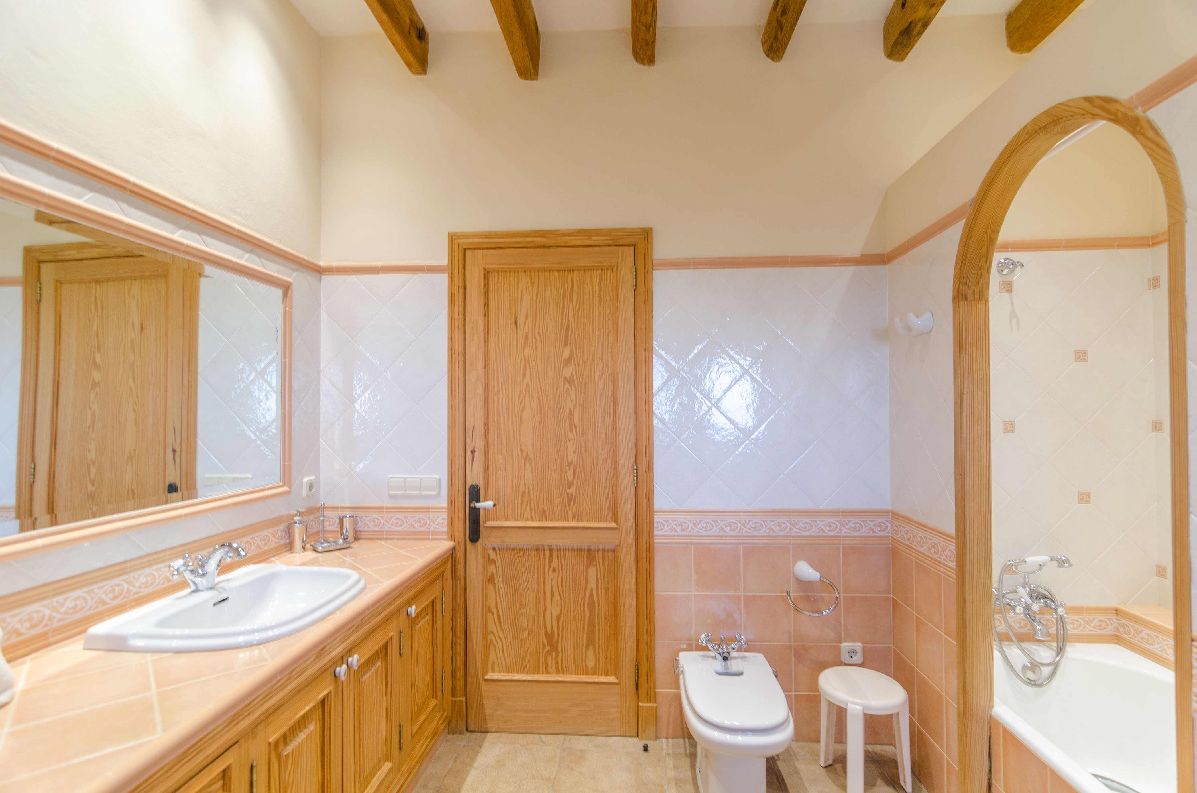 Op de eerste verdieping bevindt zich een eenvoudige woonkamer met televisie, ideaal om u even terug te trekken van het vermaak van andere familieleden of vrienden. Vier slaapkamers, één met een tweepersoonsbed en een eigen badkamer met een groot bad, een andere met een tweepersoonsbed, een derde met twee eenpersoonsbedden en een vierde met een stapelbed, bevinden zich op deze verdieping, evenals een tweede badkamer met een douche. Alle slaapkamers zijn voorzien van airconditioning en kledingkasten, en drie ervan, gelegen op de bovenverdieping, hebben toegang tot twee terrassen met uitzicht op de tuin. Daarnaast beschikt het huis over airconditioning in de twee woonkamers en de eetkamer. Twee kinderbedjes en twee kinderstoelen zijn op aanvraag beschikbaar.