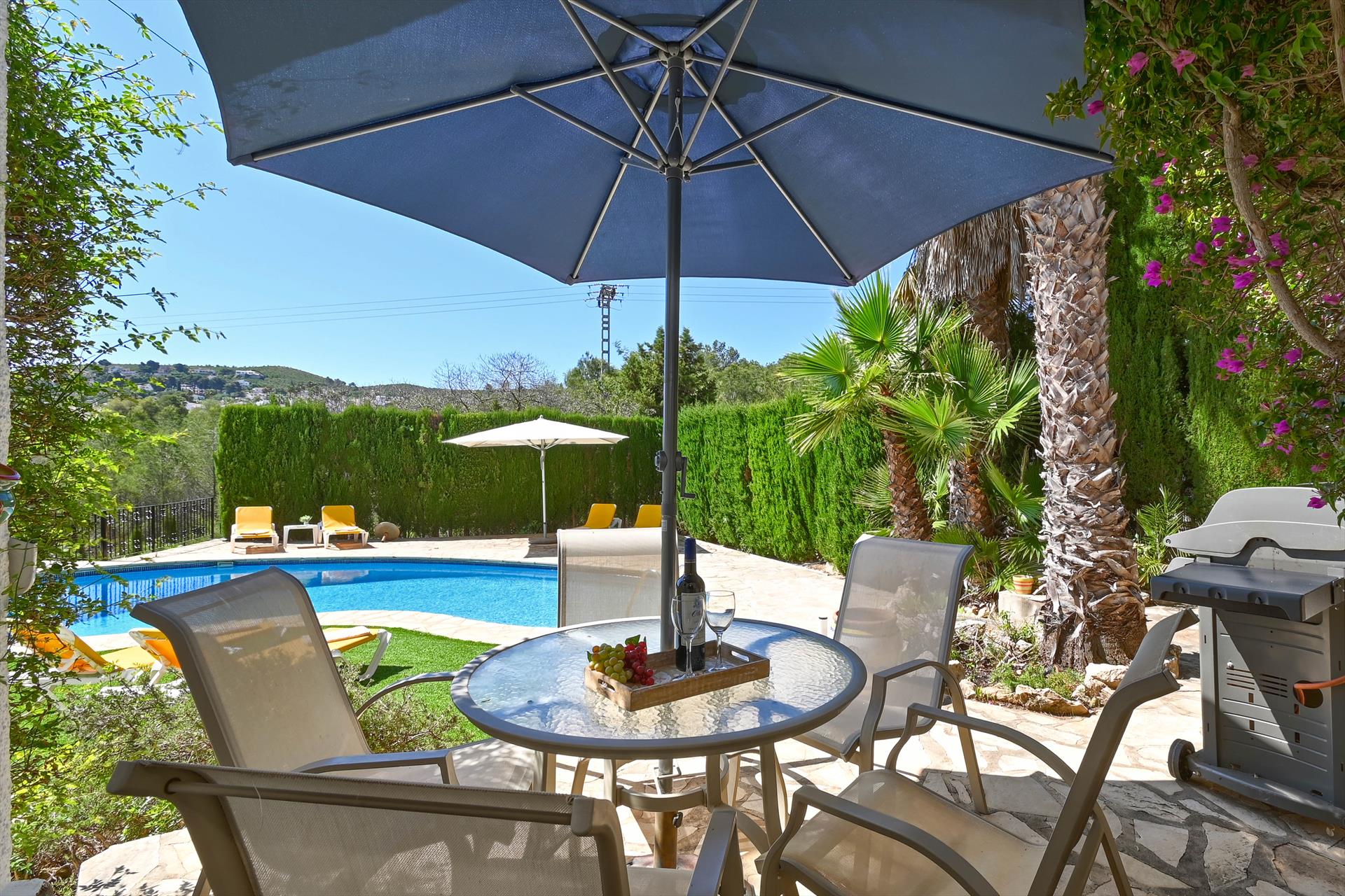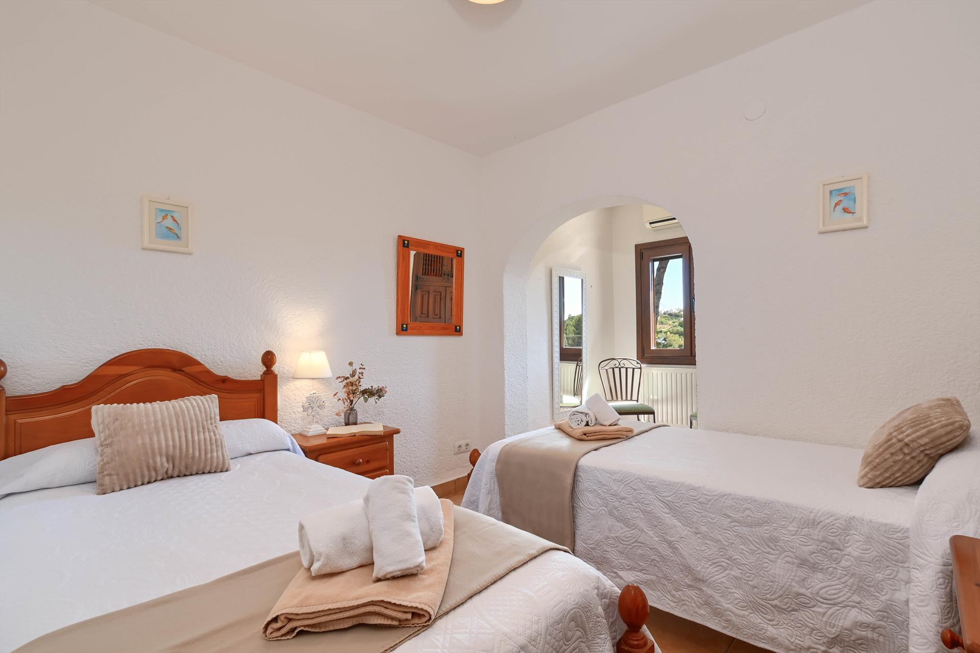 De villa beschikt over 3 slaapkamers en 3 badkamers, verdeeld over 2 niveaus. De accommodatie biedt privacy, een mooie gazontuin met grind en bomen, een groot mooi zwembad en prachtige uitzichten over de vallei. Het comfort en de nabijheid van het strand, sportactiviteiten, bezienswaardigheden en cultuur maken dit een fijne villa om uw vakantie in Spanje door te brengen met familie of vrienden.