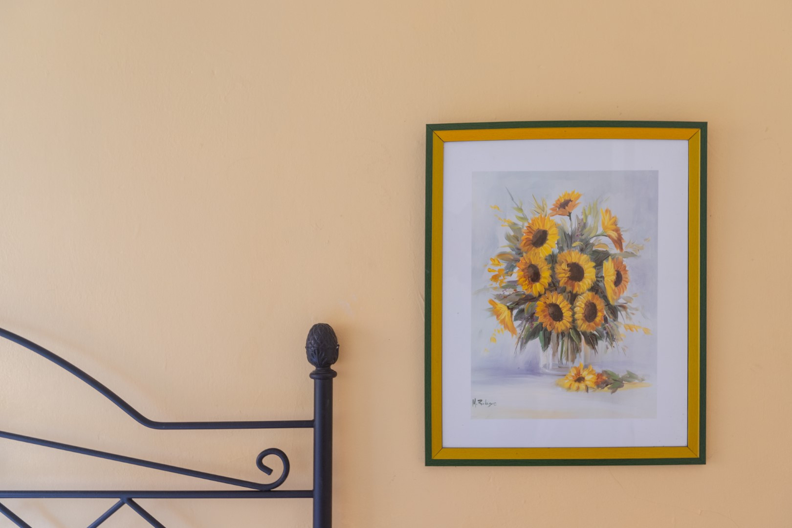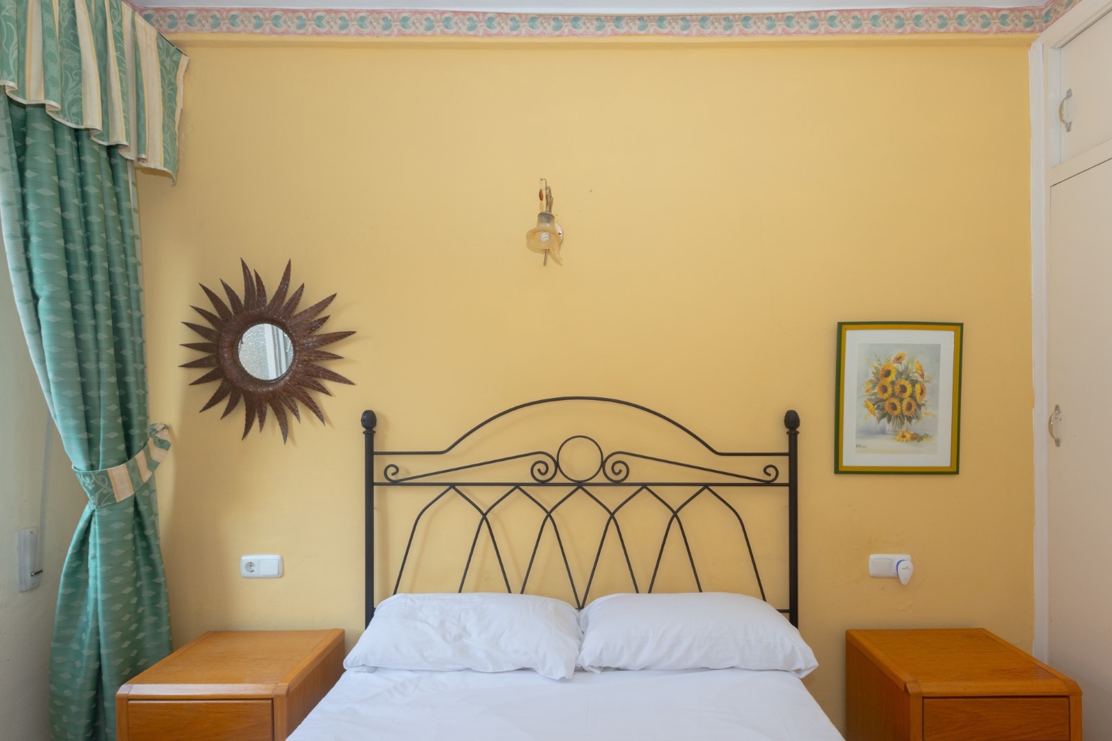 Binnen biedt het appartement – gelegen op de eerste verdieping van een gebouw zonder lift – een lichte en functionele indeling. De woonkamer is voorzien van airconditioning, een Smart TV en een open eetgedeelte. De keuken, uitgerust met een keramische kookplaat, beschikt over alle essentiële keukengerei om huisgemaakte maaltijden te bereiden. Er zijn twee slaapkamers: één met een tweepersoonsbed en één met twee eenpersoonsbedden, beide uitgerust met ventilatoren en kledingkasten. De complete badkamer beschikt over een douche en een wastafel. Voor extra gemak zijn er ook een wasmachine, strijkijzer en strijkplank aanwezig, wat zorgt voor een praktisch en comfortabel verblijf.