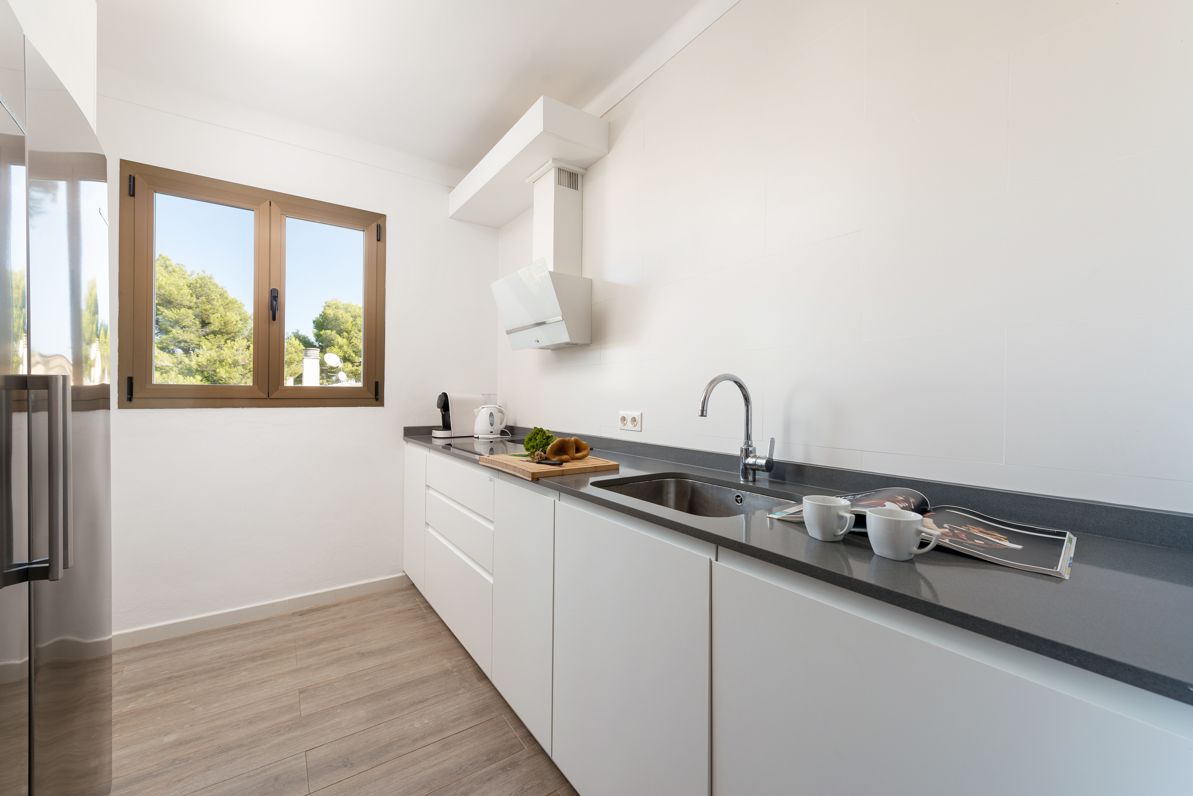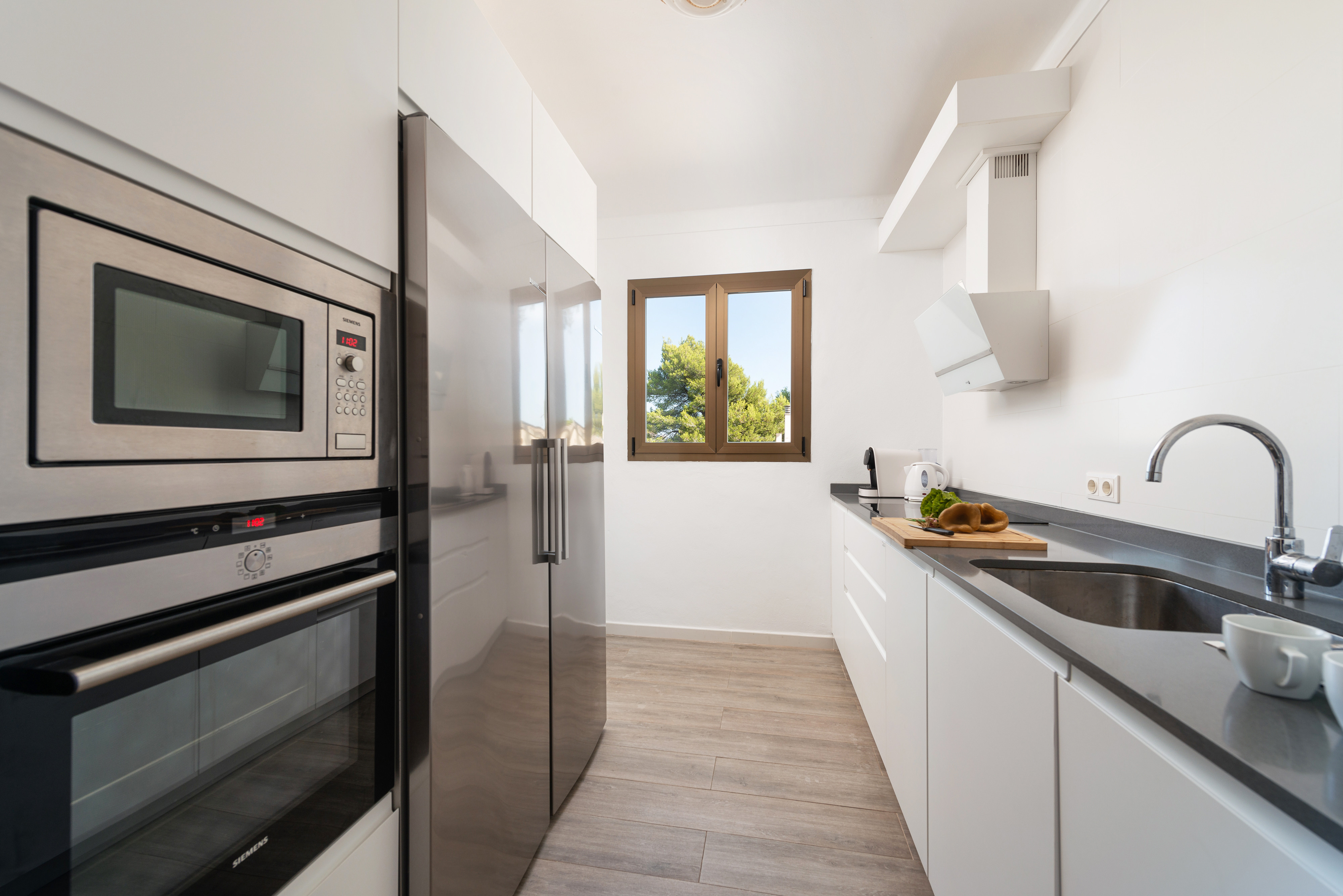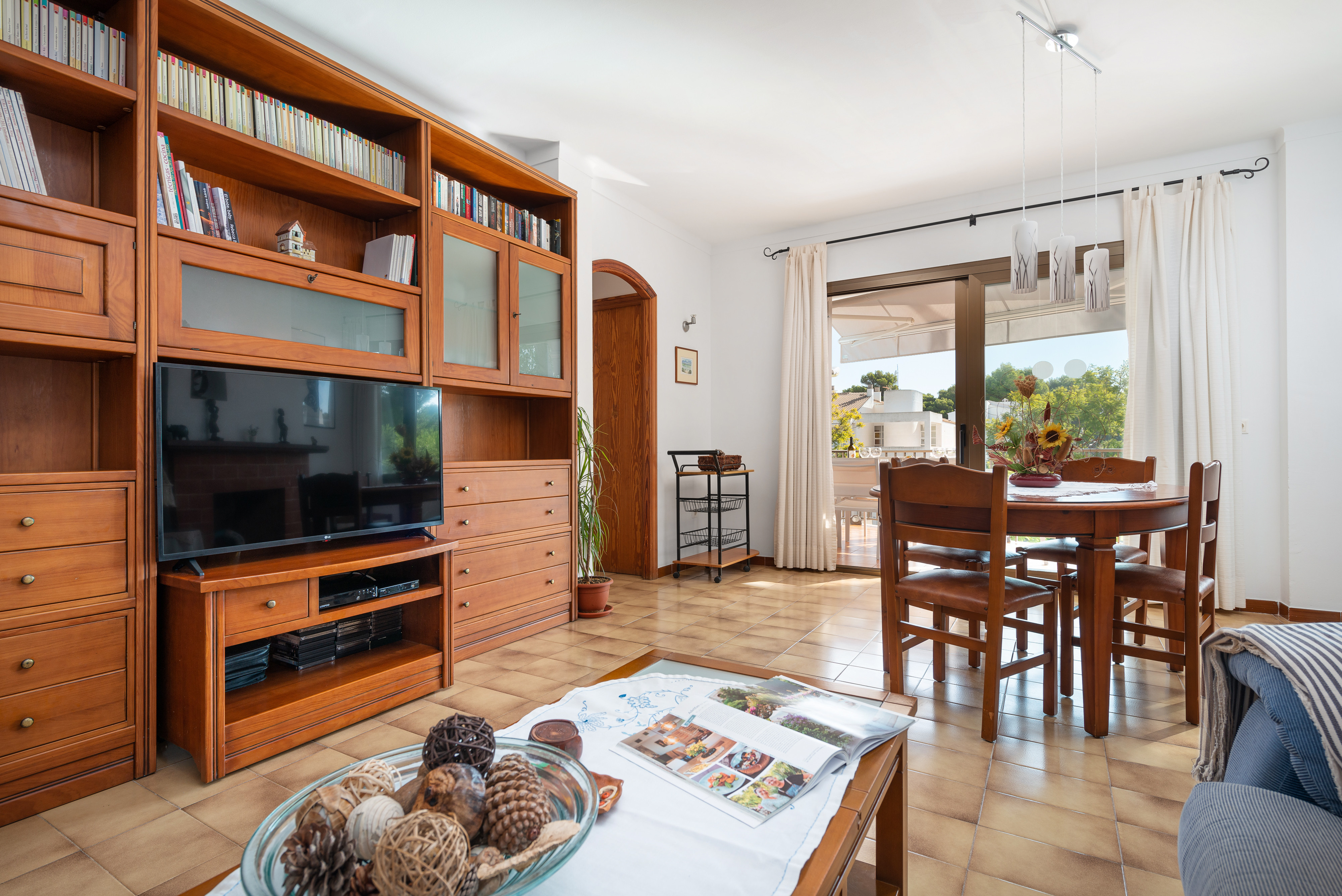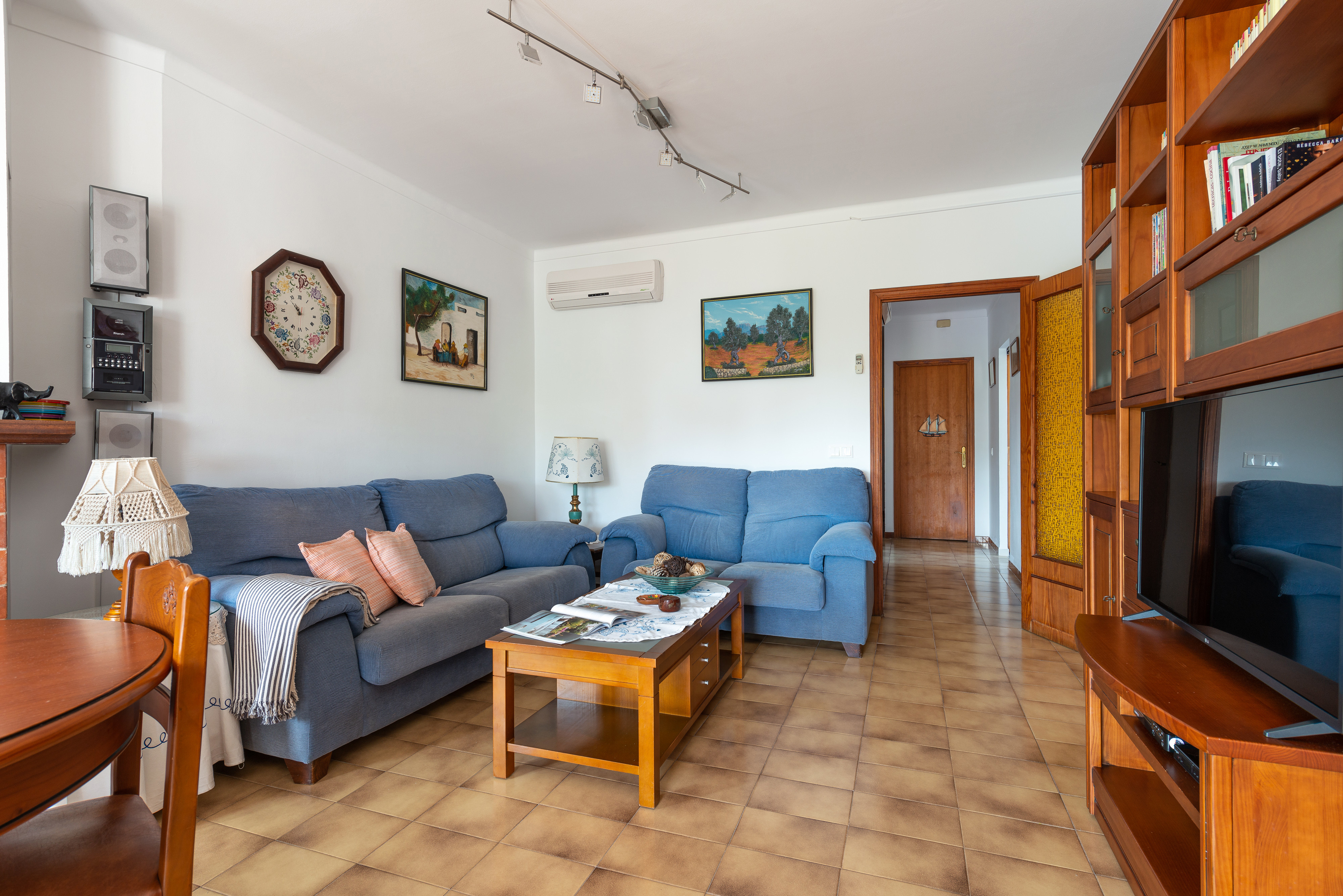 In de accommodatie vindt u een comfortabele en ruime woon-eetkamer met Smart TV, CD- en DVD-spelers en airconditioning, zodat entertainment na de lunch gegarandeerd is. Dan komen we bij de keuken die onlangs is vernieuwd en uitgerust met een keramische kookplaat, oven, magnetron en alles wat je nodig hebt om te koken alsof je thuis bent. Er zijn 3 slaapkamers waar u tijdens uw vakantie kunt uitrusten, allemaal met een kast. Eén heeft een tweepersoonsbed, een ventilator en ruimte voor een kinderbedje en een kinderstoel en de andere twee hebben elk twee eenpersoonsbedden. Er zijn twee badkamers om de accommodatie compleet te maken, één met een douche en de andere met een bad. Tenslotte maken een wasmachine, een strijkijzer en een strijkplank de uitrusting compleet.