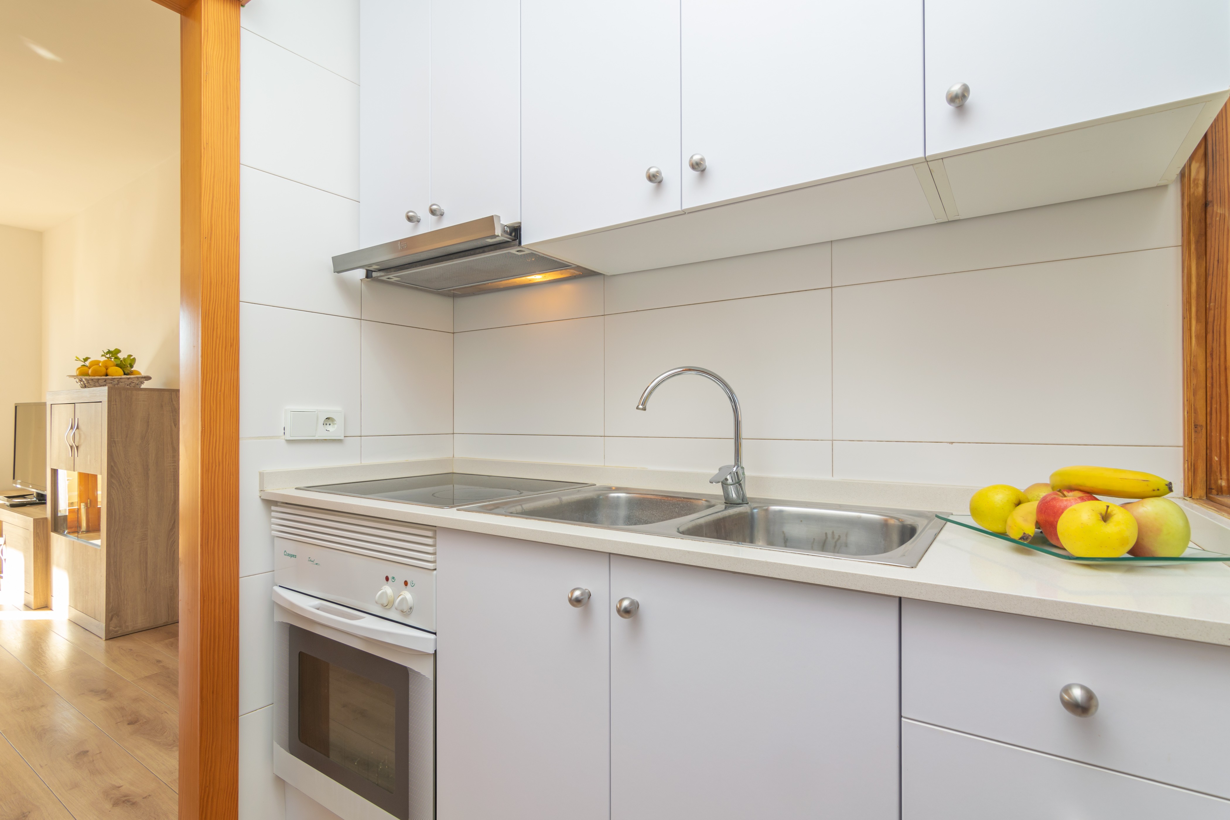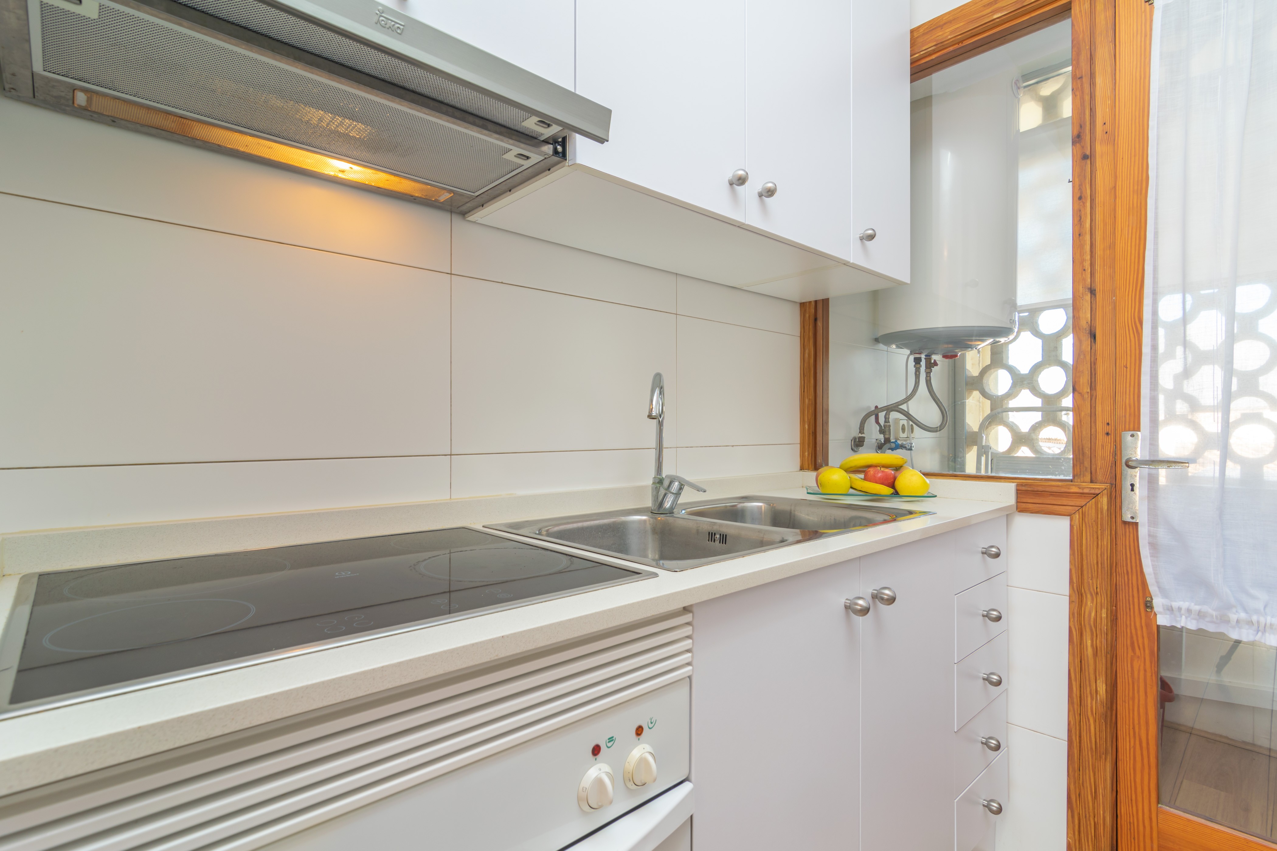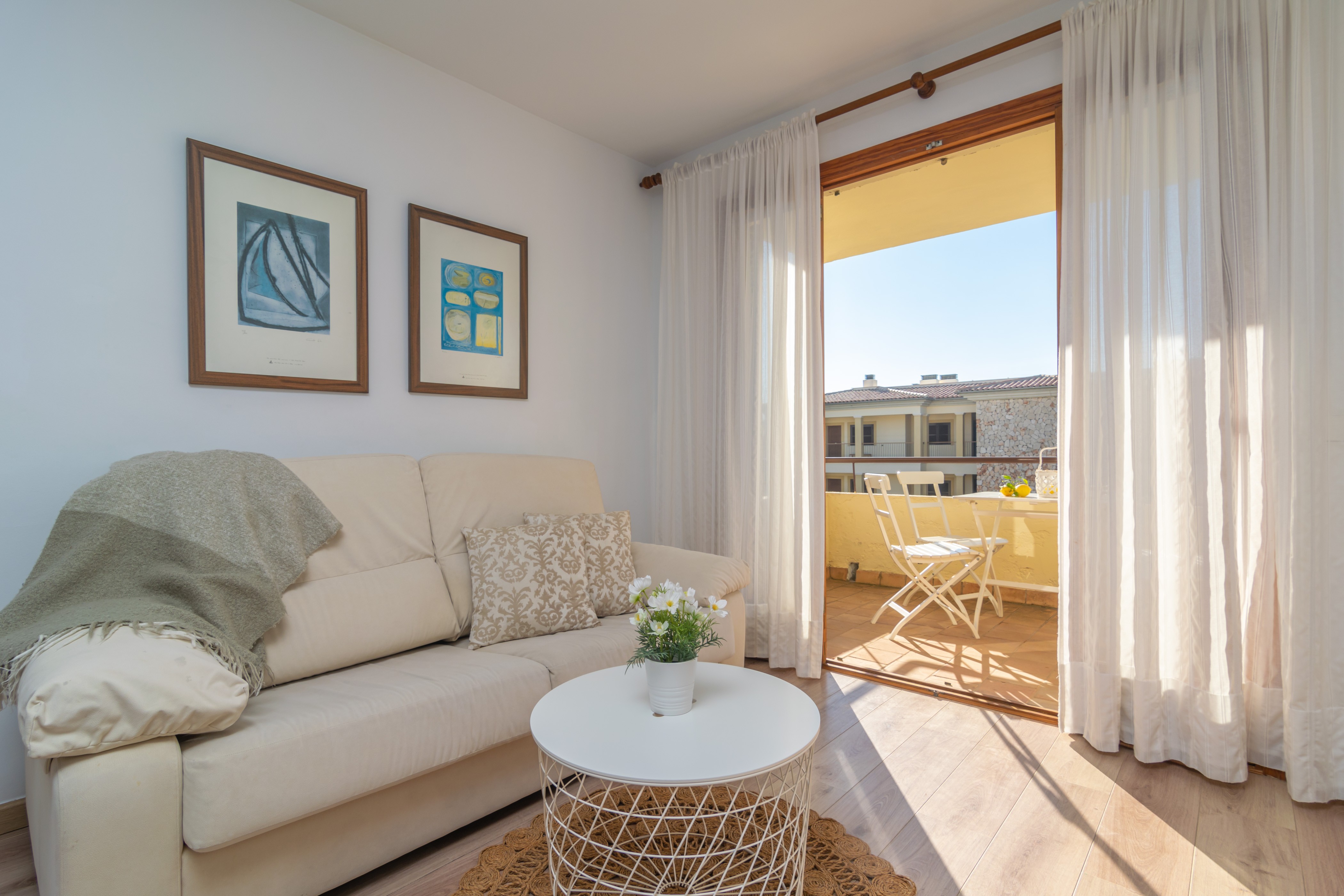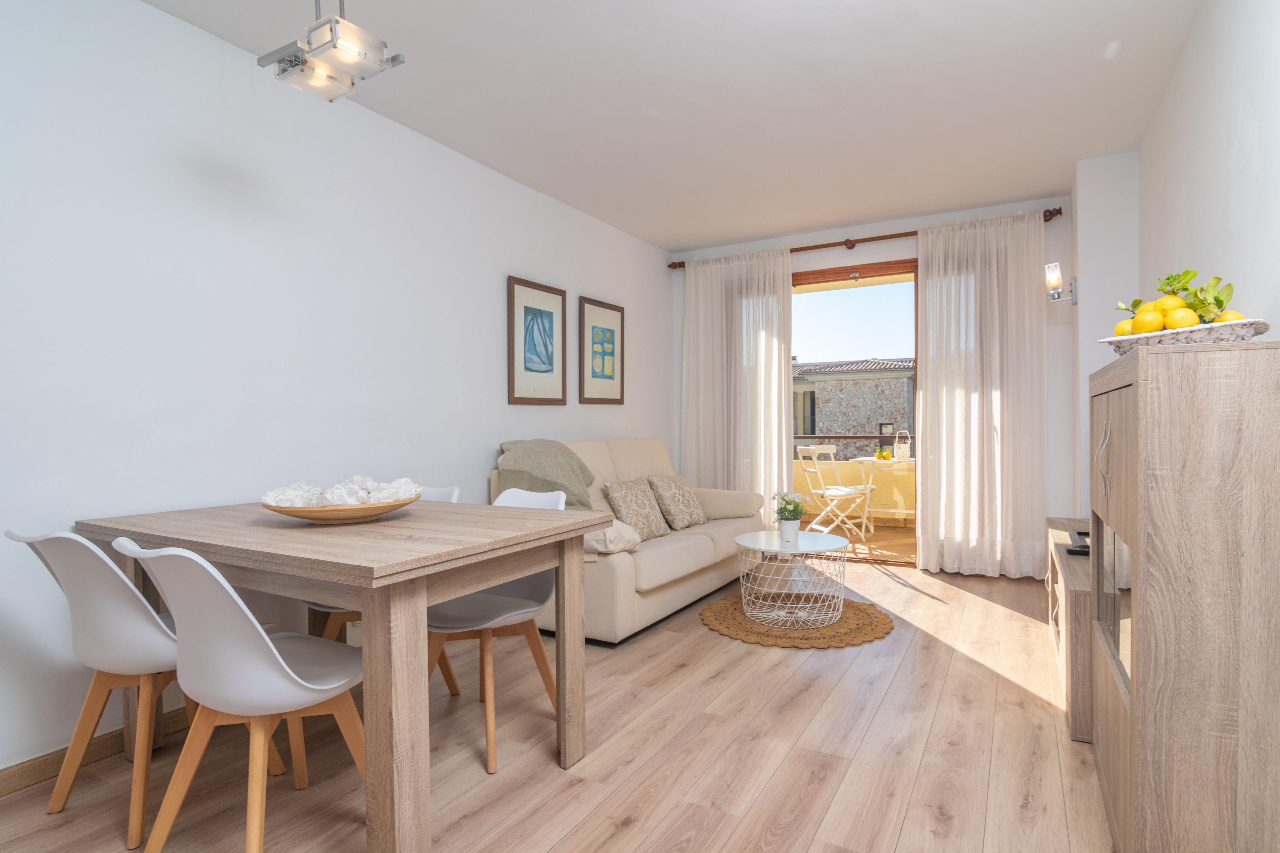Het terras van het appartement is de perfecte plek om te ontspannen na een dag zon en strand. Met uitzicht op de zee aan het einde van de straat, niets beter dan een drankje bij zonsondergang in de stoelen en tafel op het terras. Het appartement bevindt zich op de tweede verdieping zonder lift en biedt een moderne en gezellige stijl. De eetkamer is uitgerust met satelliet-tv en airconditioning. De aparte keuken heeft een keramische kookplaat en alle basisapparatuur om tijdens uw vakantie te koken. Er is ook een wasmachine, strijkijzer en strijkplank. Onze gasten slapen in twee slaapkamers, een met een tweepersoonsbed en de andere met twee eenpersoonsbedden. Ook heb je een moderne badkamer met douche. Tot slot maken een kinderbedje, een kinderstoel en een ventilator de accommodatie compleet.