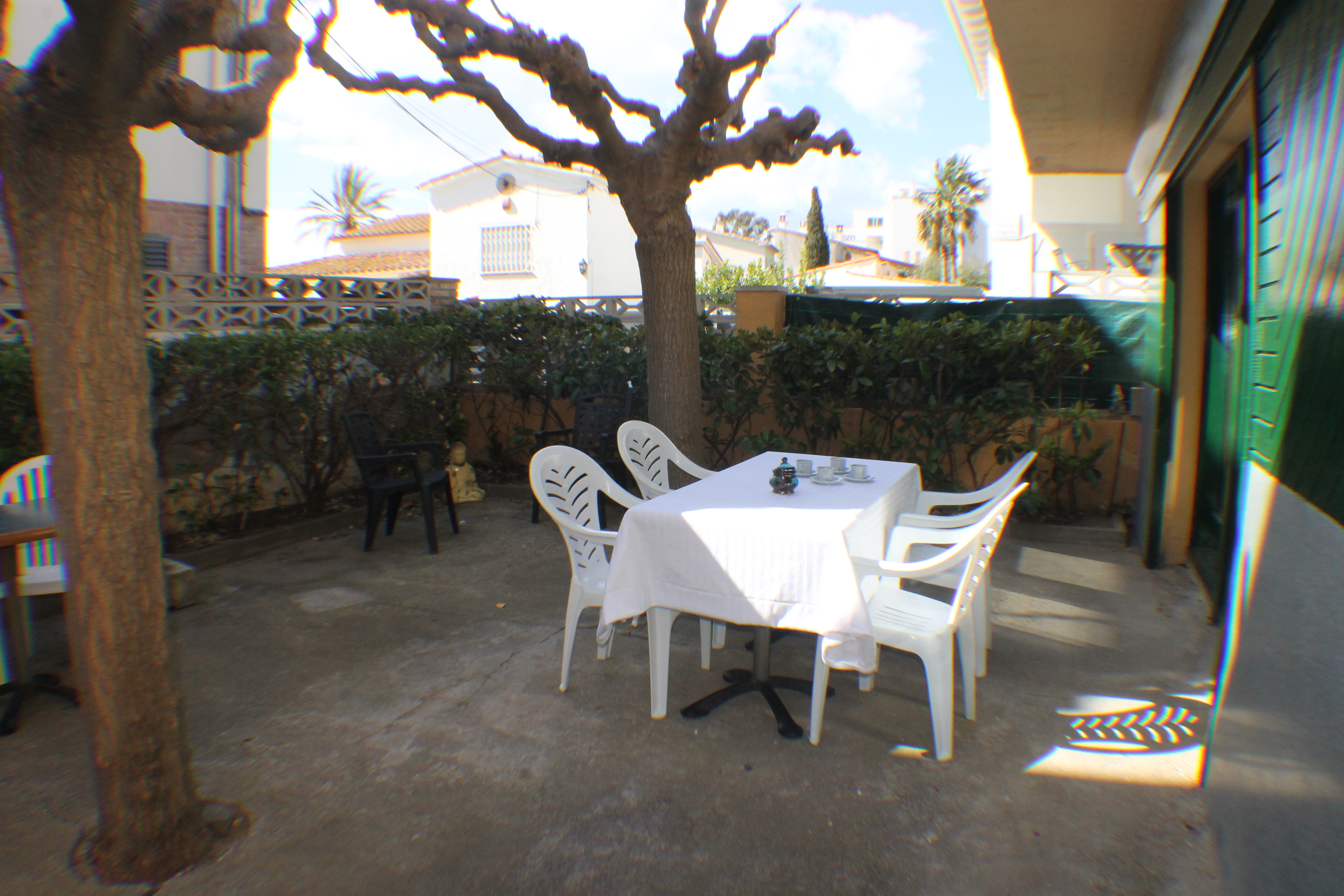 Voor buiten ontspanning is het terras uitgerust met een tafel en stoelen, wat een prettige ruimte biedt om van maaltijden te genieten of buiten te ontspannen.