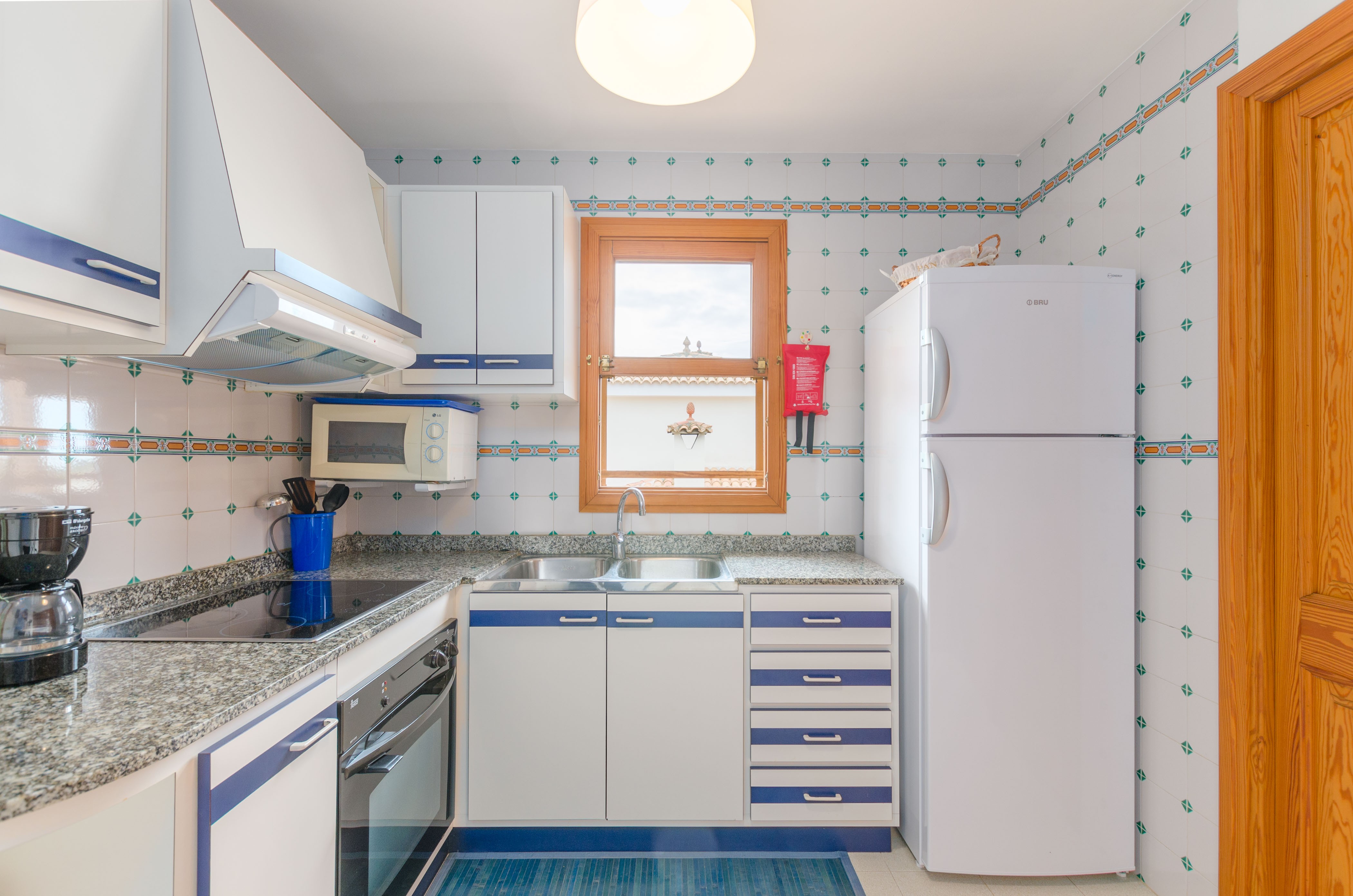 Het bevindt zich op de 2e verdieping zonder lift waar, als u binnenkomt, een gang u naar een moderne en vrolijke woon-eetkamer leidt, uitgerust met airconditioning, satelliet-tv en een glazen eettafel met comfortabele stoelen. Het is de perfecte plek voor een welverdiende rust op de bank na een lange dag op zee of voor een heerlijk overdekt diner. De keuken, traditioneel en toch met een strandgevoel, biedt een keramische kookplaat, oven, magnetron en alle keukengerei en apparatuur die nodig is om naar hartenlust te koken. Dan hebben we een badkamer met ligbad, die het hele huis bedient, en twee slaapkamers, waarvan één met een tweepersoonsbed, kledingkast, directe toegang tot het terras en ruimte om een kinderbedje en een kinderstoel klaar te maken; en de tweede met een slaapbank voor onze derde gast. De wasmachine, strijkijzer en strijkplank bevinden zich op het terras.