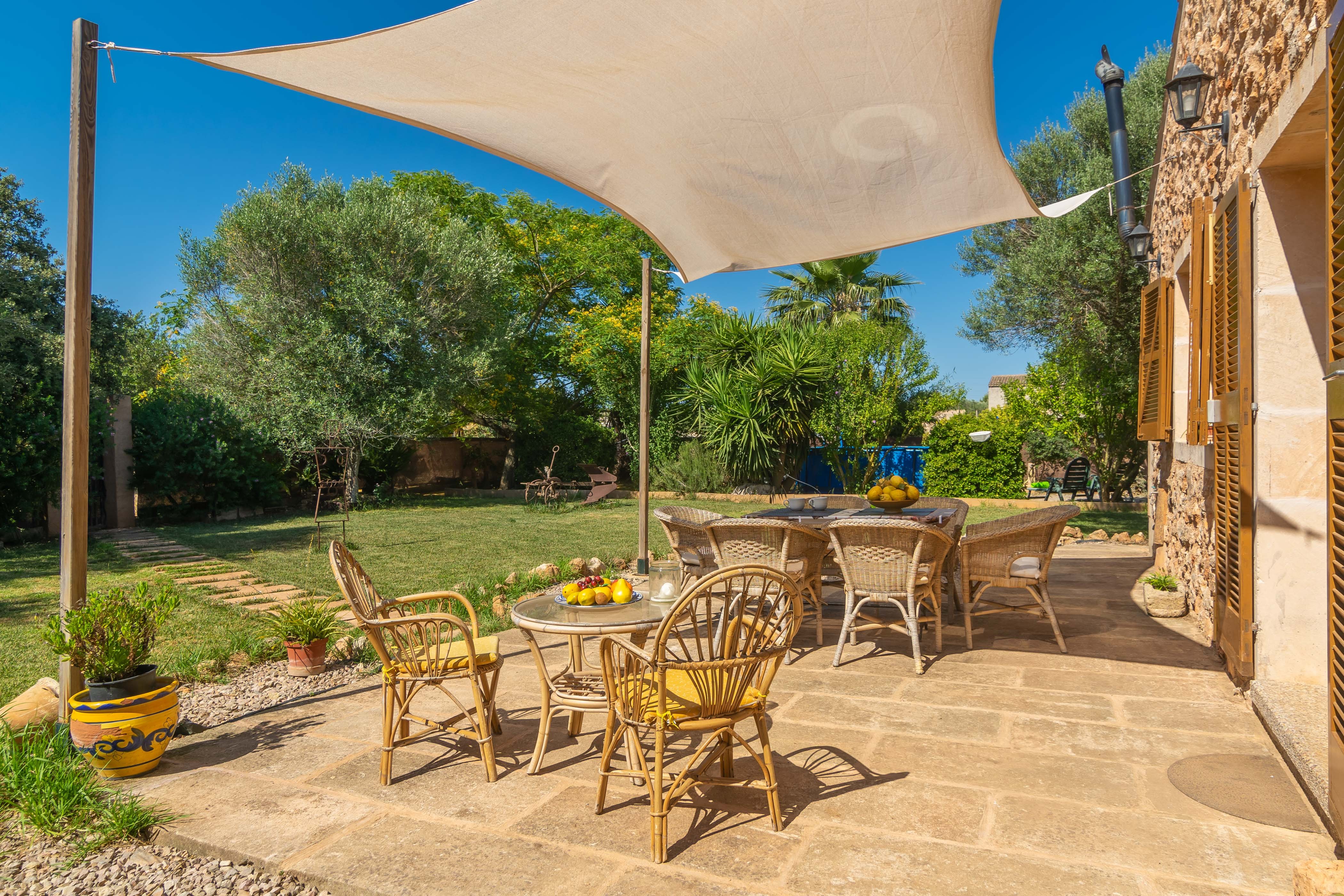 De buitenkant is perfect om te genieten van het goede weer op het eiland, met een verhoogd zwembad met een diameter van 5 meter en een diepte van 1,20 meter en verschillende plekken om te zitten en te rusten of te genieten van een heerlijke barbecue. Het terrein is omheind en de privacy is totaal.