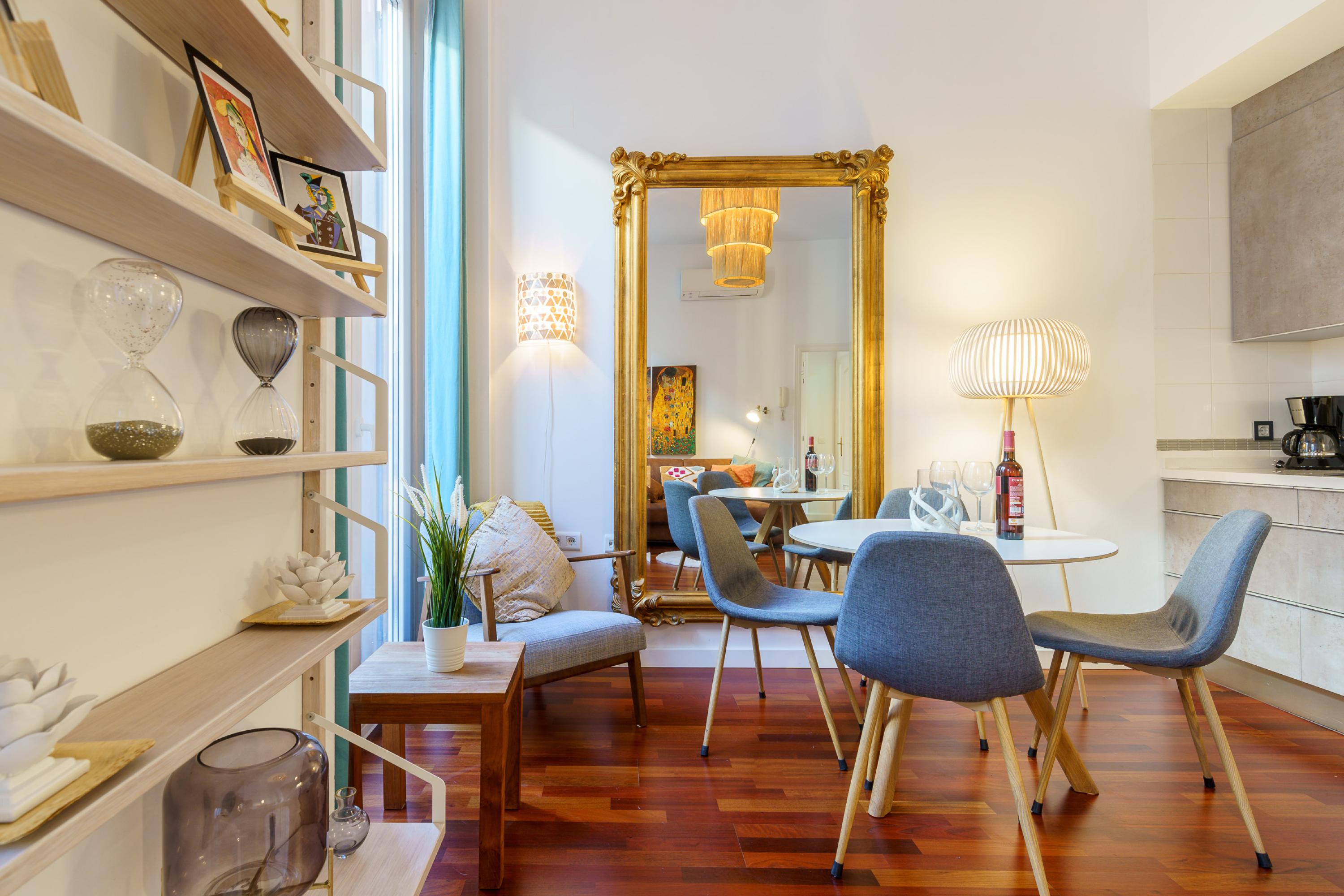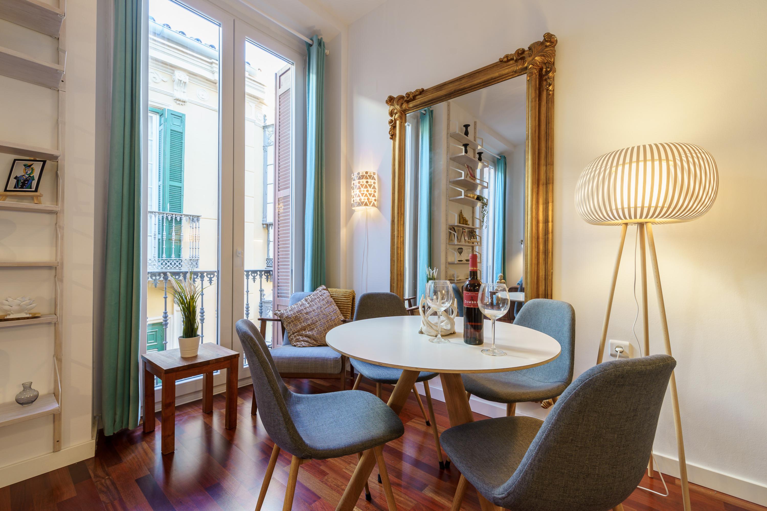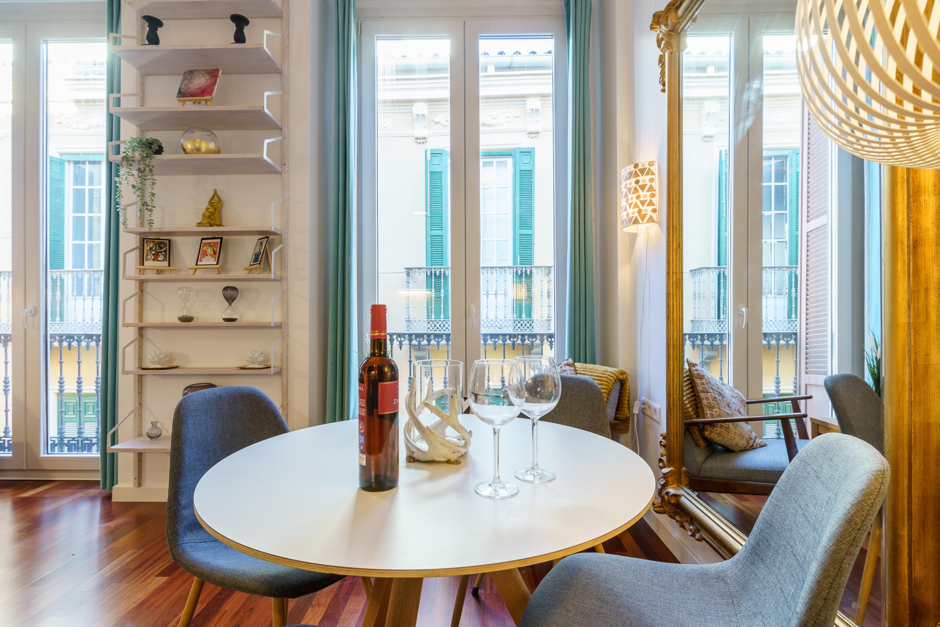 Dit chique, luxueuze vakantieverblijf bevindt zich in het historische centrum van Málaga, op slechts een paar stappen van Plaza de la Constitución. Het appartement is gunstig gelegen nabij vele toeristische attracties zoals de Alcazaba, de Kathedraal van Málaga en het Romeinse Amfitheater van Málaga. Daarnaast kunnen gasten gemakkelijk toegang krijgen tot restaurants, tapasbars en essentiële diensten in de omgeving. Het dichtstbijzijnde strand, Playa de la Malagueta, is 25 minuten lopen of 10 minuten rijden. De accommodatie ligt ook op loopafstand van het treinstation en de dichtstbijzijnde internationale luchthaven is Málaga-Costa del Sol.