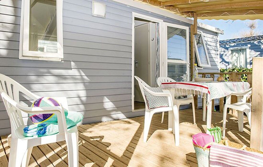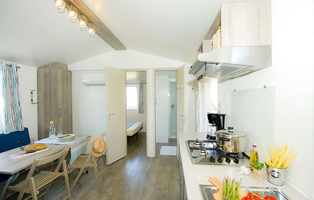 Comfortabel mobiel huis voor maximaal 6 personen met airconditioning (ongeveer 31 m²).