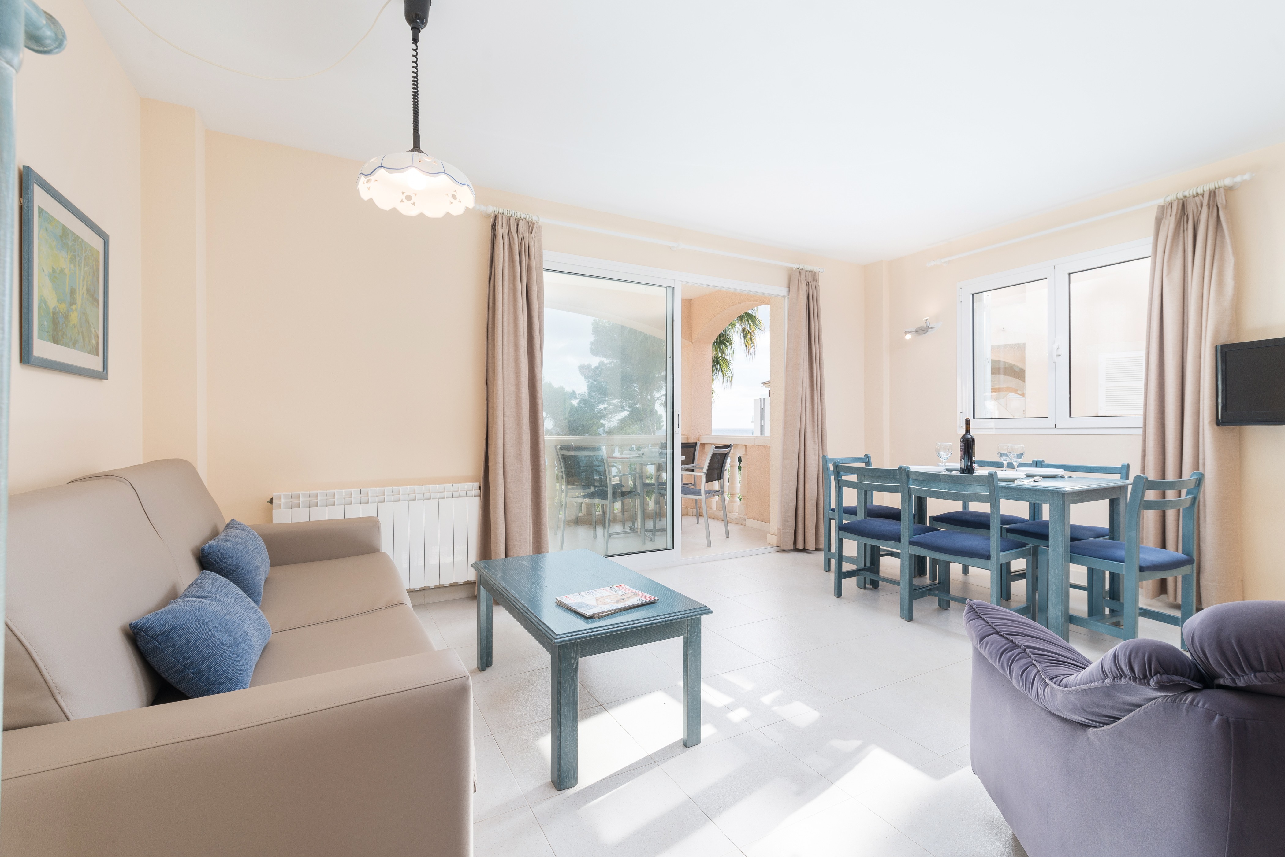 In dit appartement, gelegen op de begane grond, vindt u een ruime en comfortabele woon-eetkamer waar u samen kunt genieten van uw maaltijden en tv kunt kijken. De aparte keuken is voorzien van een keramische kookplaat. Er zijn 2 slaapkamers met twee eenpersoonsbedden, airconditioning en een kast. Een van hen heeft ruimte voor een babybedje en er is ook een kinderstoel beschikbaar. Bovendien maken we de slaapbank in de woonkamer klaar voor de laatste gast. Er is één badkamer met ligbad en de woning is voorzien van centrale verwarming op gas.