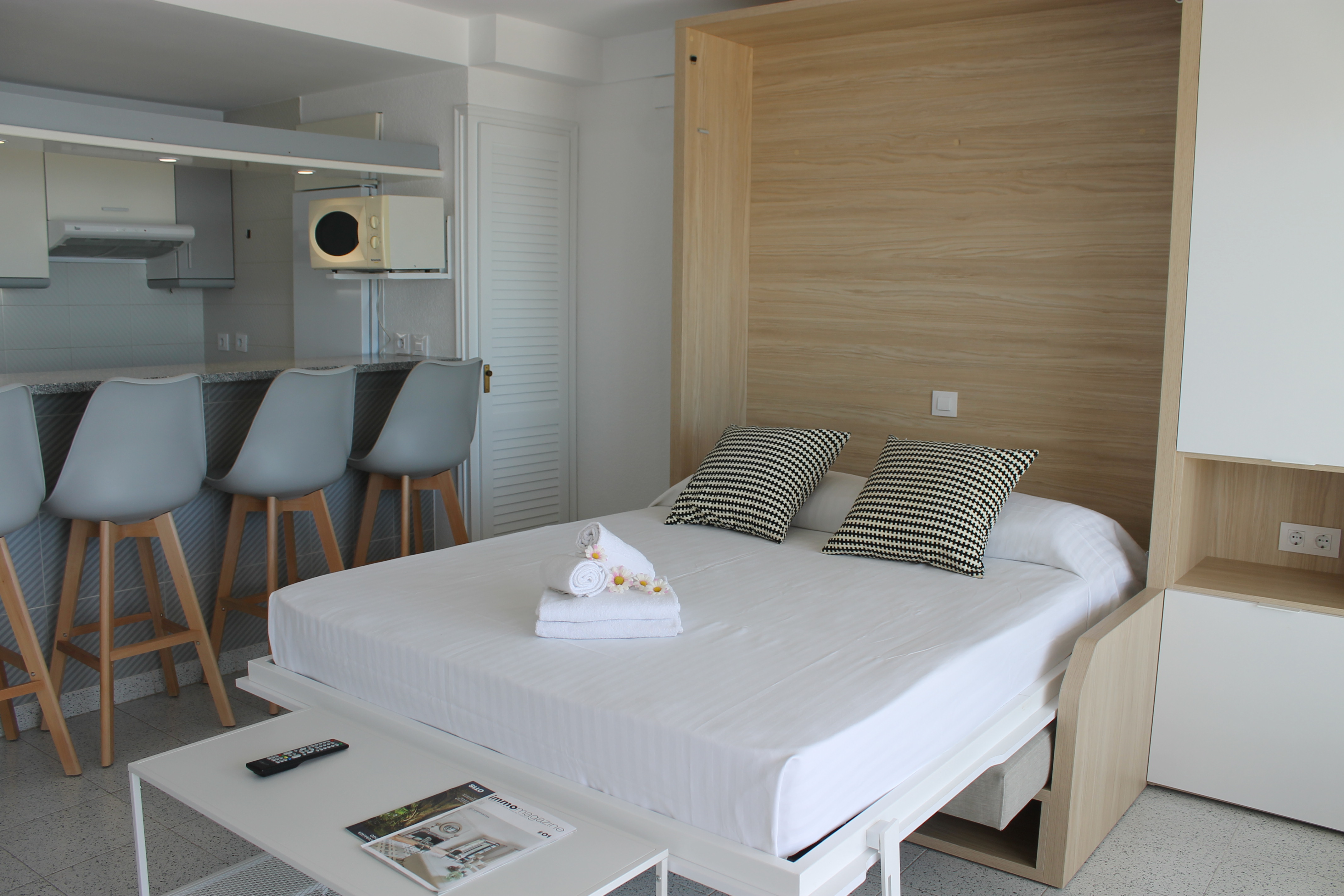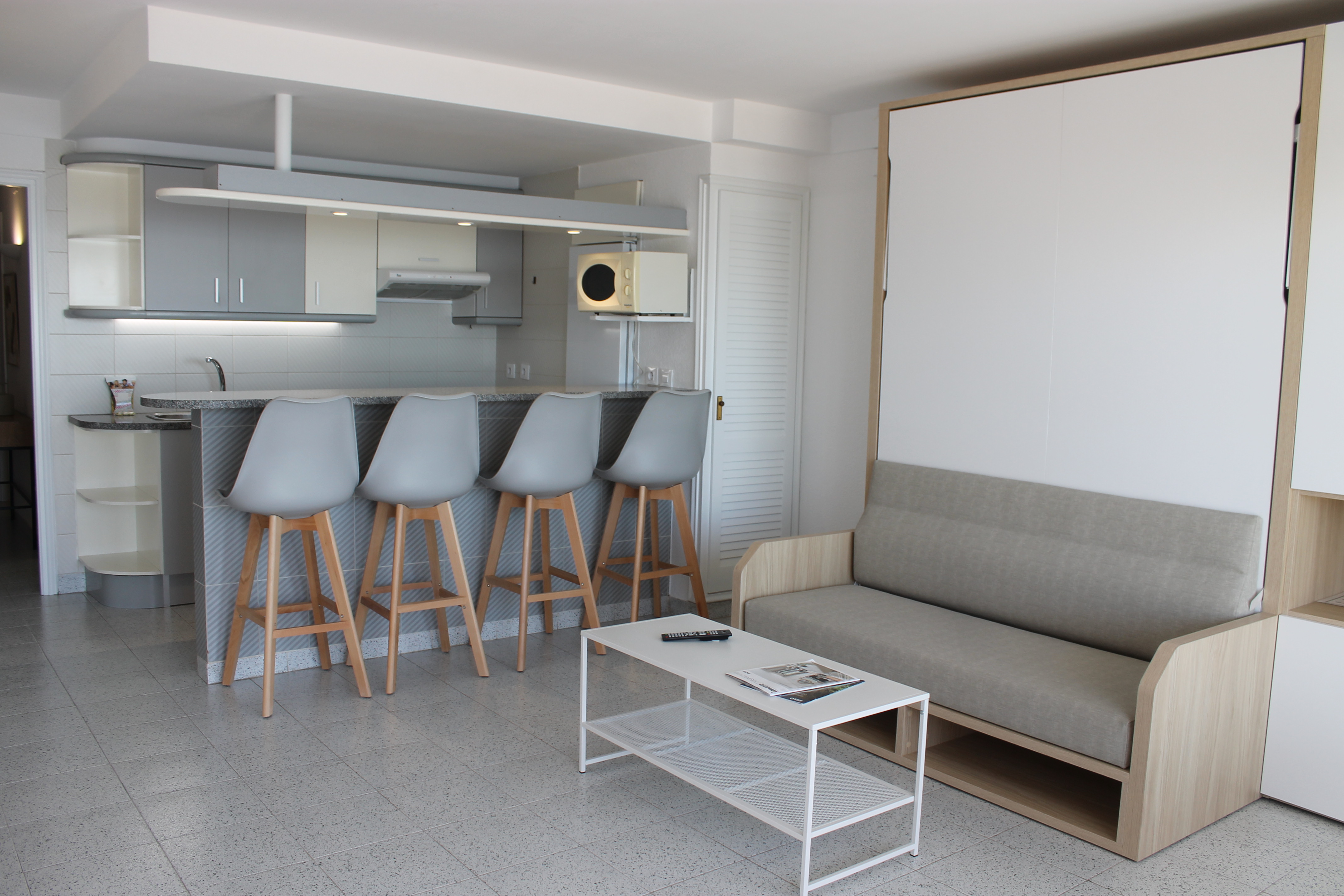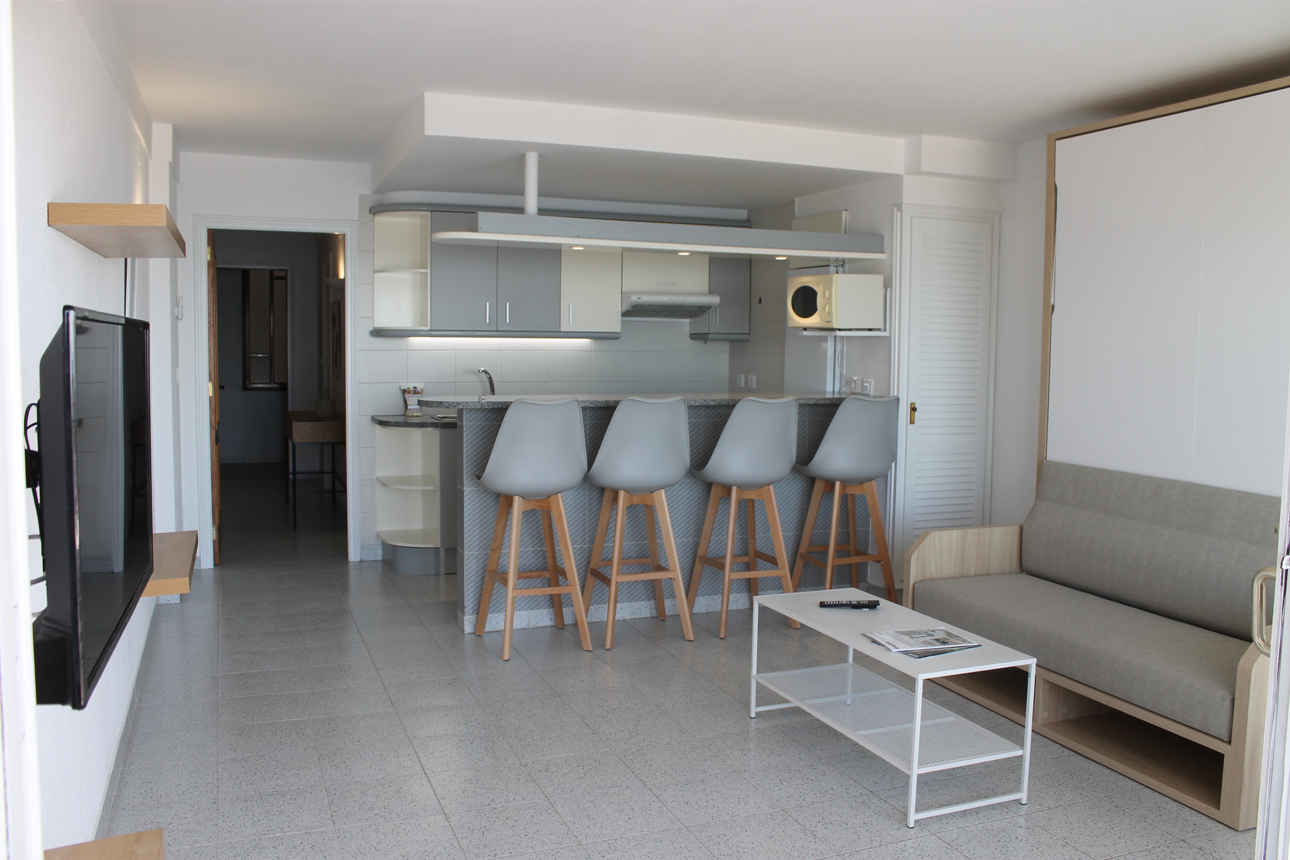 Dit appartement biedt plaats aan 4 personen en bestaat uit 1 slaapkamer en een woonkamer met open keuken. De slaapkamer is uitgerust met twee eenpersoonsbedden, terwijl de woonkamer een tweepersoonsbed en een tv heeft. De keuken is voorzien van een koelkast, vriezer, magnetron, koffiezetapparaat en fornuis. Op het terras van het appartement staan een tafel en stoelen. De oppervlakte van het appartement is 45 vierkante meter.