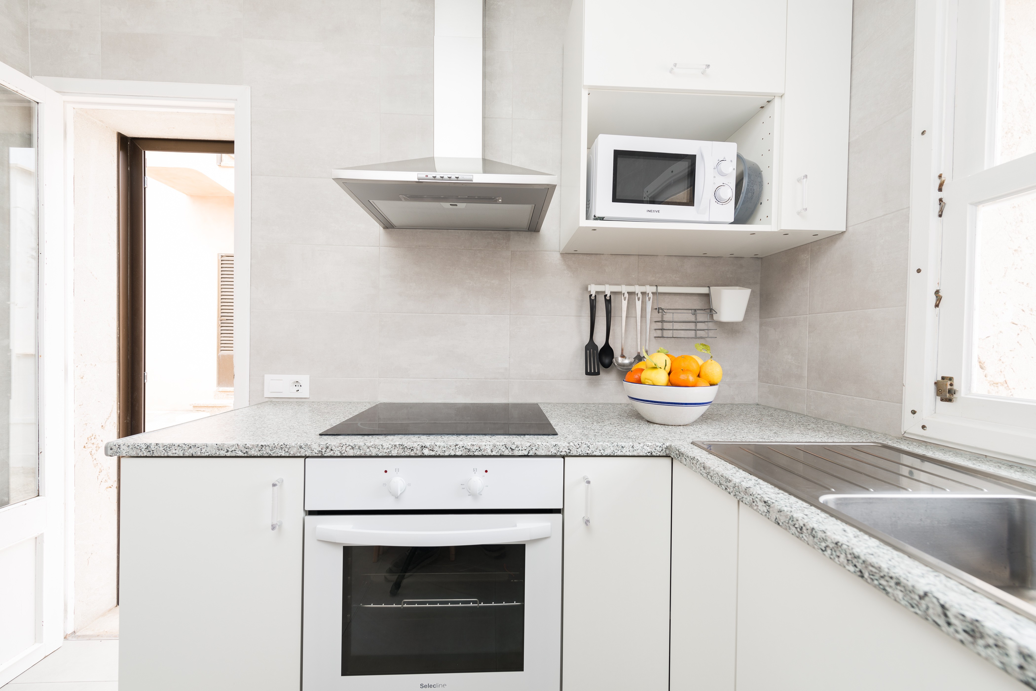 Het huis van 90 m2 is verdeeld over één verdieping en heeft een mediterrane stijl, licht en verfrissend, ideaal om een paar dagen los te koppelen. De woonkamer heeft twee comfortabele banken waar u televisie kunt kijken (nationale zenders). Het eetgedeelte biedt plaats aan maximaal 6 personen en biedt uitzicht op zee. De keuken is onafhankelijk en is uitgerust met een keramische kookplaat, oven en de basiselementen voor vakantiekoken. Een badkamer met douche bedient het huis. Hierna volgen de slaapkamers. De eerste slaapkamer heeft een tweepersoonsbed, inbouwkast en en-suite badkamer met douche. Het is vermeldenswaard dat deze slaapkamer geen raam heeft, maar ernaast bevindt zich de en-suite badkamer die een raam heeft met prachtig uitzicht op de tuin en de zee, zodat natuurlijk licht de kamer binnenkomt. De tweede slaapkamer heeft nog een tweepersoonsbed, uitzicht op zee en een ingebouwde kledingkast en de laatste slaapkamer heeft een onderschuifbed en een ladekast en het raam kijkt uit over de zijkant van het perceel. Alle slaapkamers hebben een ventilator voor verkoeling. Als u met een baby reist, staan een kinderbedje en kinderstoel tot uw beschikking. Tenslotte beschikt het huis over een wasmachine, strijkijzer en strijkplank.