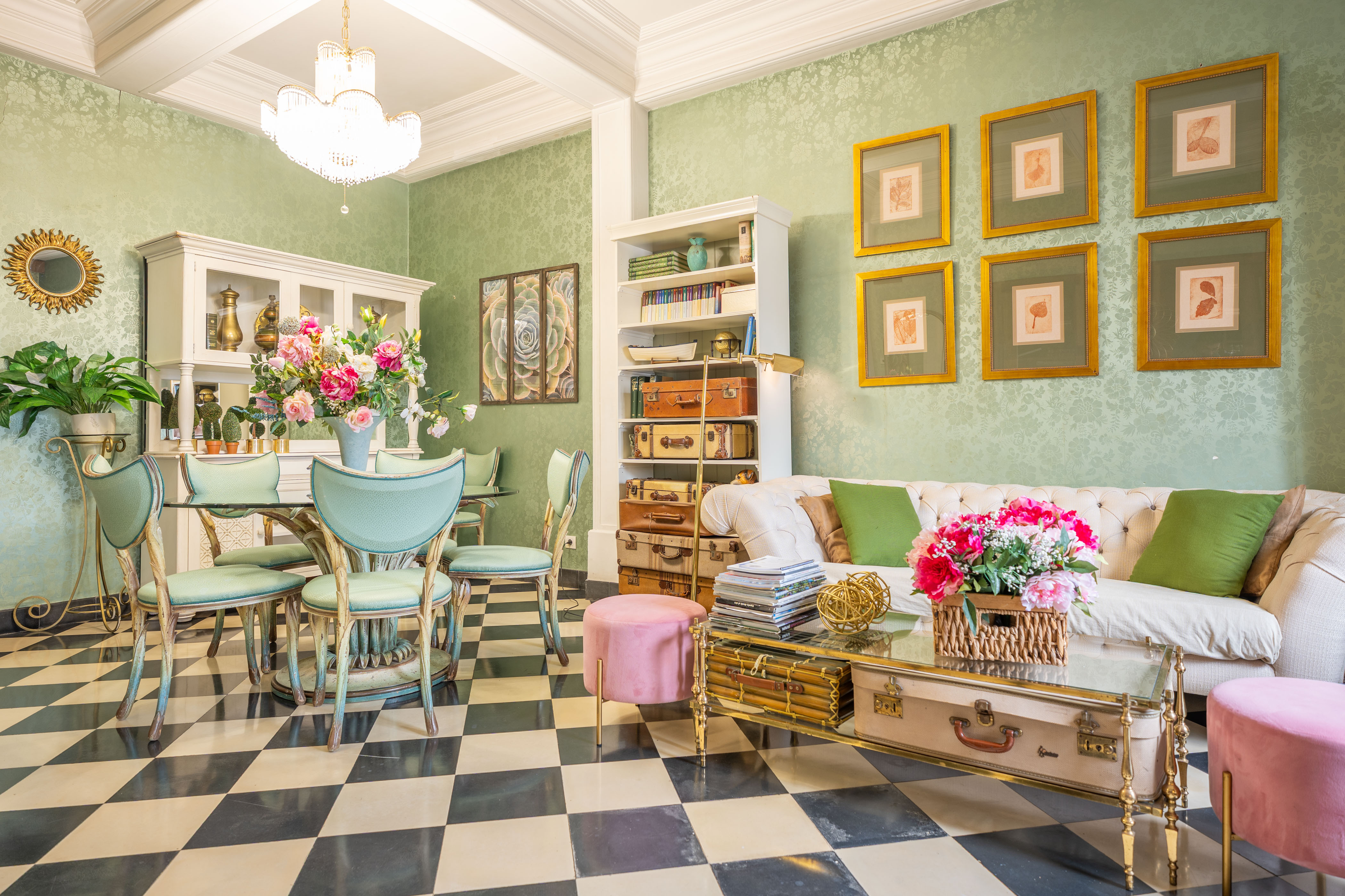Verspreid over vier verdiepingen biedt het interieur van het huis een warme en gastvrije sfeer. Op de begane grond word je verwelkomd in een charmante hal met een comfortabele bank.