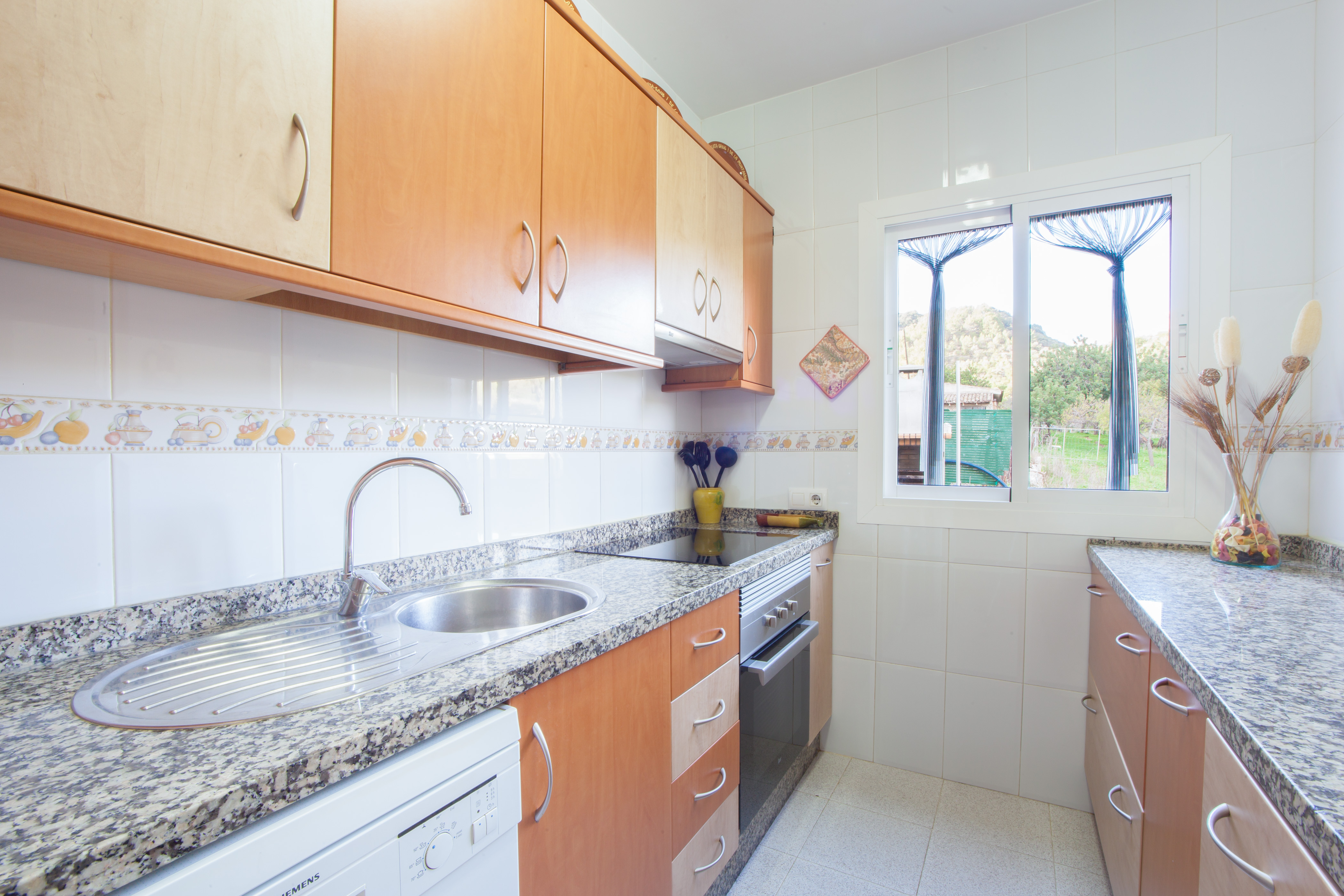 Het is een huis met een bijzondere charme, met een woonkamer uitgerust met airconditioning waar je satelliet-tv kunt kijken terwijl je het ongeëvenaarde uitzicht op de bergen bewondert door de glazen ramen. De mooie aparte eetkamer uitgerust met AC is heerlijk om je avonden te verlengen en de keuken is uitgerust met een keramische kookplaat en al het benodigde keukengerei zodat je je favoriete gerechten kunt koken en je thuis kunt voelen. Als het tijd is om te slapen, vind je vier slaapkamers. De eerste twee met respectievelijk twee eenpersoonsbedden en een tweepersoonsbed. Een derde met twee eenpersoonsbedden uitgerust met AC en de laatste met een tweepersoonsbed en een eigen badkamer met douche. Een badkamer met ligbad maakt het verblijf compleet. Als je met je baby reist, kunnen we een kinderbedje en een kinderstoel ter beschikking stellen. Tot je beschikking staat een wasruimte met een wasmachine, droger, strijkijzer en strijkplank.