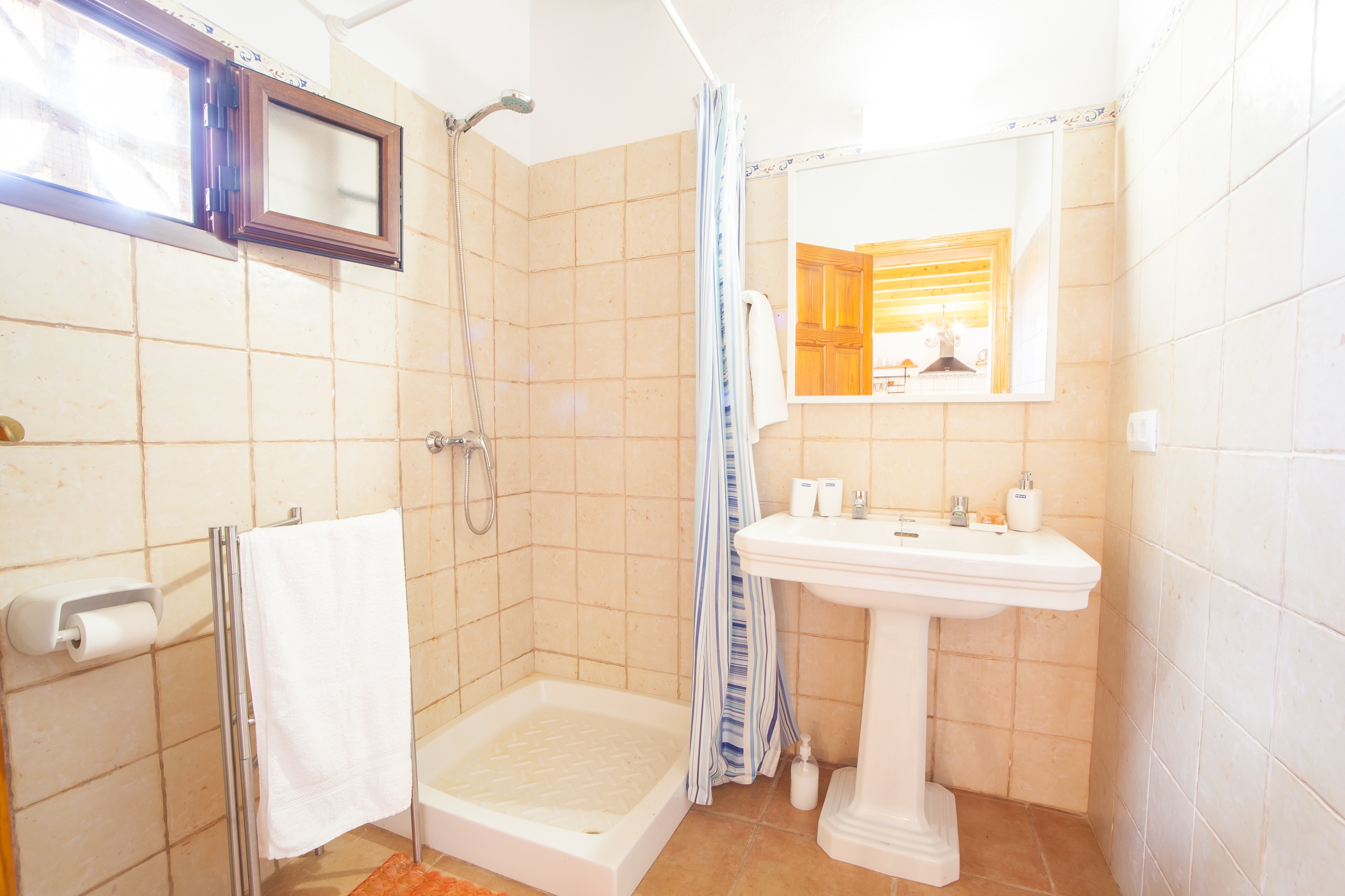Het huis werkt met zonnepanelen, iets maakt het nog beter. Wanneer u binnenkomt, vindt u een open ruimte die wordt gedeeld door de woonkamer, de eetkamer en de keuken, waar u allemaal samen kunt zijn terwijl u uw beste recepten kookt op het gasfornuis, de tafel dekt of op de bank kletst met het gezelschap van de tv. Za. Vervolgens vindt u 2 slaapkamers met een tweepersoonsbed en 2 badkamers met douche. Een babybedje en een kinderstoel zijn op aanvraag ook beschikbaar, en we kunnen u voorzien van 3 ventilatoren als u die nodig heeft. De wasruimte is onafhankelijk en beschikt over een wasmachine, strijkijzer en strijkplank.