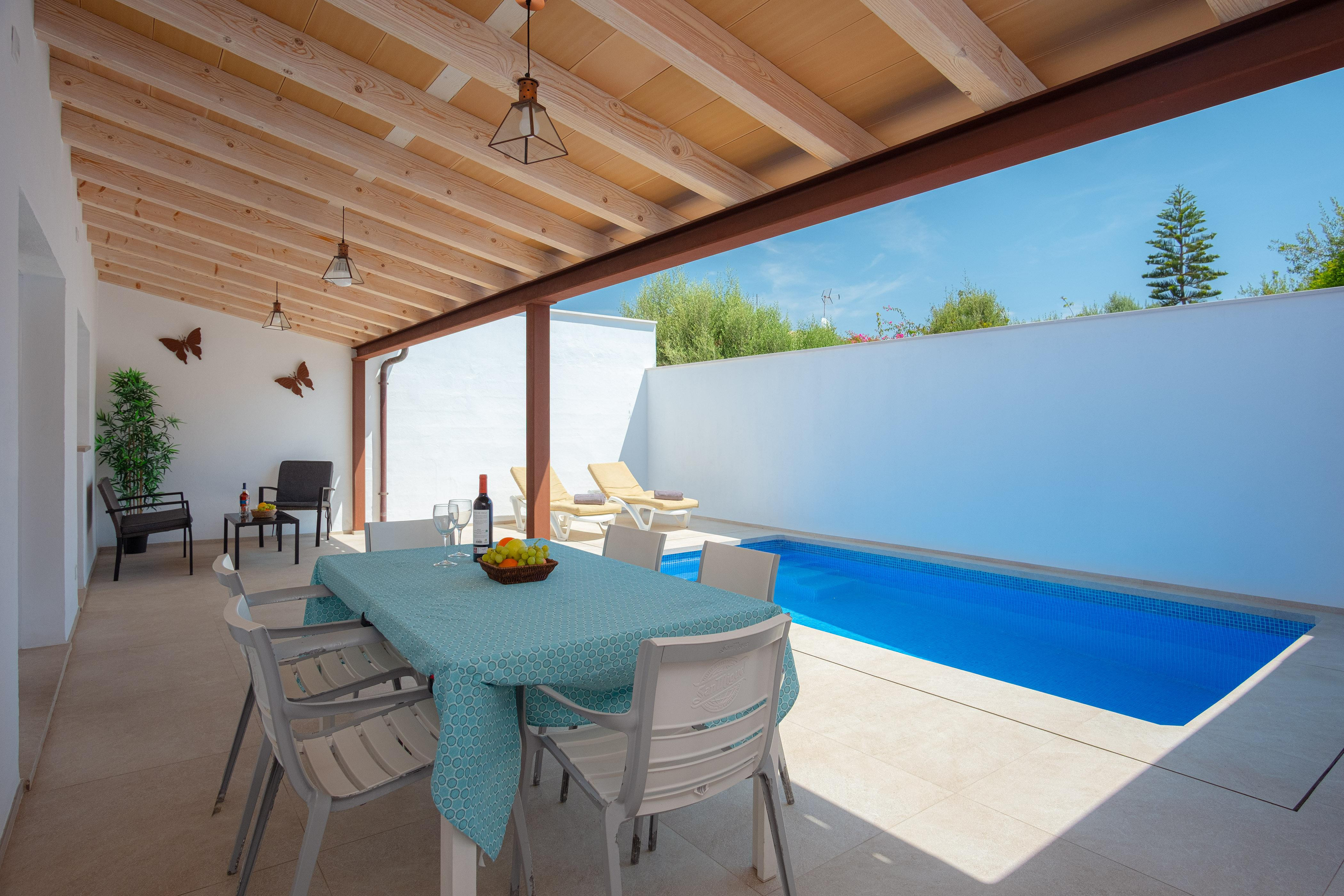 Fantastisch herenhuis voor 6 personen in s’Estanyol. Gelegen vlakbij de zee, zorgt het achterterras met zwembad en barbecue ervoor dat u kunt genieten van een welverdiende vakantie.