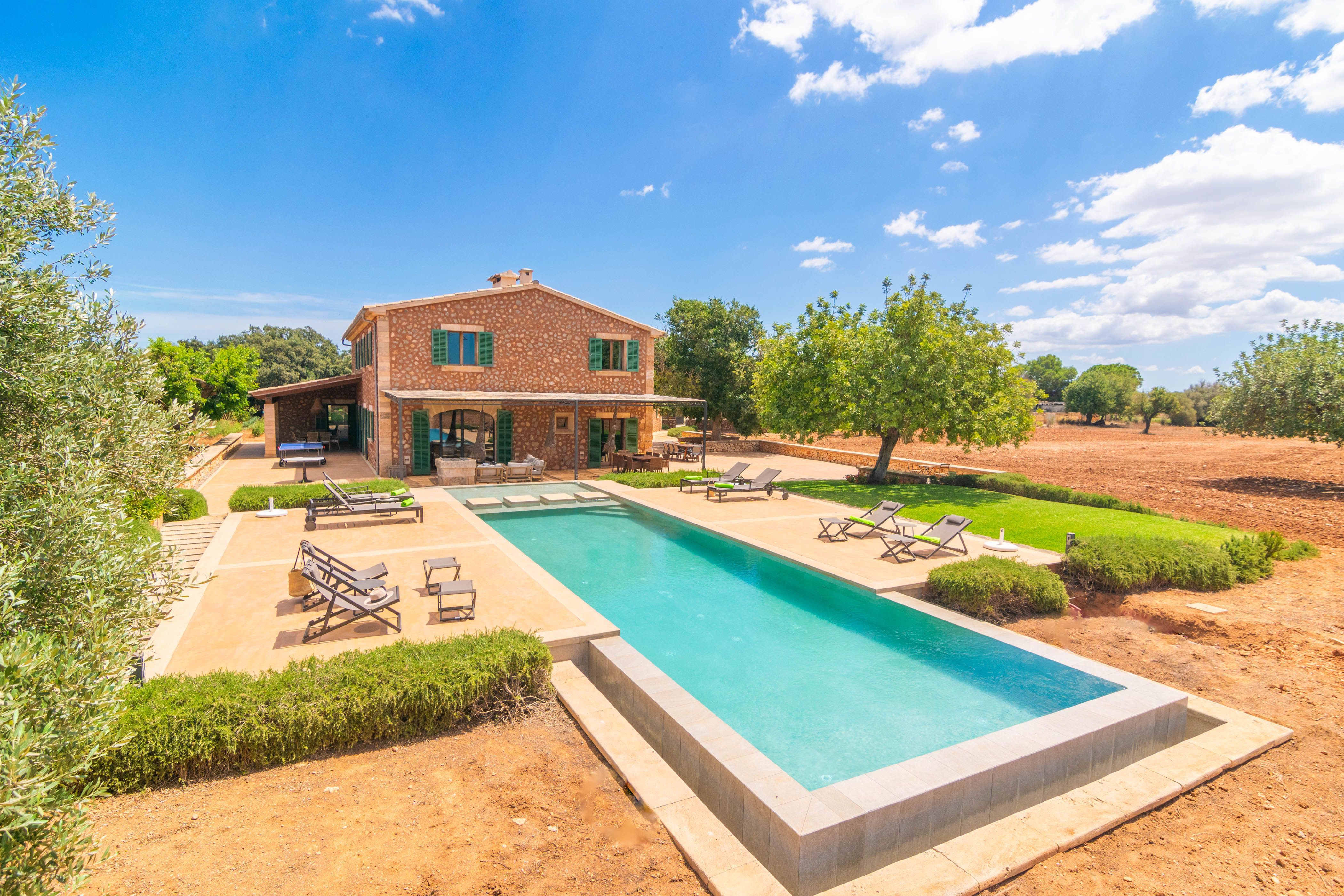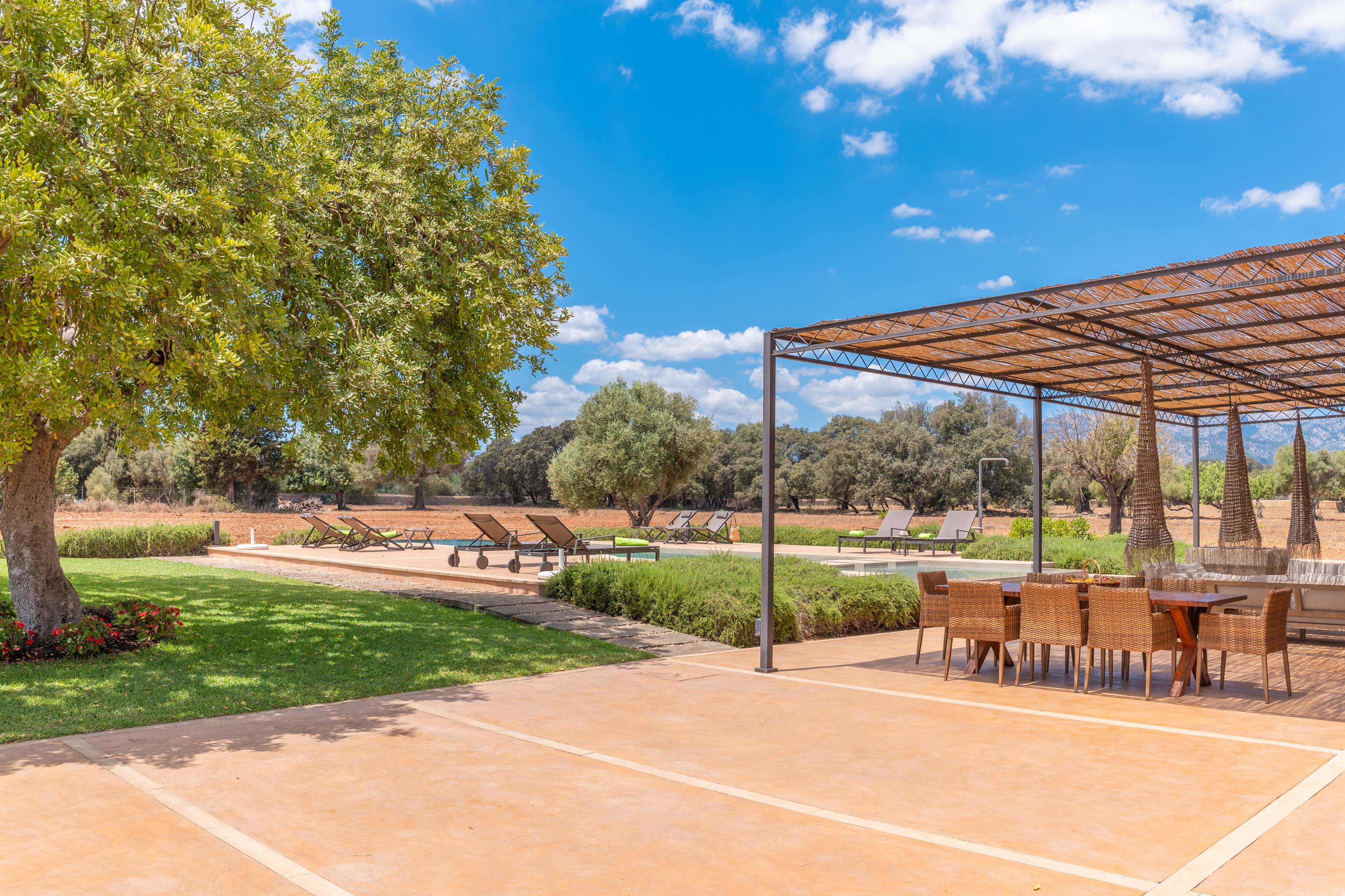 Het huis beschikt over een betoverende buitenruimte. Een prachtige tuin met fruitbomen omringt het 12x5m chloorzwembad, aangevuld met een buitendouche en ligstoelen voor ontspanning. Een volledig gemeubileerde veranda met een tafeltennistafel voor entertainment en een terras met een chill-out ruimte en eettafel zijn perfect om te genieten van een barbecue met uw gezelschap. De mobiele barbecue bevindt zich voornamelijk in de keuken, klaar voor zomerse maaltijden.