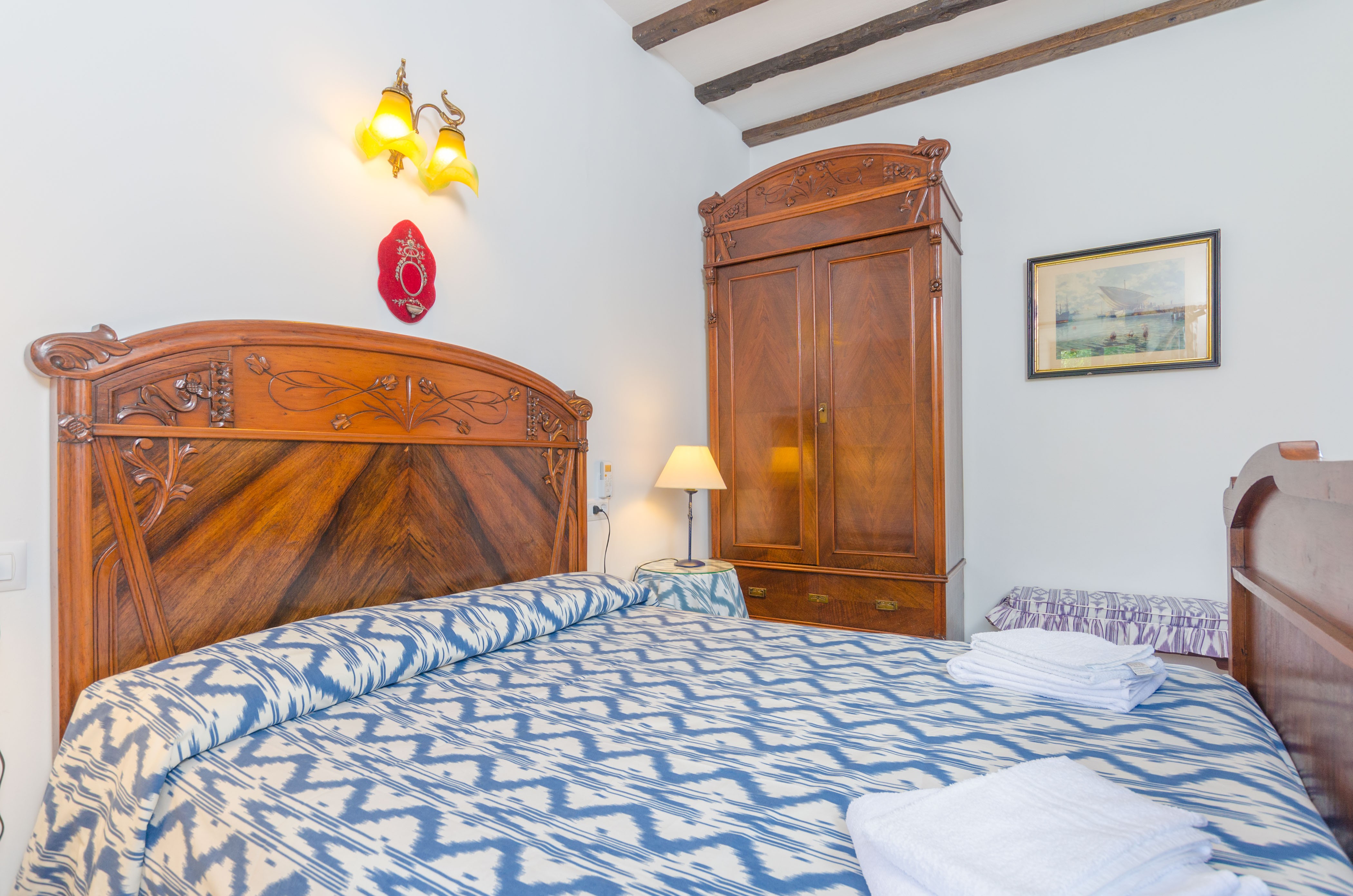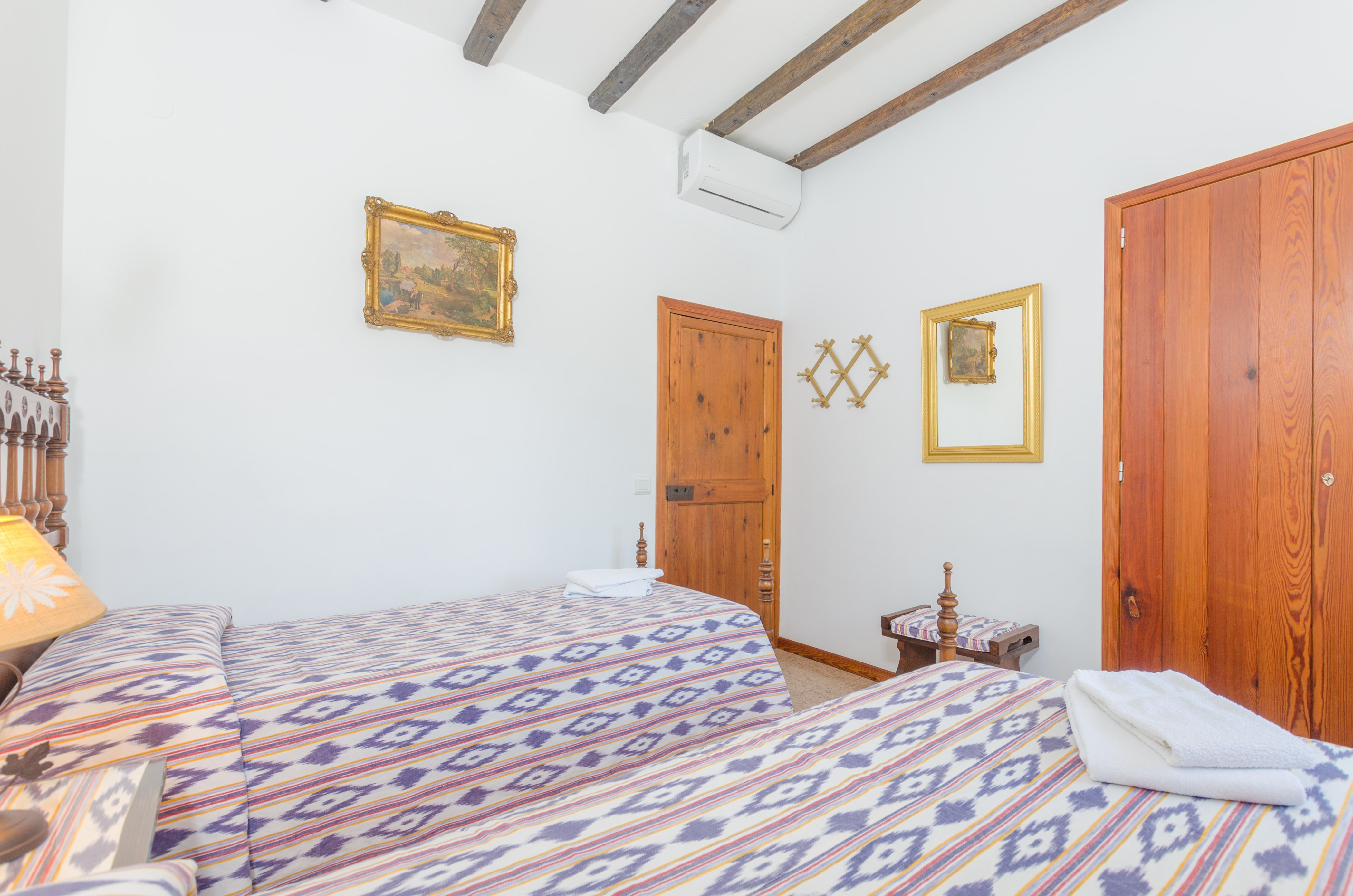 Het hoofdgebouw heeft 4 tweepersoonskamers: twee met een tweepersoonsbed en twee met elk twee eenpersoonsbedden. In het bijhuis vindt u een slaapkamer met een tweepersoonsbed en een slaapkamer met twee eenpersoonsbedden. Alle slaapkamers hebben AC, behalve één die een AC-apparaat in de gang heeft, net bij de deur. Er zijn 3 badkamers in het hoofdgebouw (een met hydromassagebad) en 1 badkamer in het tweede huis.